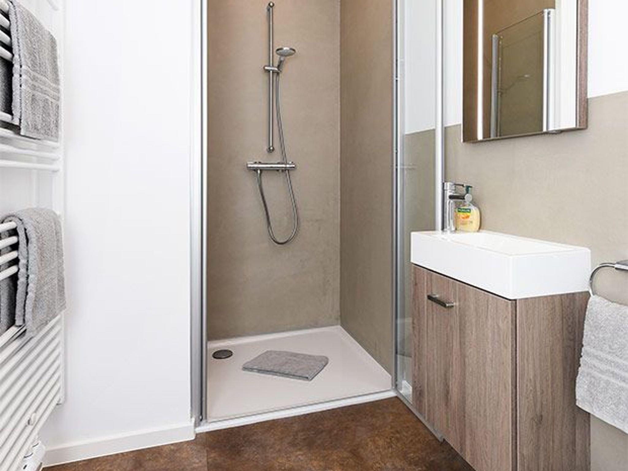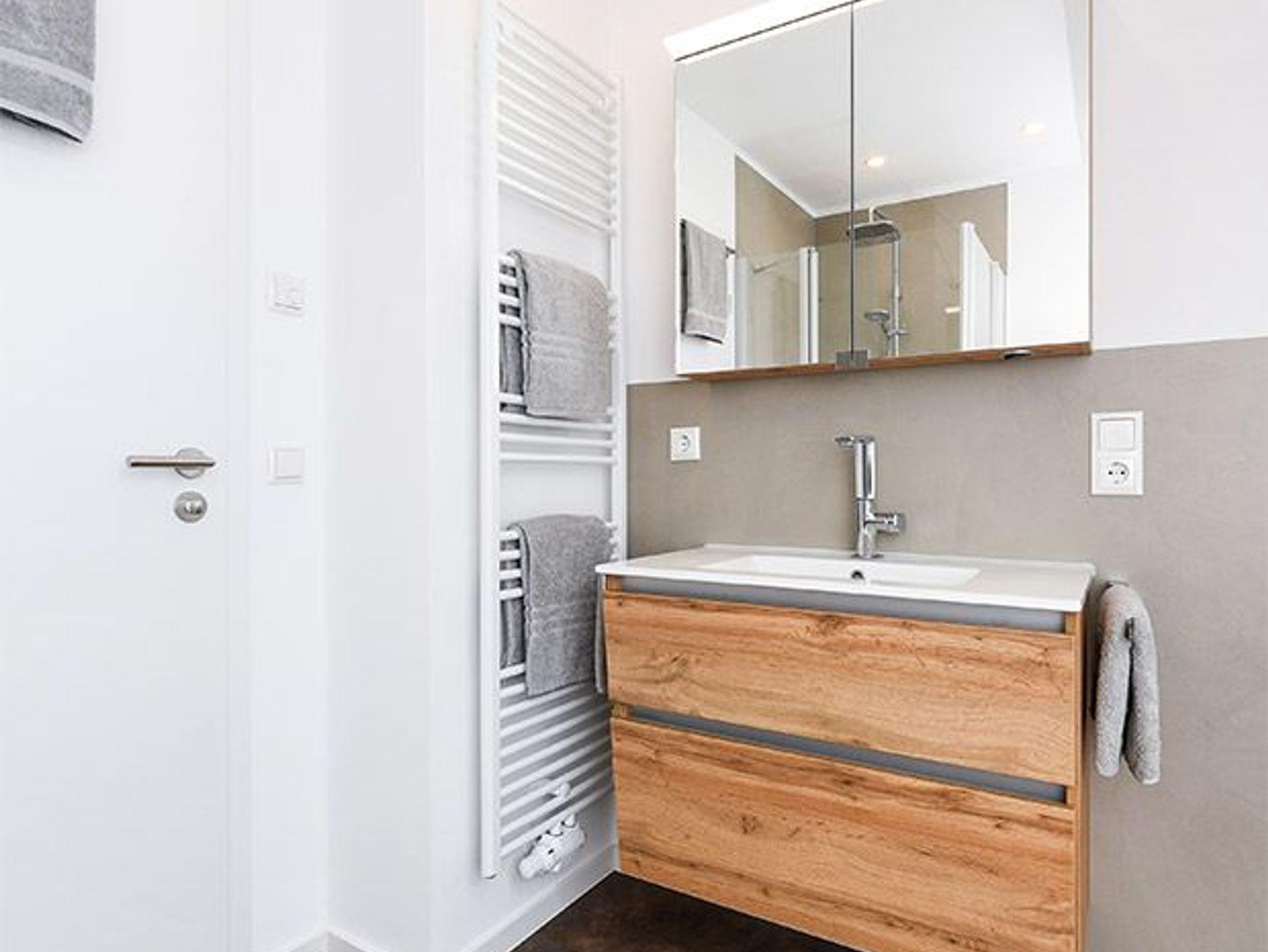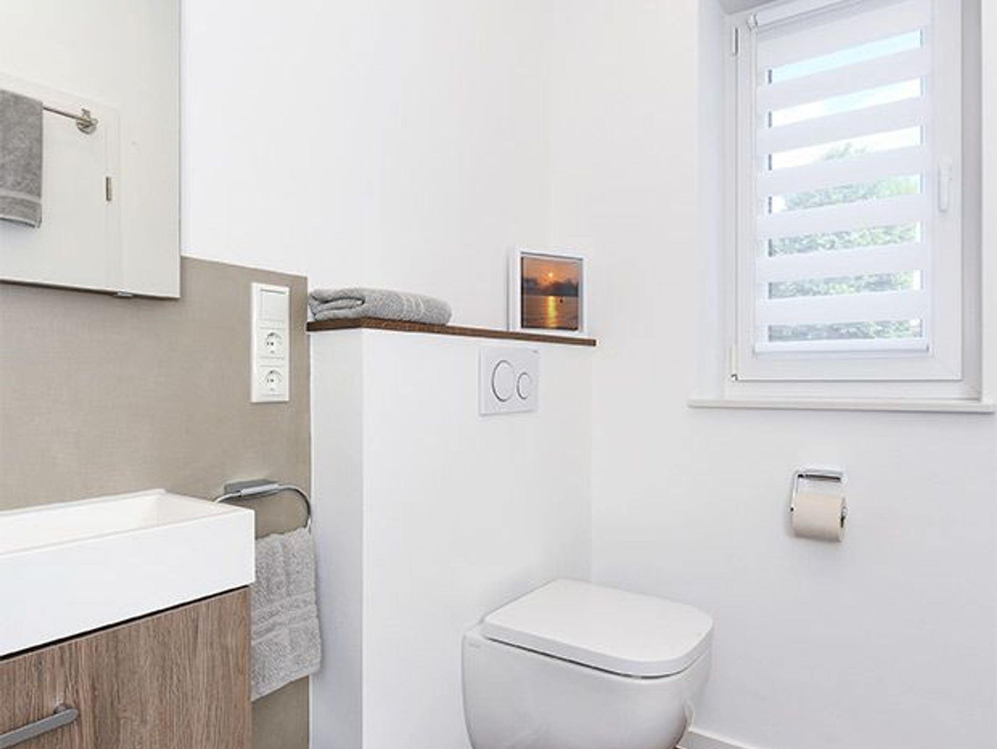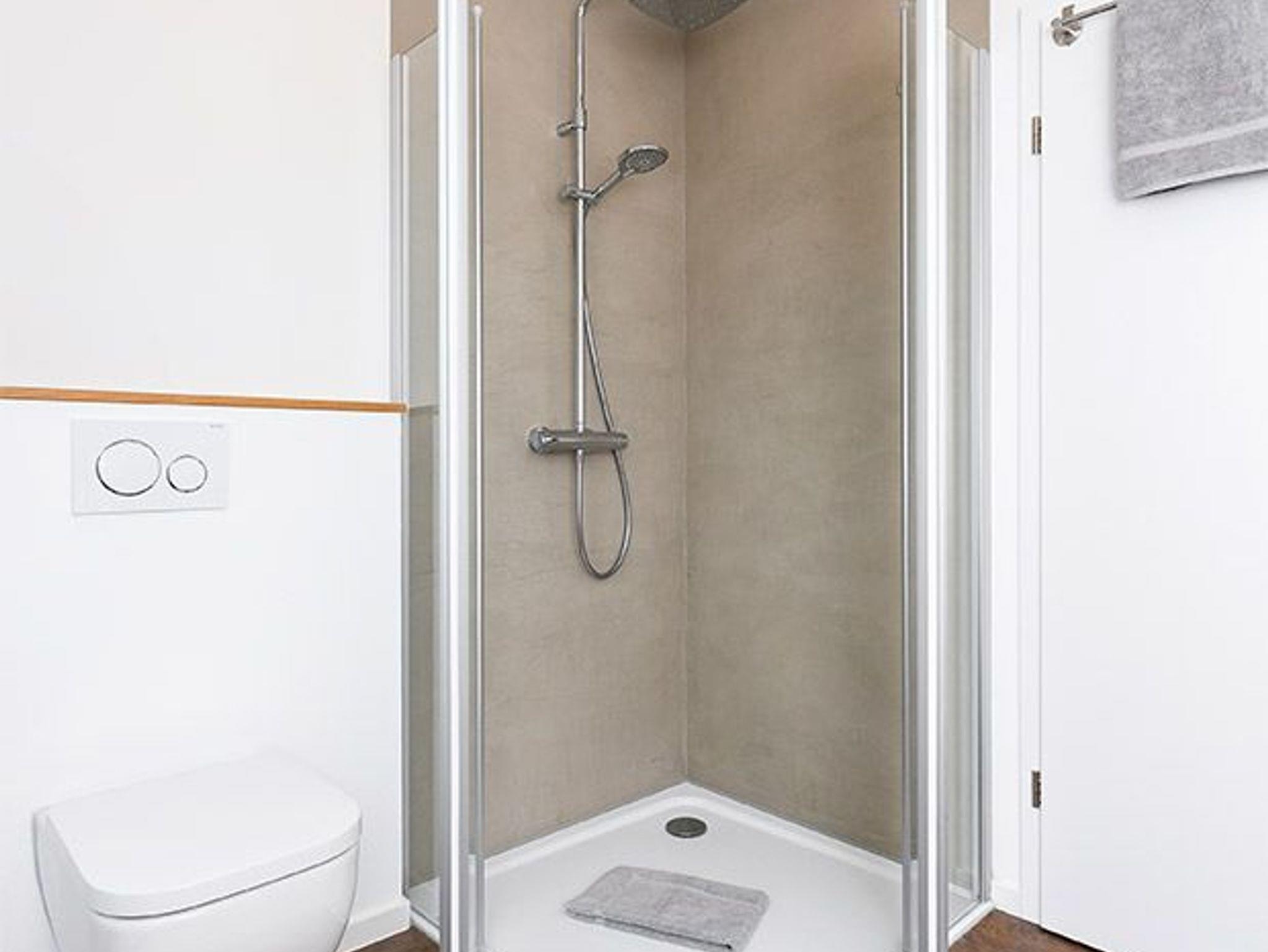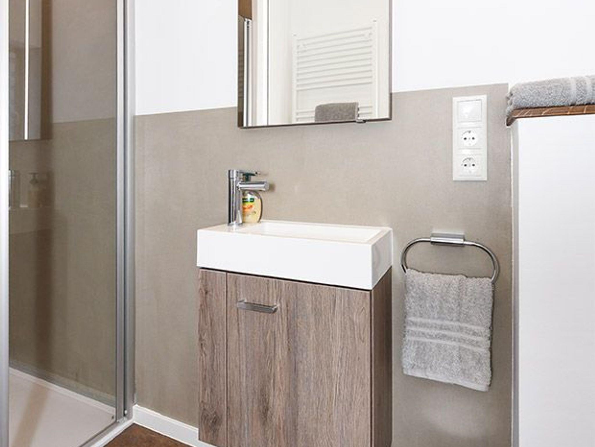 zweites Badezimmer mit Dusche, Waschtisch und WC