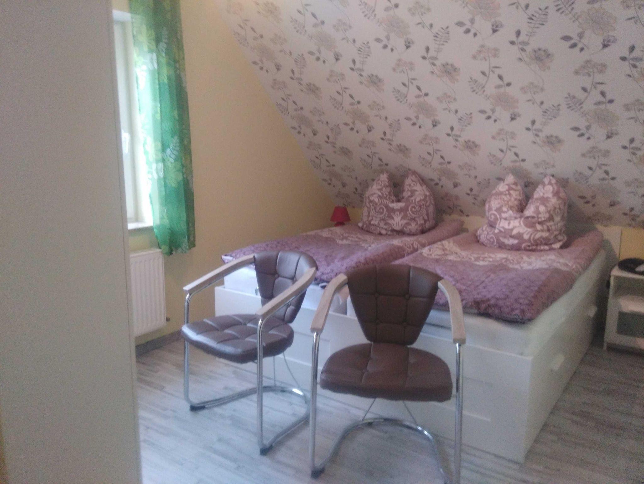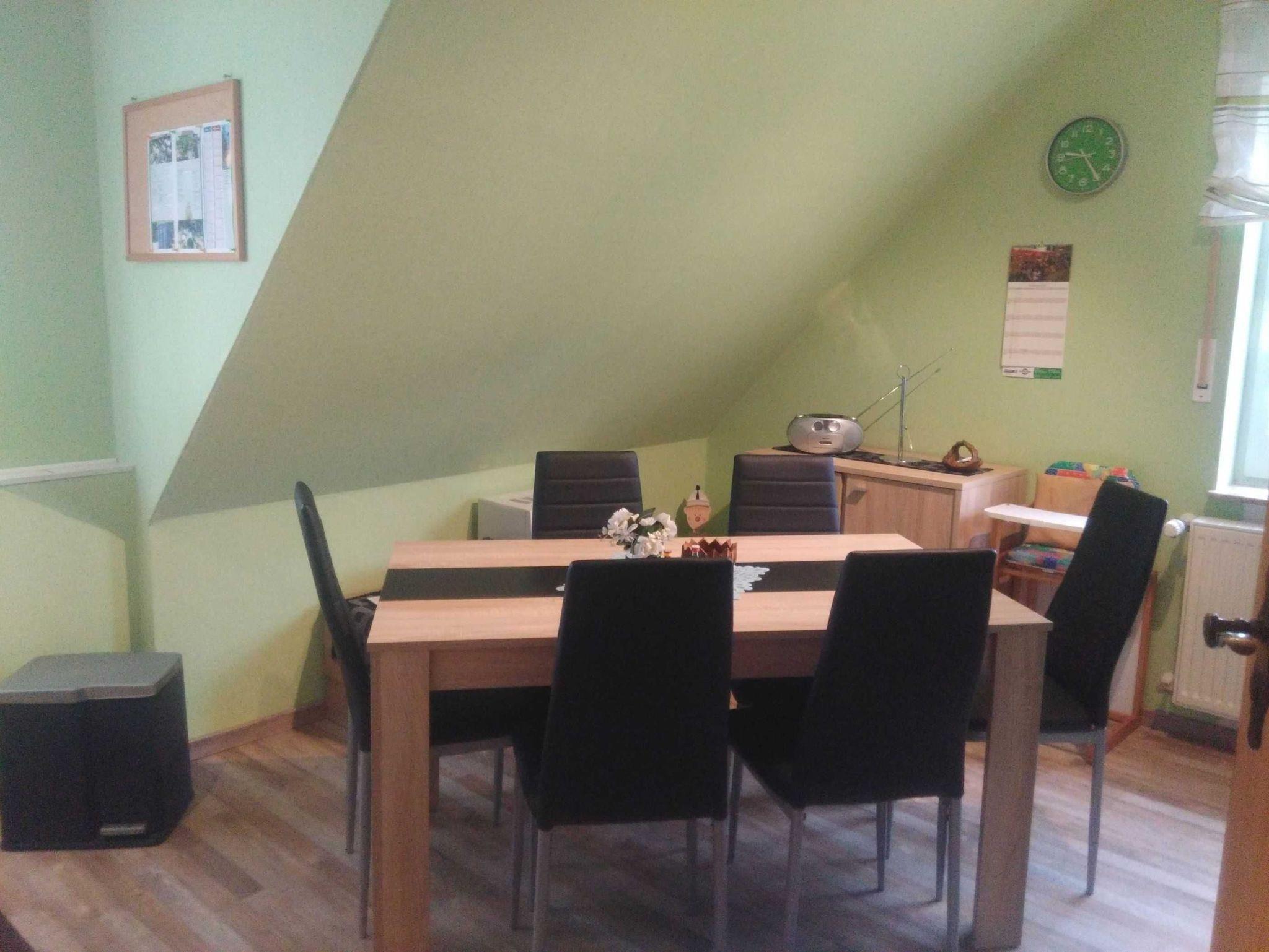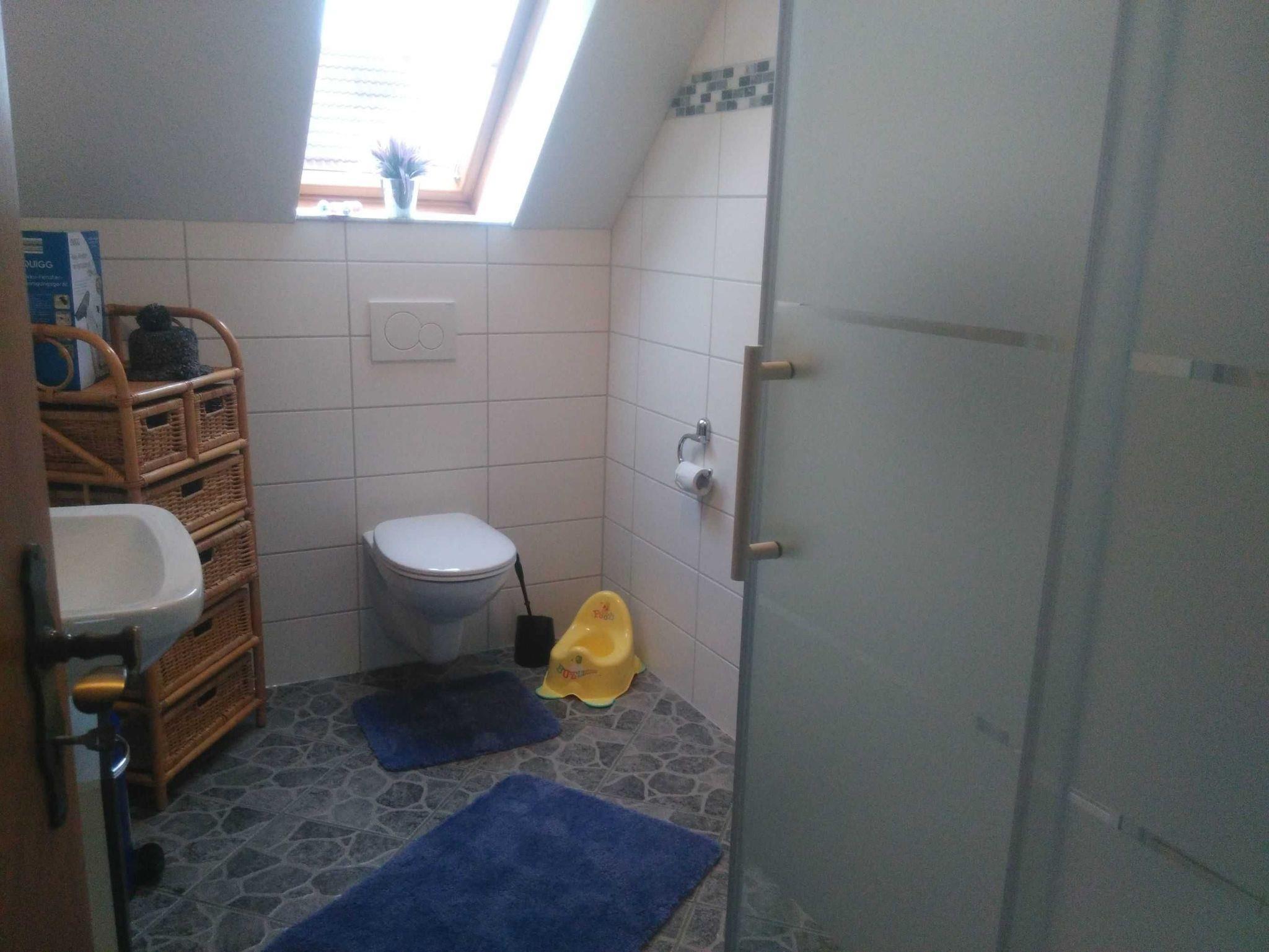 Küche: komplett eingerichtete Einbauküche mit E.-Herd + Backofen, Kühlschrank, Toaster, Eierkocher, Kaffeemaschine, Bügeleisen, Bügelbrett,Tisch + 6 Stühlen, Kinderhochstuhl. Wohnzimmer: gemütliche 2er und 3er Couch, Sat-TV, Anbauschrankwand. Schlafzimmer 1: Doppelbett, Nachtschränke, Kleiderschrank; Schlafzimmer 2. Doppelbett, Nachtschränke, Kleiderschrank, Kindergitterbett oder Reisebett kann bei Bedarf aufgebaut werden. Das Bad mit Dusche, Waschtisch, WC und Kindertöpfchen liegt direkt neben dem Elternschlafzimmer. Nichtraucherwohnung.Unten im Garten eine eigene Terrasse.