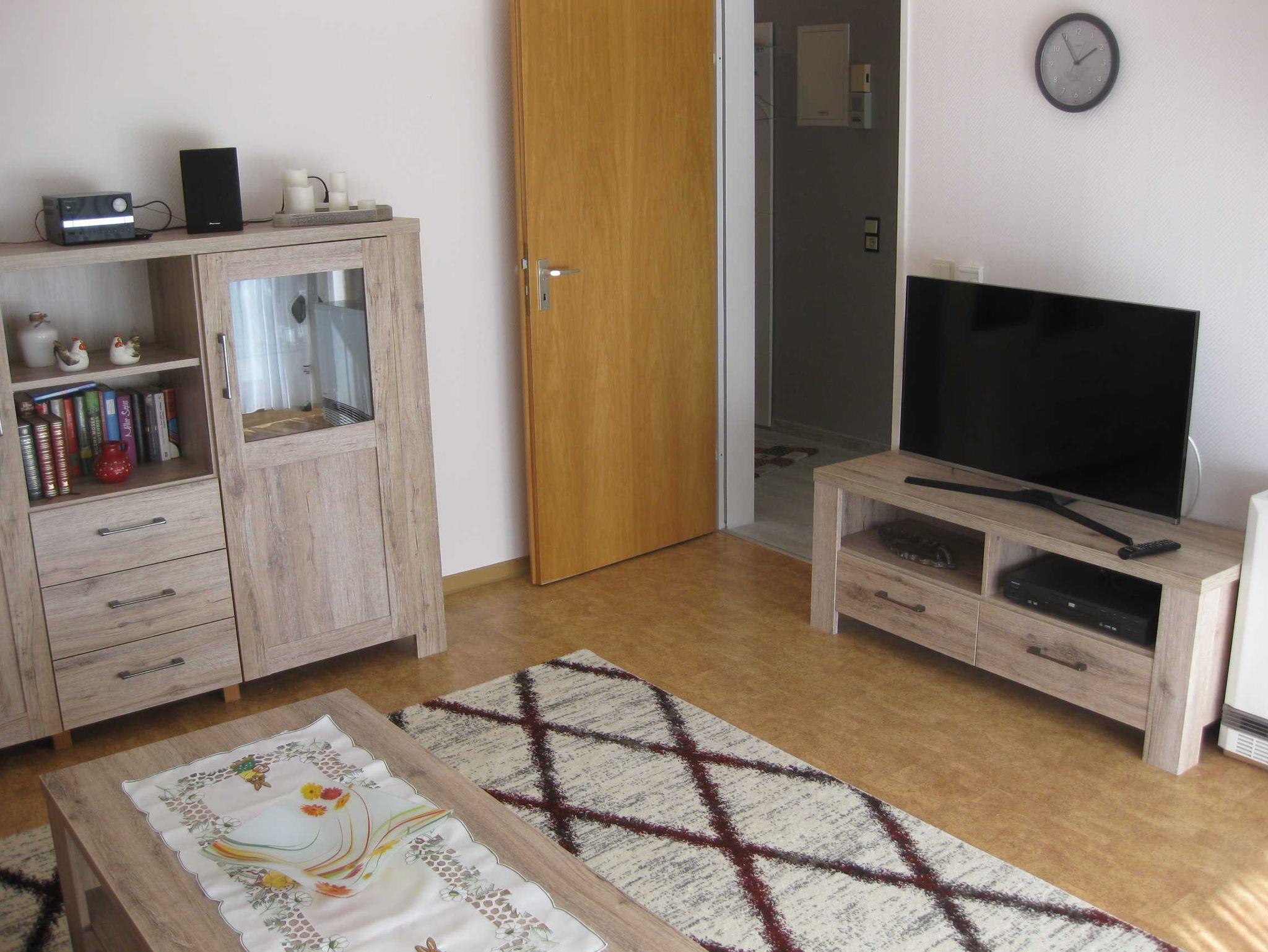Die Wohnung verfügt über folgende Räume (alle Fenster mit Rollläden): Küche mit moderner Küchenzeile, Geschirrspülmaschine, Essplatz und direktem Zugang zur Terrasse. Schlafzimmer mit Doppelbett. Bad mit Dusche, Fön. Wohnzimmer mit Couch, Sessel, Flachbild-TV, Radio, kostenlos W-LAN(begrenzt verfügbar) und Zugang zur Terrasse. Sonnenterrasse zur Südseite mit angrenzender größerer Rasenfläche mit Strandkorb, Gartenmöbel, Liegen und Grill. 2 Fahrräder und Rollator sind kostenlos nutzbar - sie sind von den Gästen selbst zu pflegen.