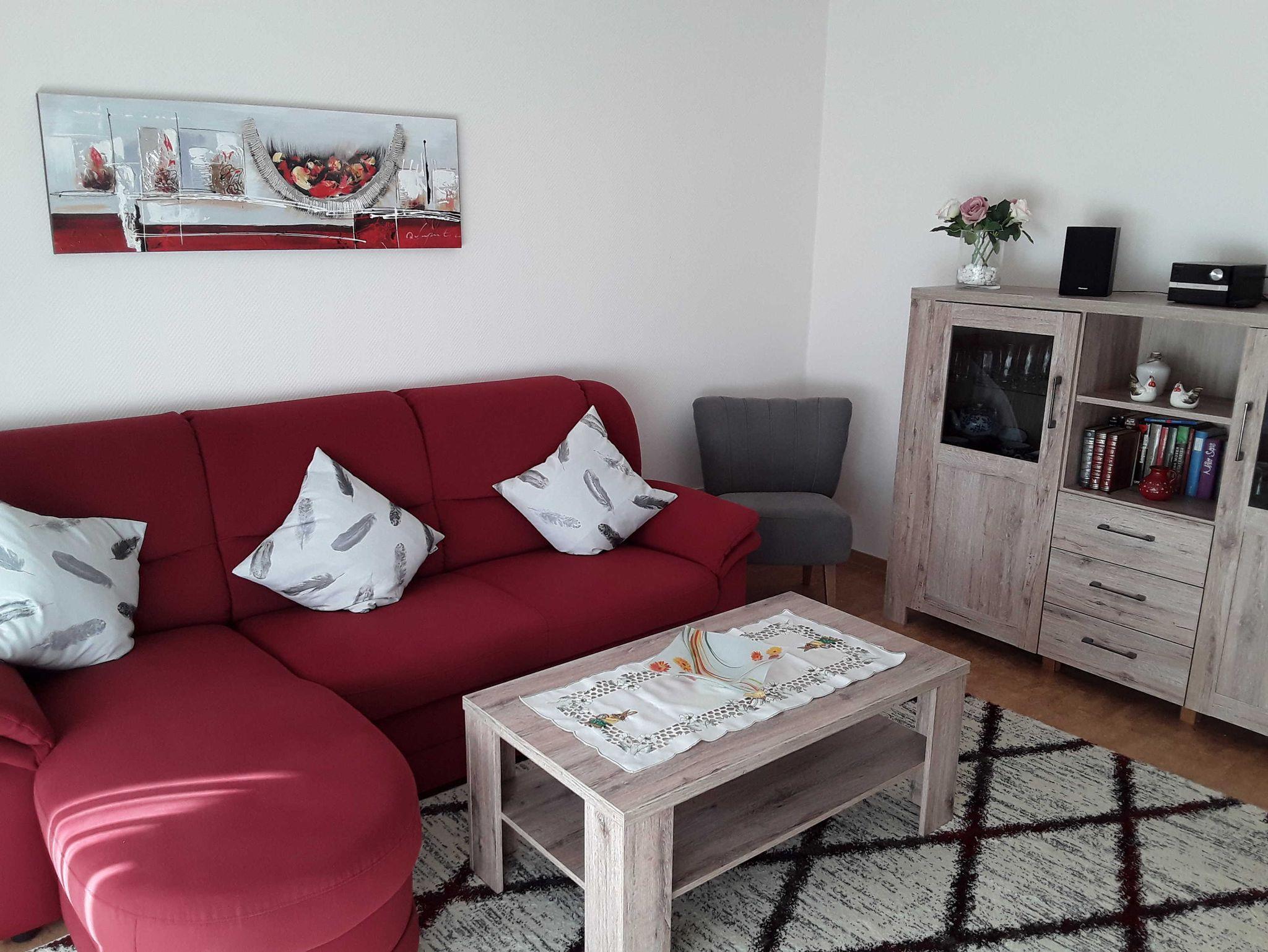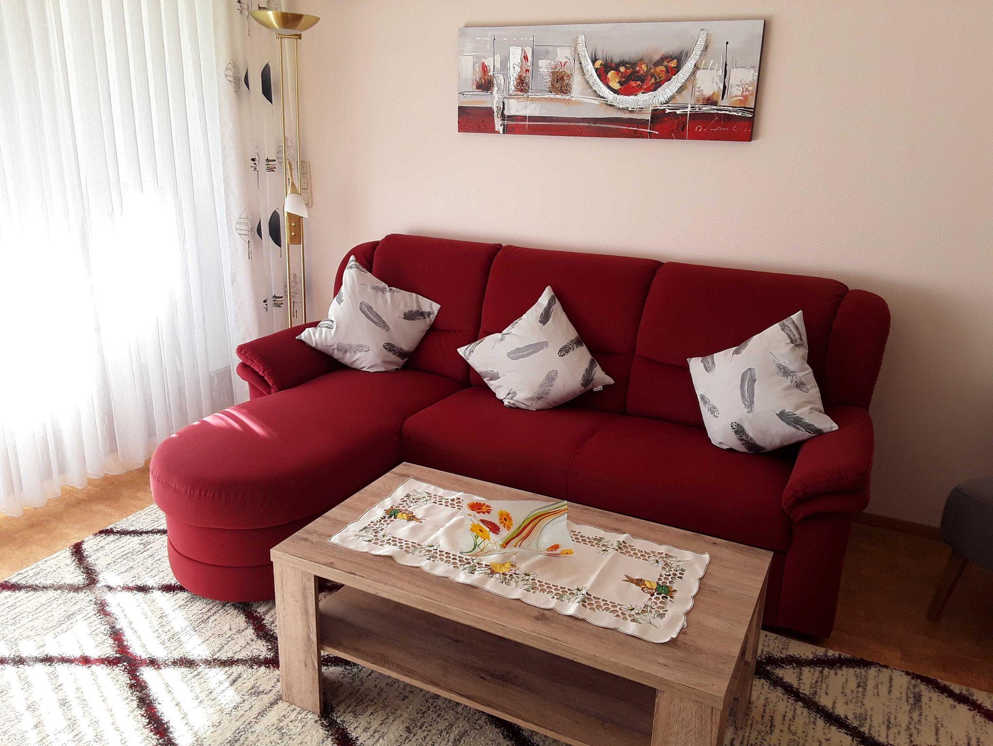 Unsere Ferienwohnung, mit 52 qm Wohnfläche, befindet sich in ruhiger, zentraler Ortsrandlage. Parterre mit Terrasse und angrenzender Rasenfläche für 2 Personen mit Garage.