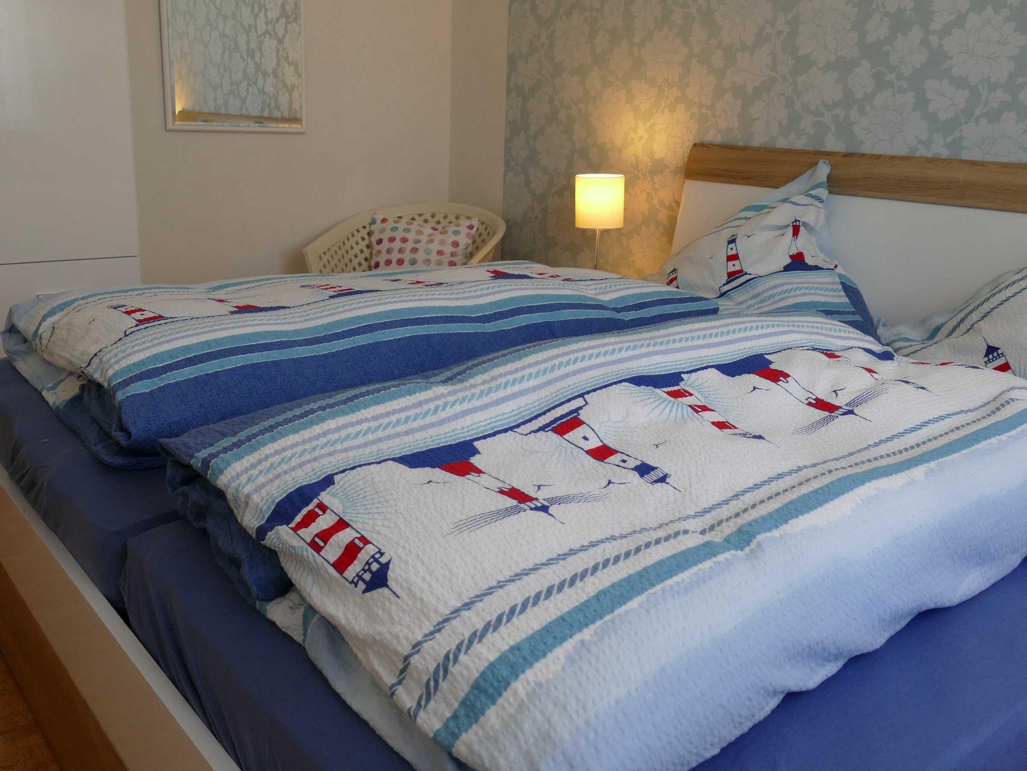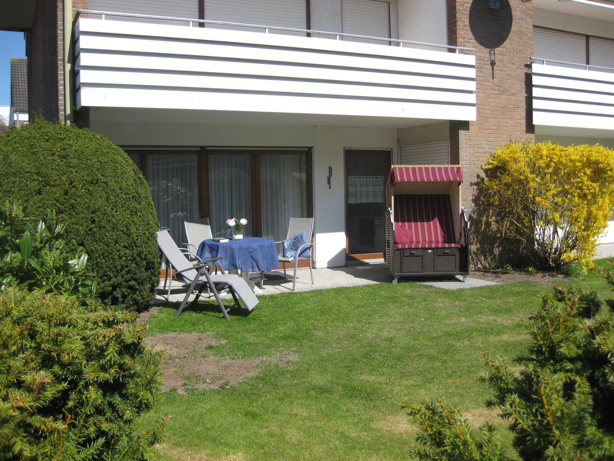Die Wohnung verfügt über folgende Räume (alle Fenster mit Rollläden): Küche mit moderner Küchenzeile, Essplatz und direktem Zugang zur Terrasse. Schlafzimmer mit Doppelbett. Bad mit Dusche, Fön. Wohnzimmer mit Couch, Sessel, Flachbild-TV, Radio, kostenlos W-LAN(begrenzt verfügbar) und Zugang zur Terrasse. Sonnenterrasse zur Südseite mit angrenzender größerer Rasenfläche mit Strandkorb, Gartenmöbel, Liegen und Grill. 3 Fahrräder sind kostenlos nutzbar - sie sind von den Gästen selbst zu pflegen.