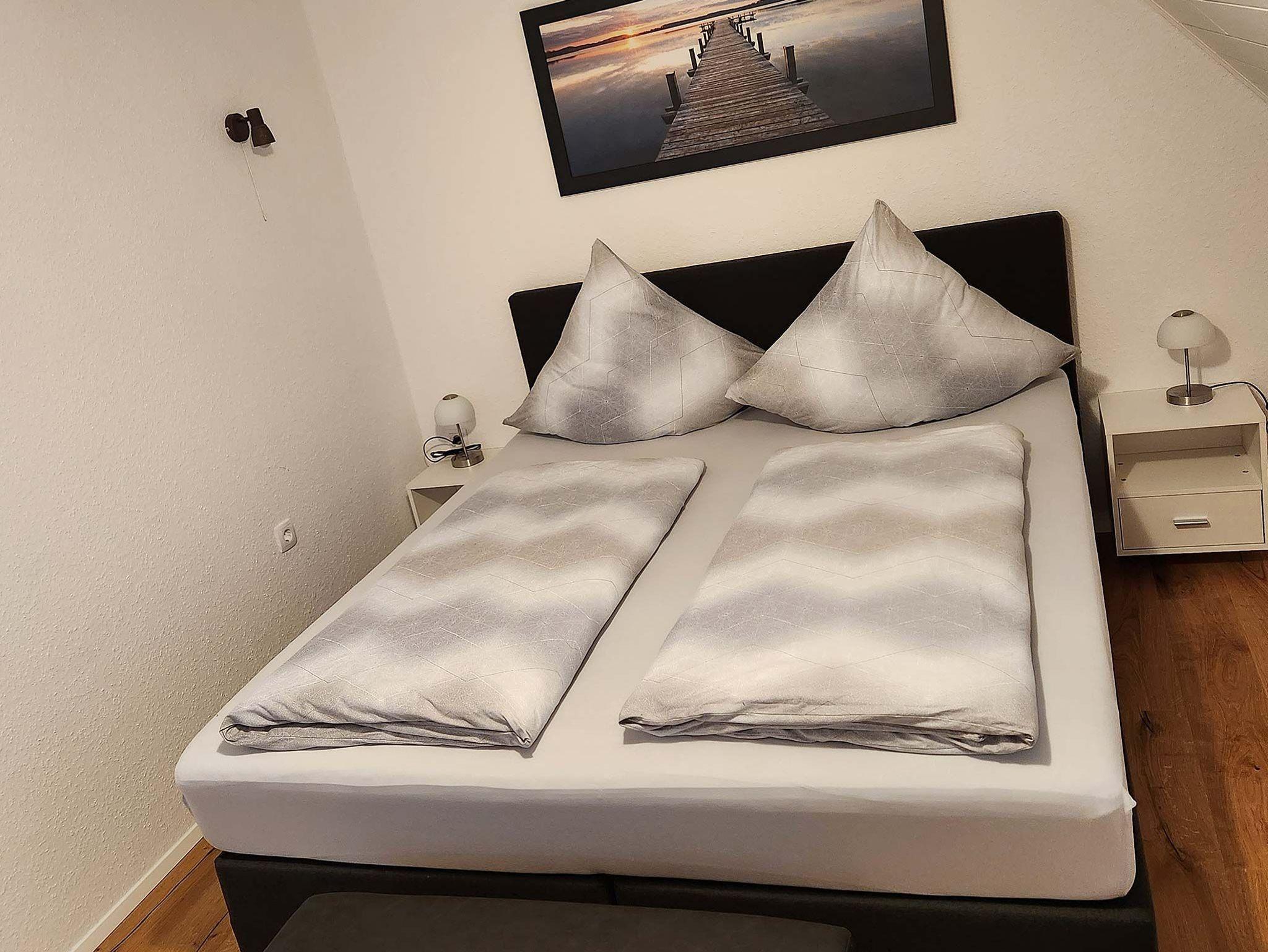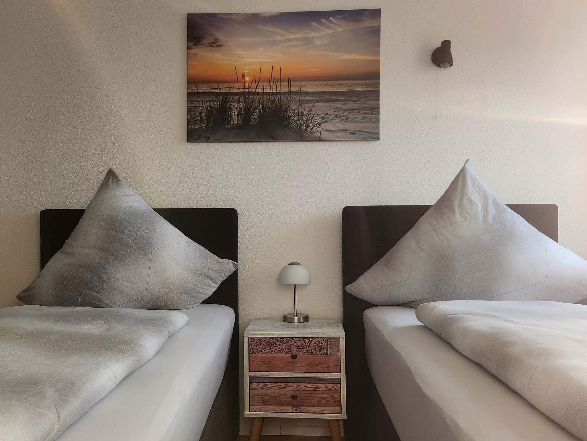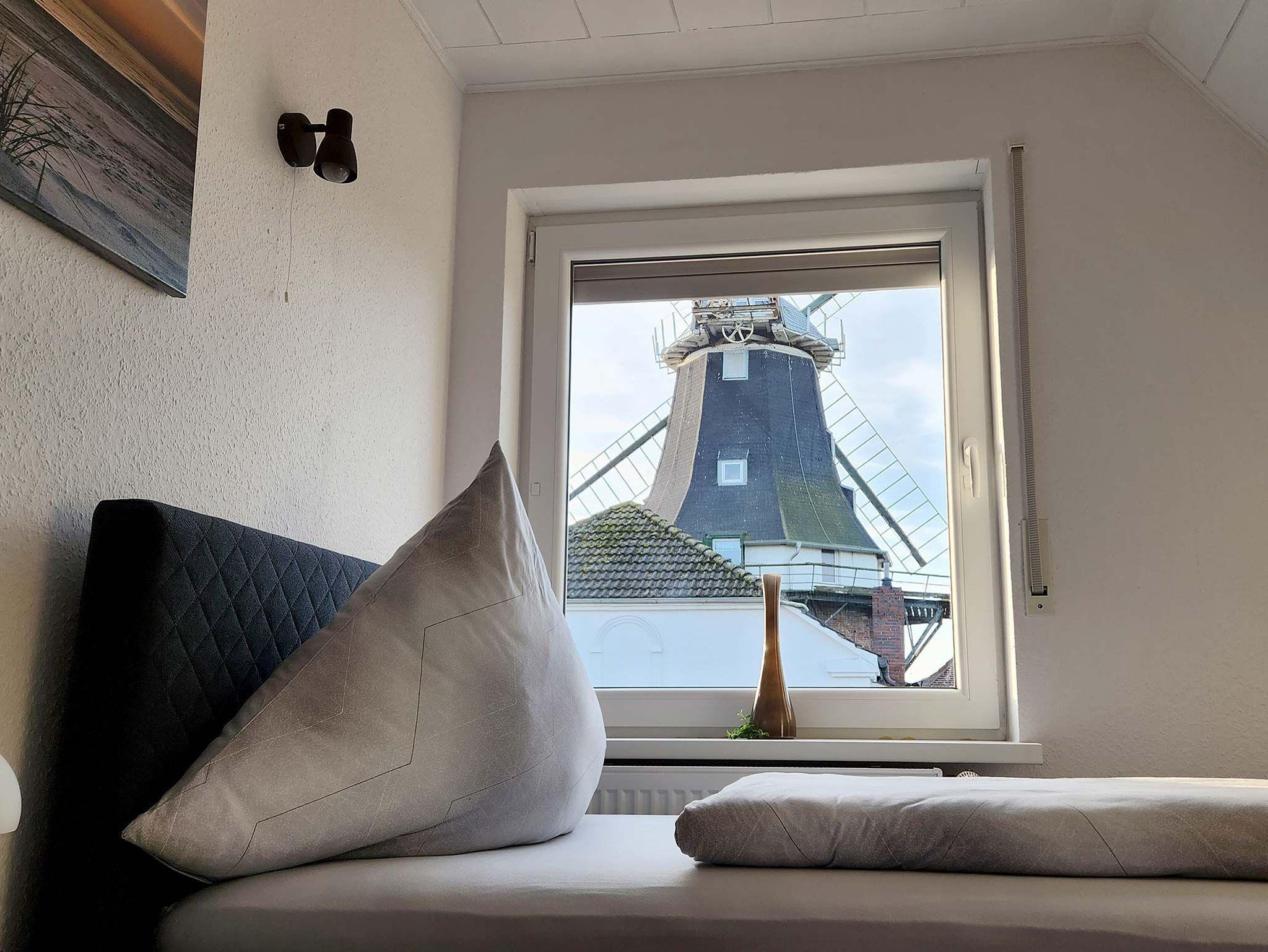 Die Wohnungen bieten jeweils zwei Schlafzimmer mit Doppel- und Einzelbetten (Boxspringbetten) und liegen ganz in der Nähe des Hafen-Zentrums und der historischen Windmühle, einem Wahrzeichen von Carolinensiel.