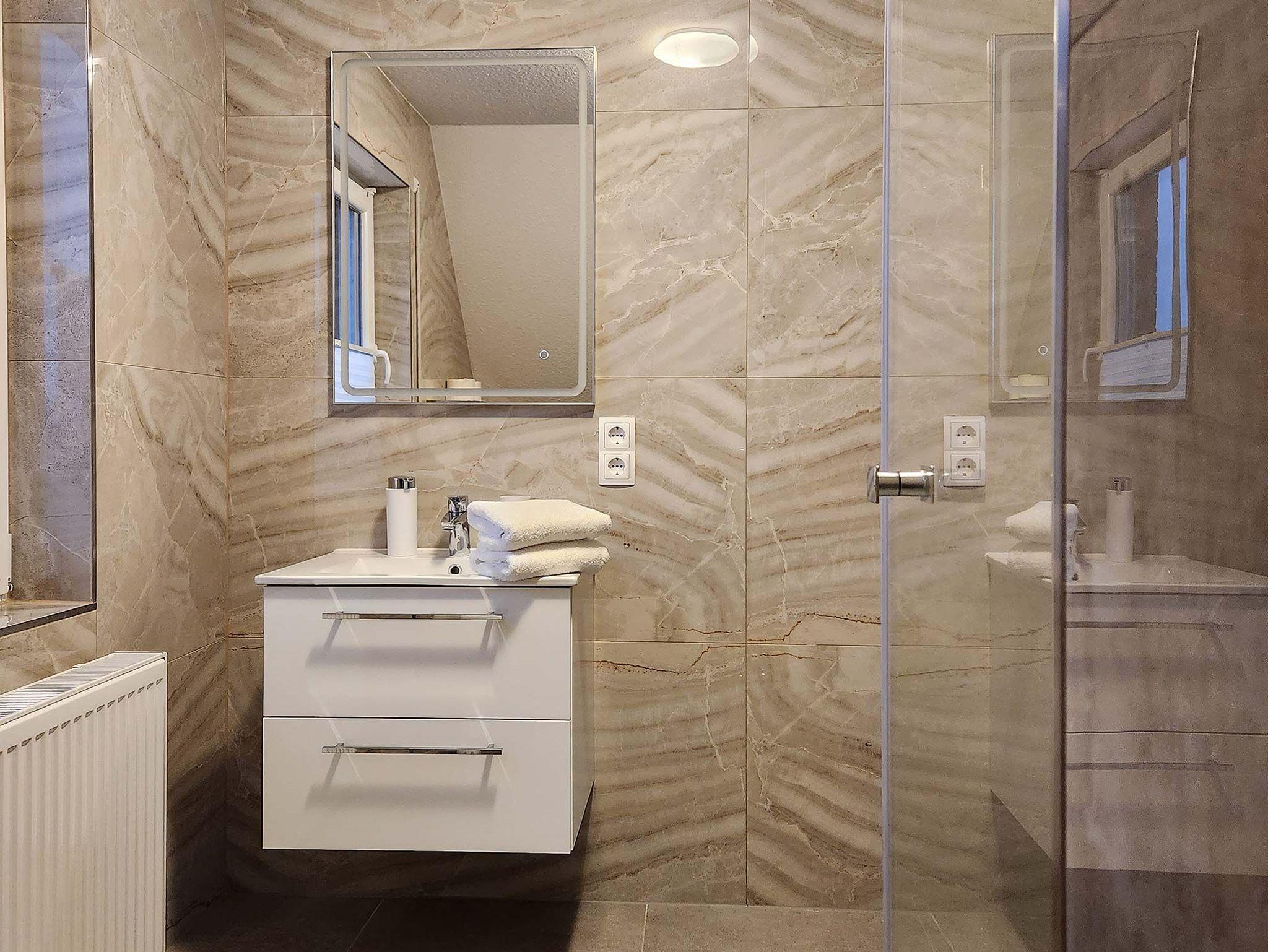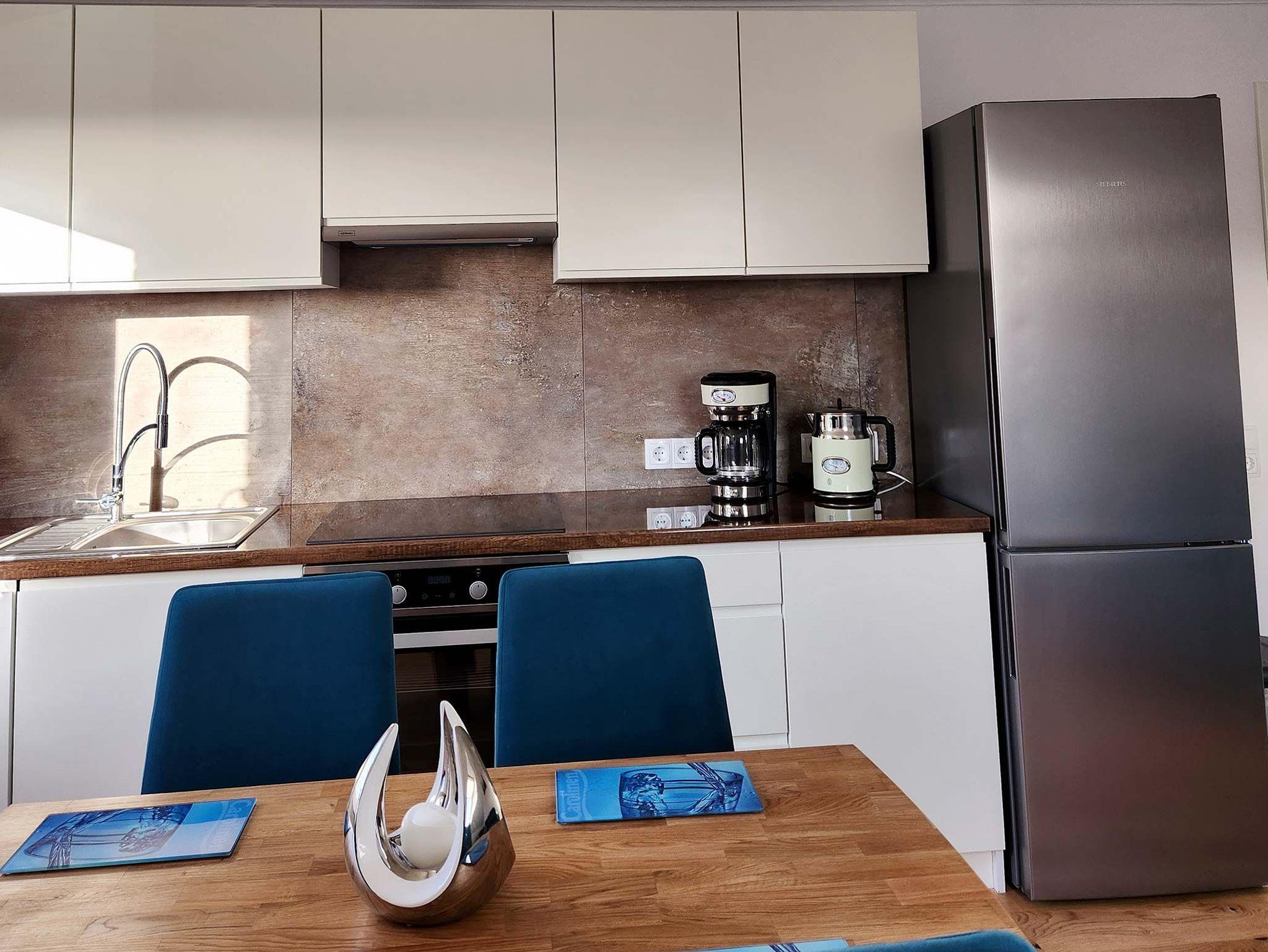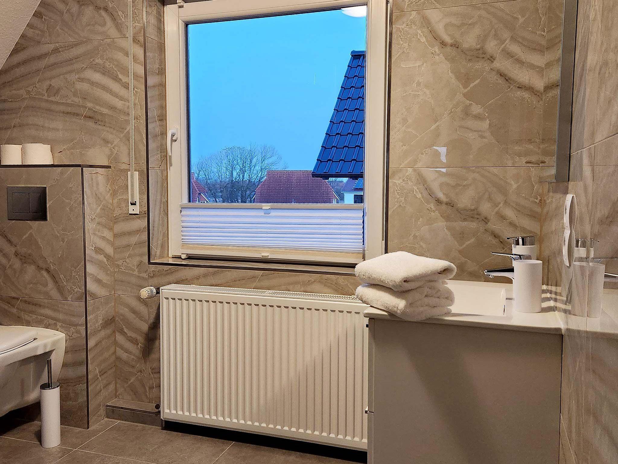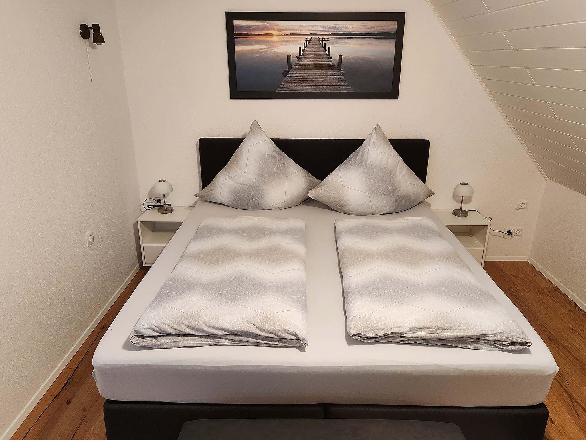 Die Wohnungen bieten jeweils zwei Schlafzimmer mit Doppel- und Einzelbetten (Boxspringbetten) und liegen ganz in der Nähe des Hafen-Zentrums und der historischen Windmühle, einem Wahrzeichen von Carolinensiel.