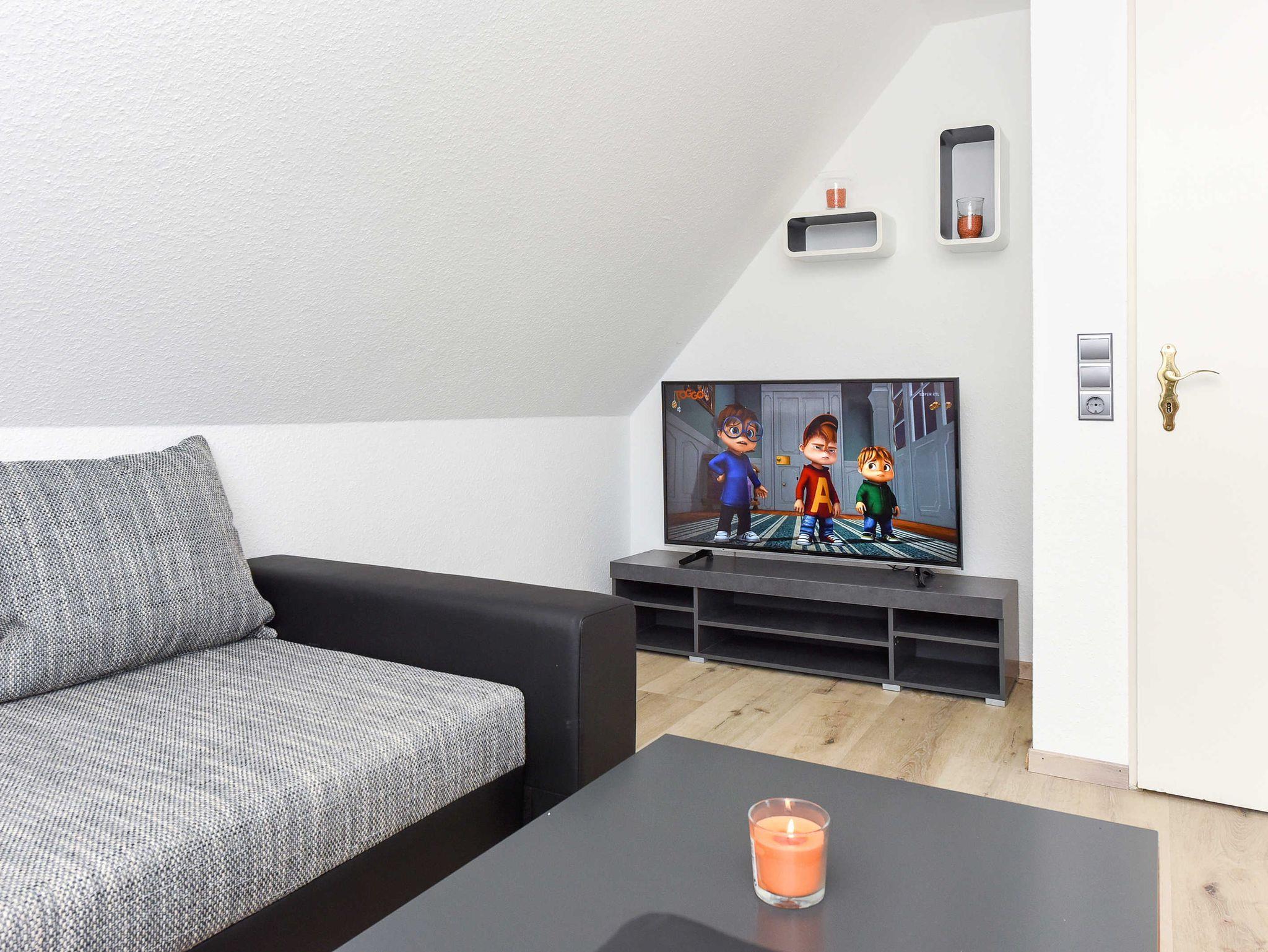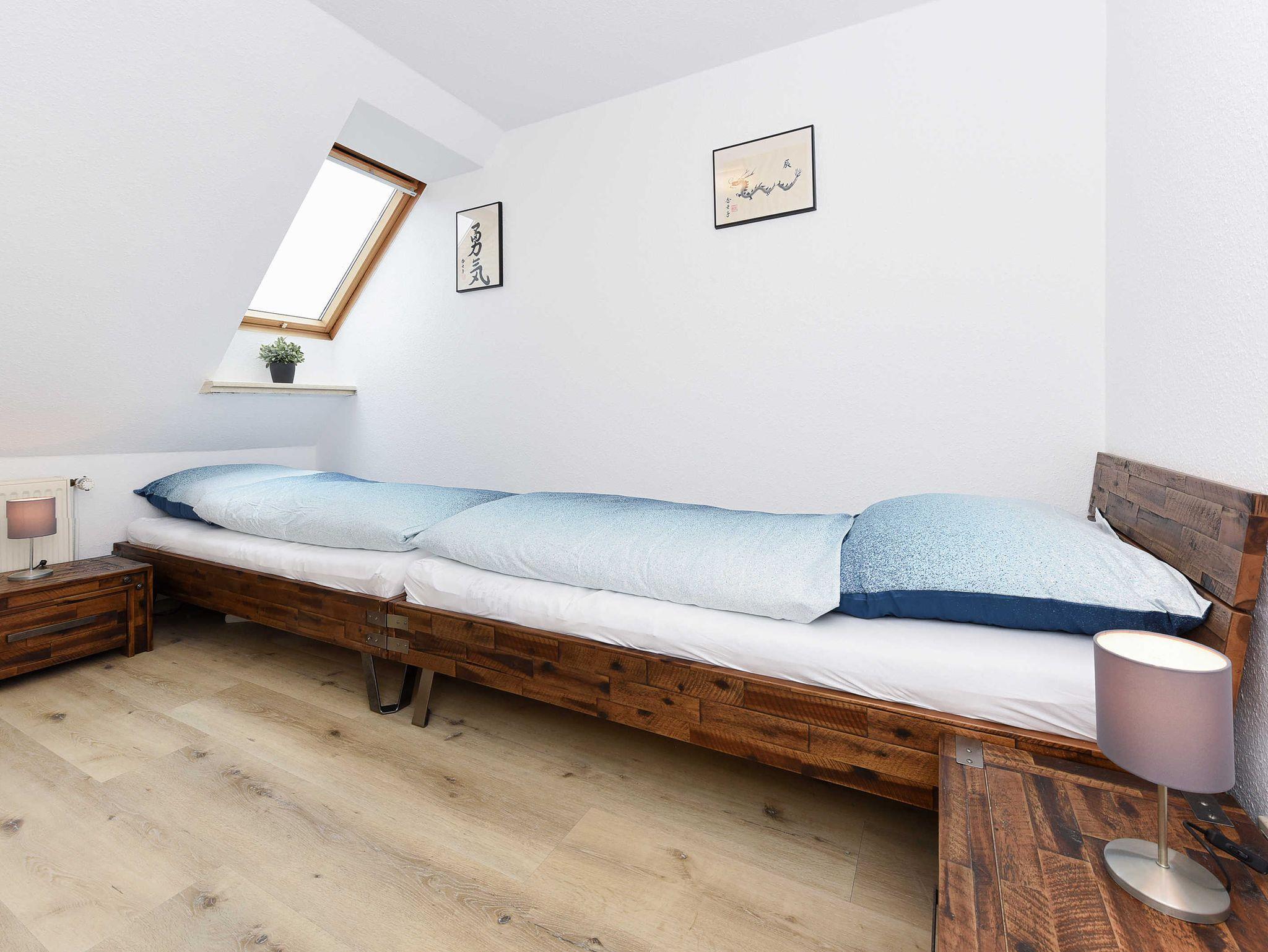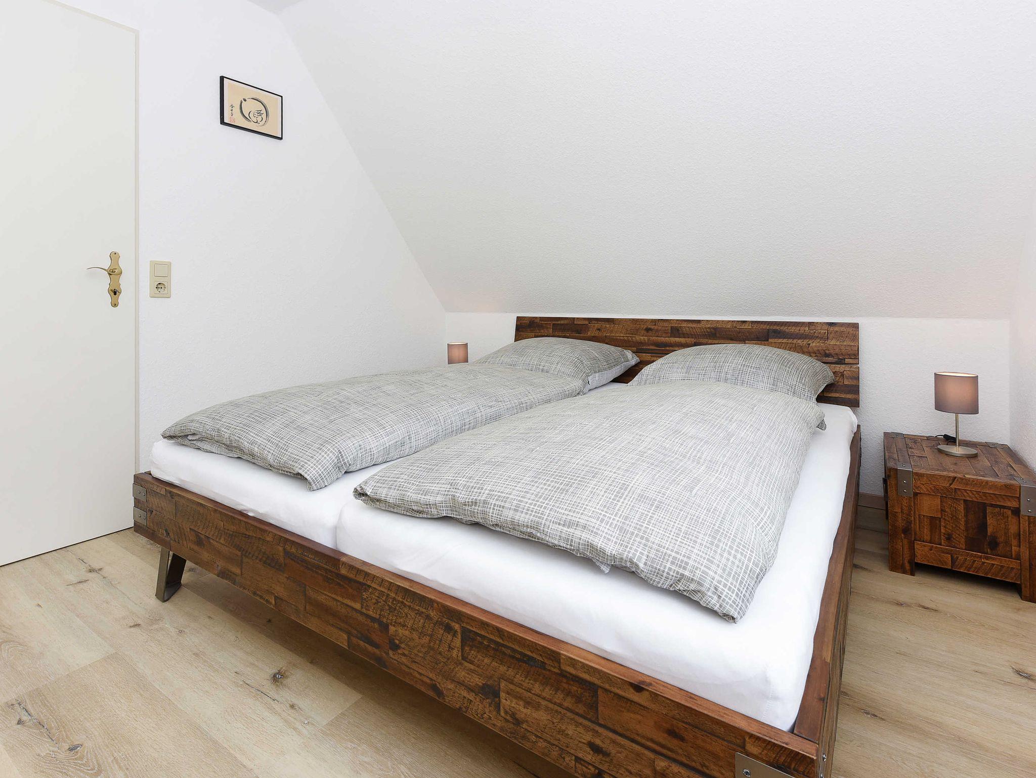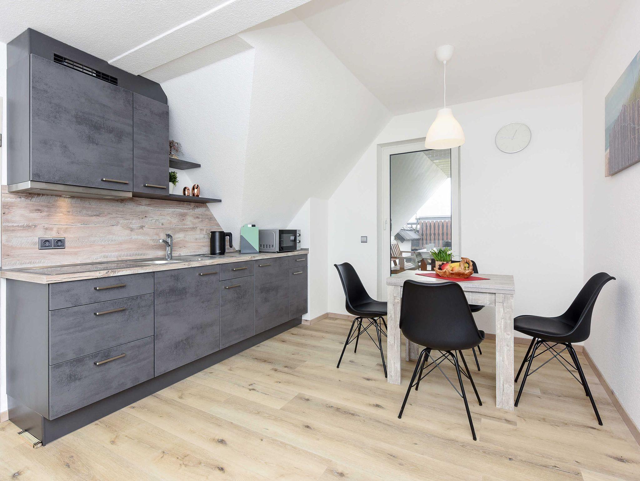 Größe ca. 60 Quadratmeter, Wohnraum mit integrierter Küche, Schlafzimmer, zweites separates Schlafzimmer/Kinderzimmer, Badezimmer mit Dusche, Waschtisch und WC, Obergeschoss, Balkon, ausschließlich für Nichtraucher, optimal für 2 bis 4 Personen und zusätzlich ein Kleinkind.