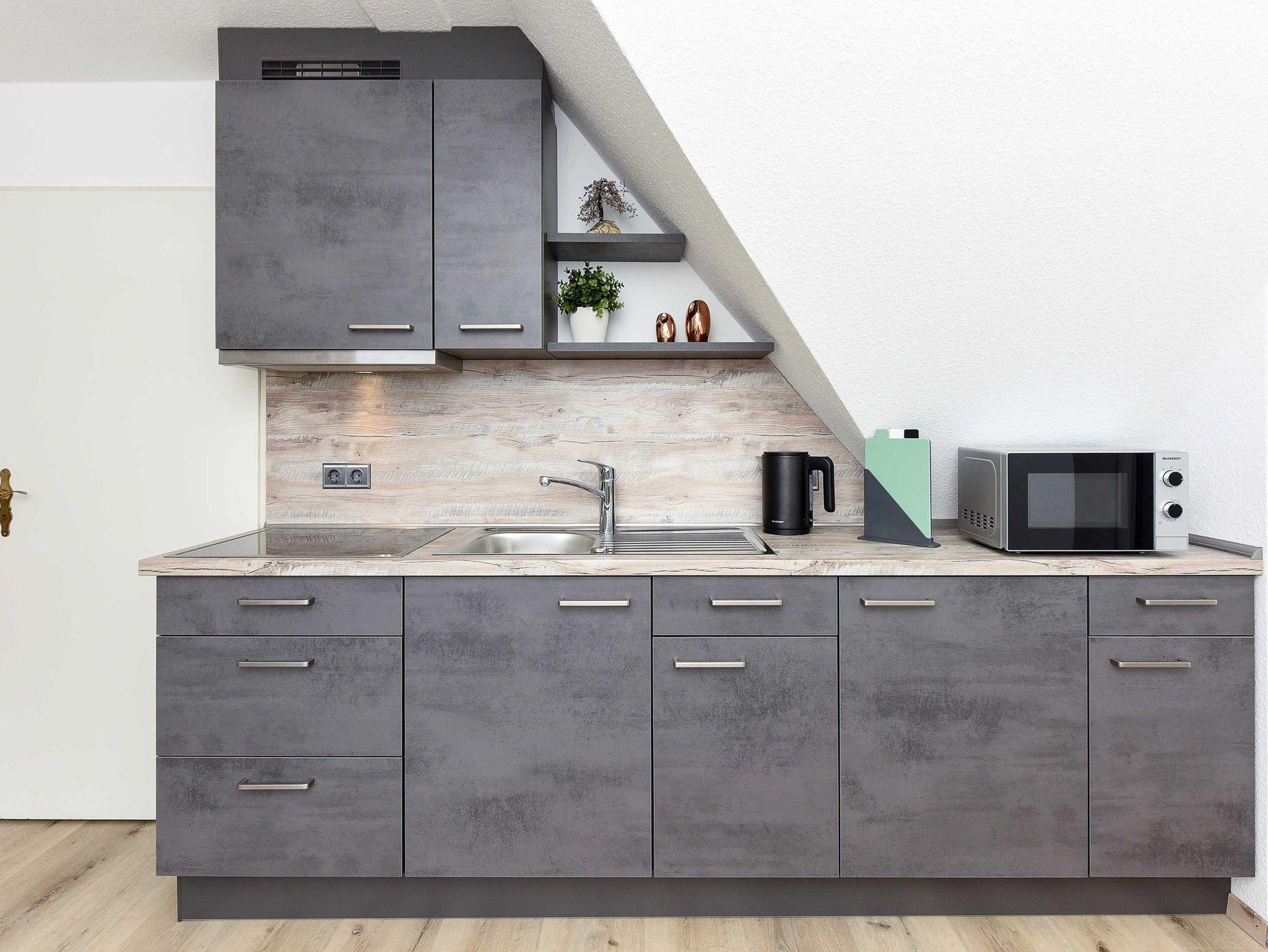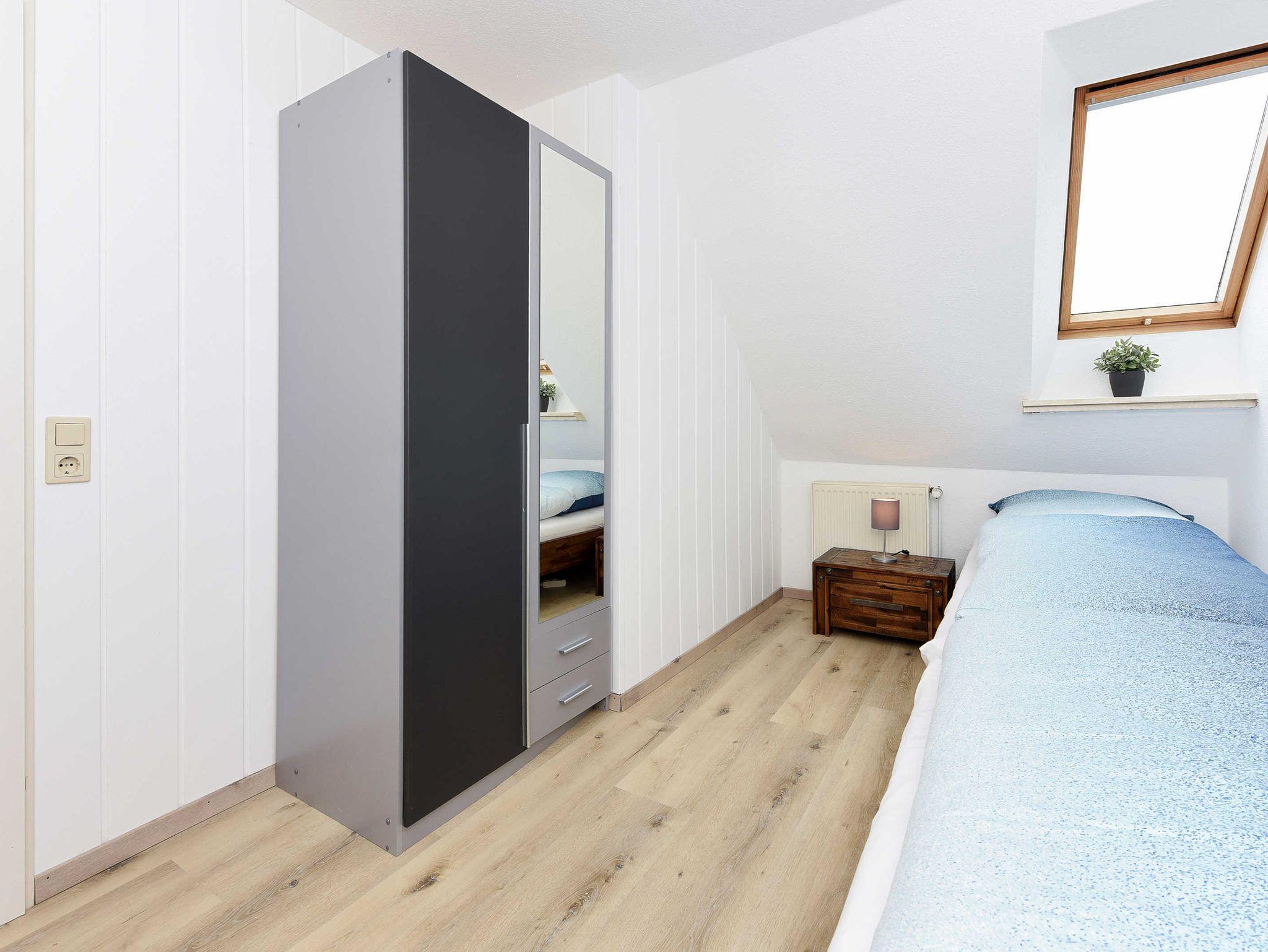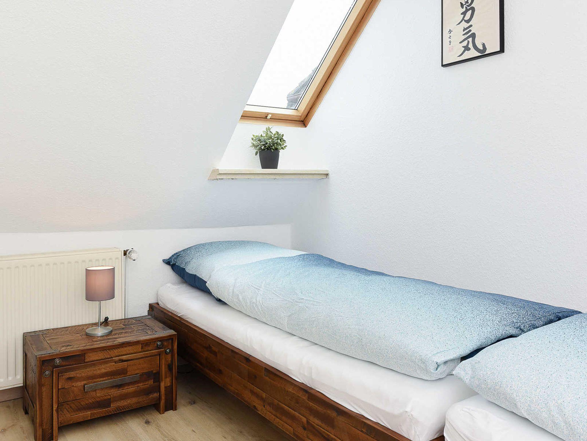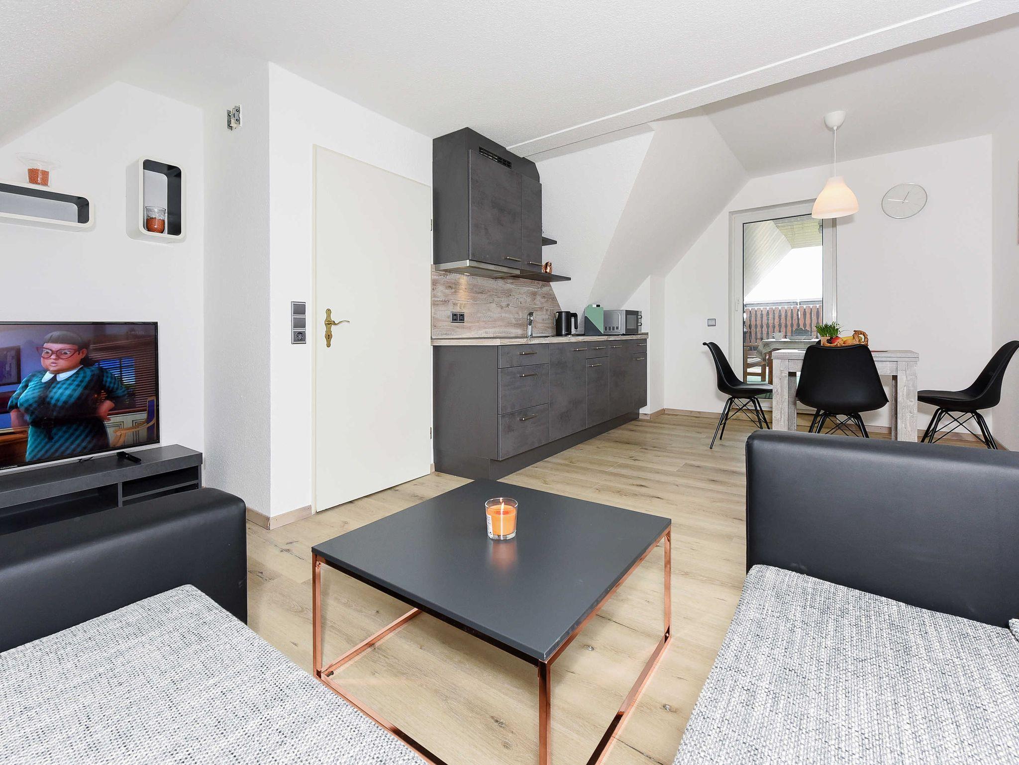 Größe ca. 60 Quadratmeter, Wohnraum mit integrierter Küche, Schlafzimmer, zweites separates Schlafzimmer/Kinderzimmer, Badezimmer mit Dusche, Waschtisch und WC, Obergeschoss, Balkon, ausschließlich für Nichtraucher, optimal für 2 bis 4 Personen und zusätzlich ein Kleinkind.
