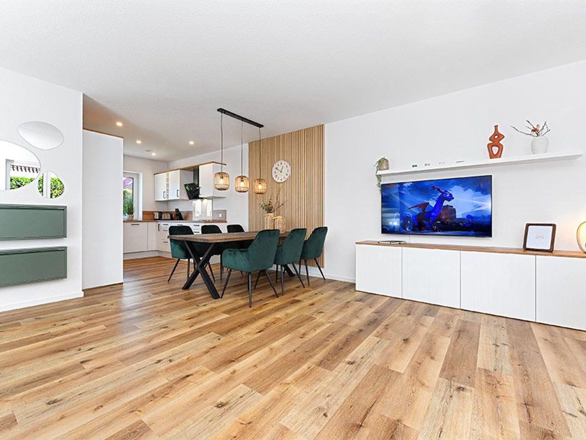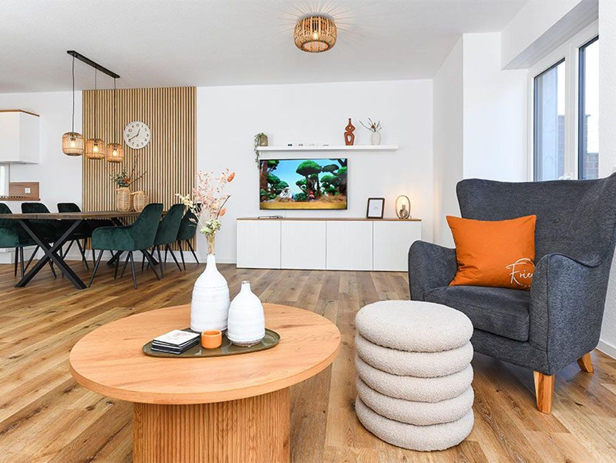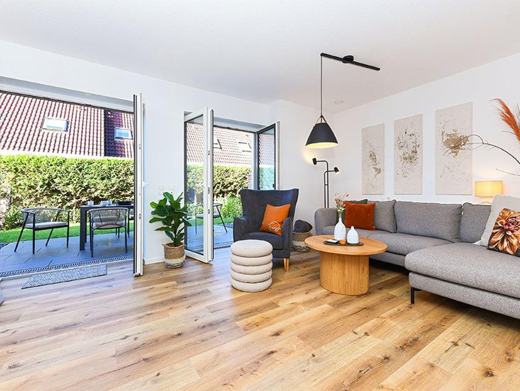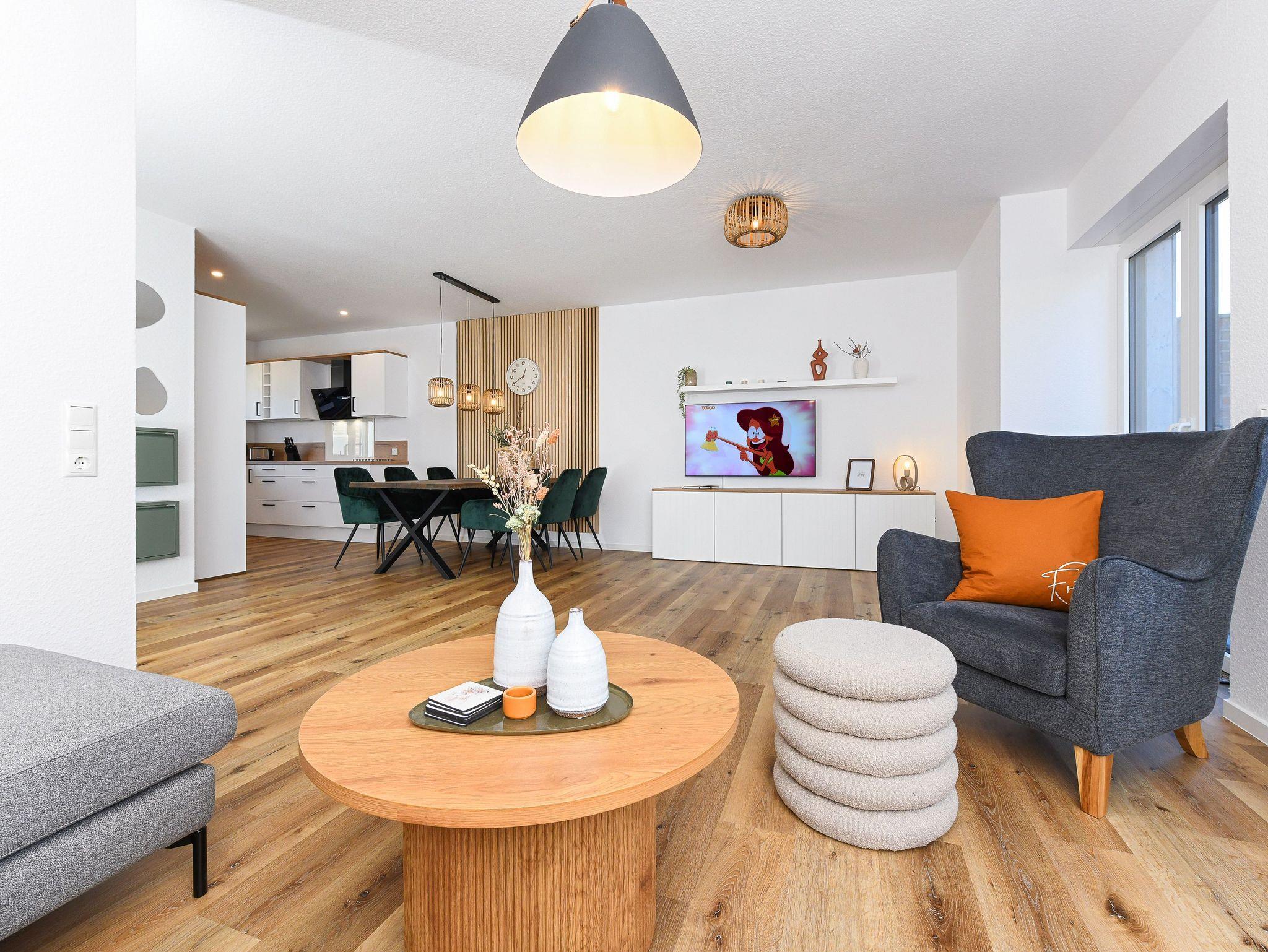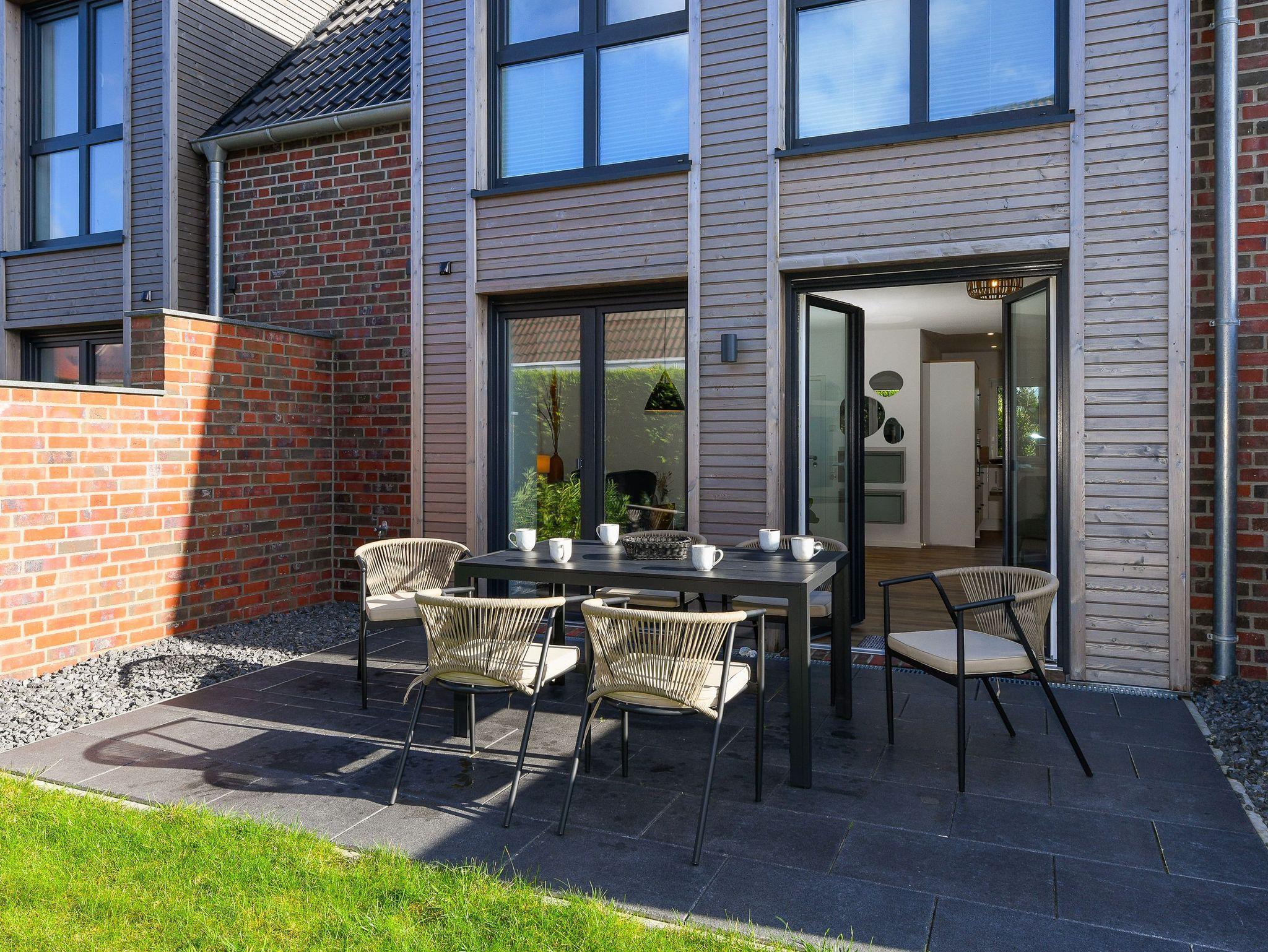 Es handelt sich bei diesem Ferienhaus um ein geräumiges ungefähr 100 Quadratmeter großes Reihenhaus, dass für einen schönen Nordseeurlaub für bis zu 6 Personen bestens vorbereitet ist. Das Ferienhaus ist modern-gemütlich, hell und freundlich gestaltet und eingerichtet sowie äußerst hochwertig mit viel Liebe zum Detail ausgestattet. Es gibt zum Beispiel eine Terrasse und eine top ausgestattete moderne Küche mit Geschirrspülmaschine.