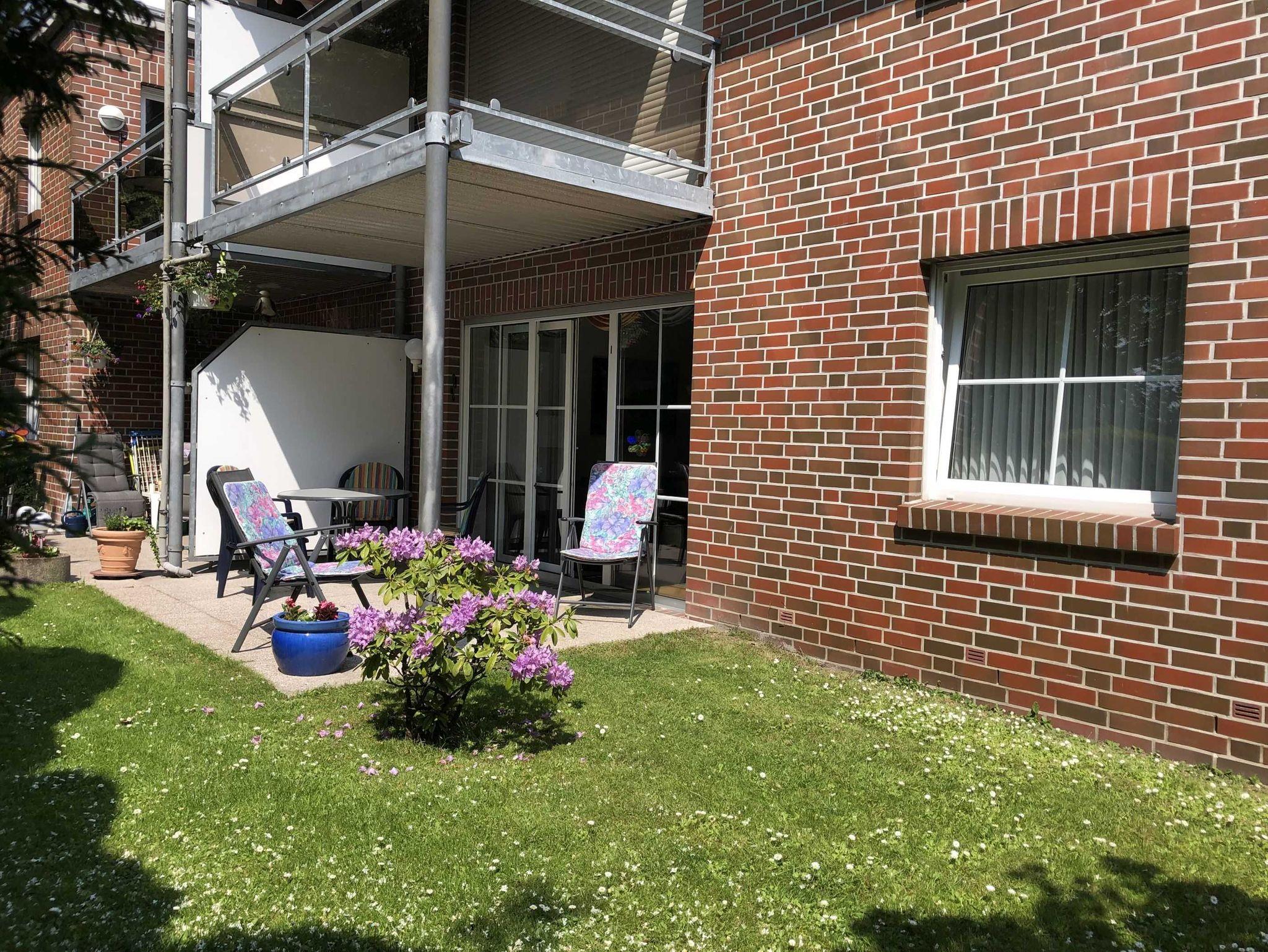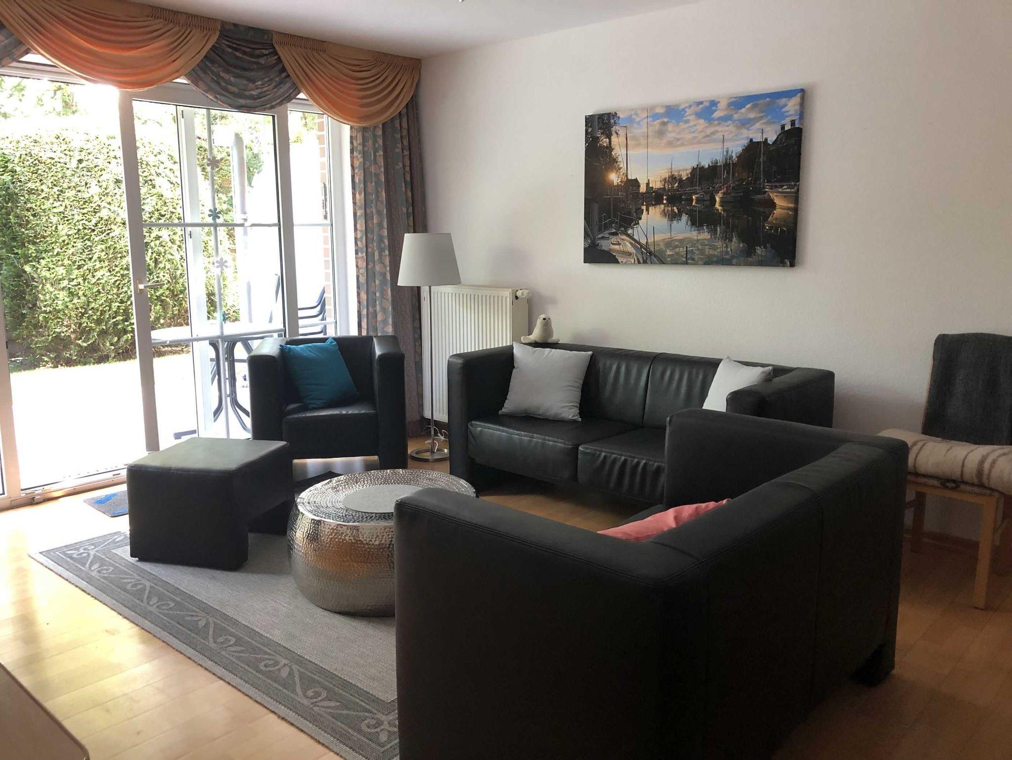 Ferienwohnung im Ortskern nahe Museumshafen mit zwei Schlafzimmern mit Doppelbetten, einem großzügigen und hellen Wohn- und Essbereich, separater Einbauküche, Badezimmer mit Badewanne, Waschmaschine und Trockner, überdachter Terrasse in Südlage. Nur 1 Hund erlaubt.