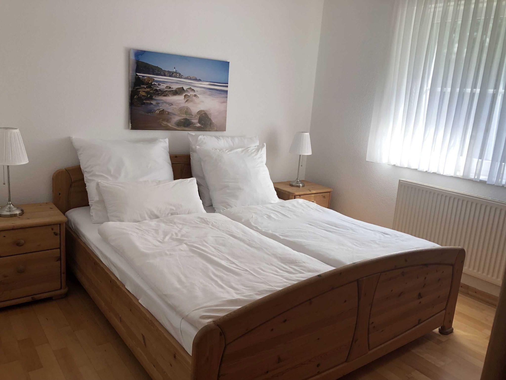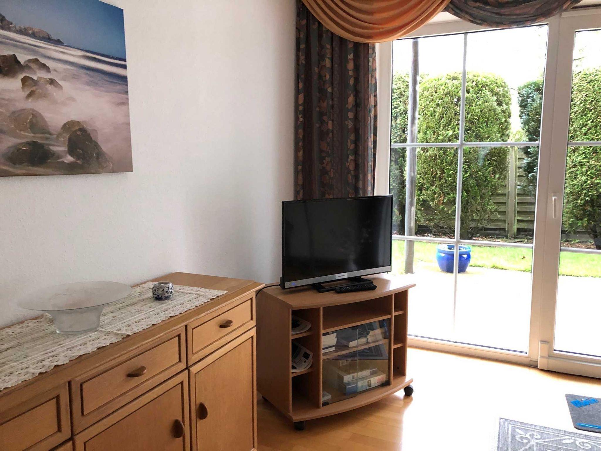 Ferienwohnung im Ortskern nahe Museumshafen mit zwei Schlafzimmern mit Doppelbetten, einem großzügigen und hellen Wohn- und Essbereich, separater Einbauküche, Badezimmer mit Badewanne, Waschmaschine und Trockner, überdachter Terrasse in Südlage. 1 Hund erlaubt.