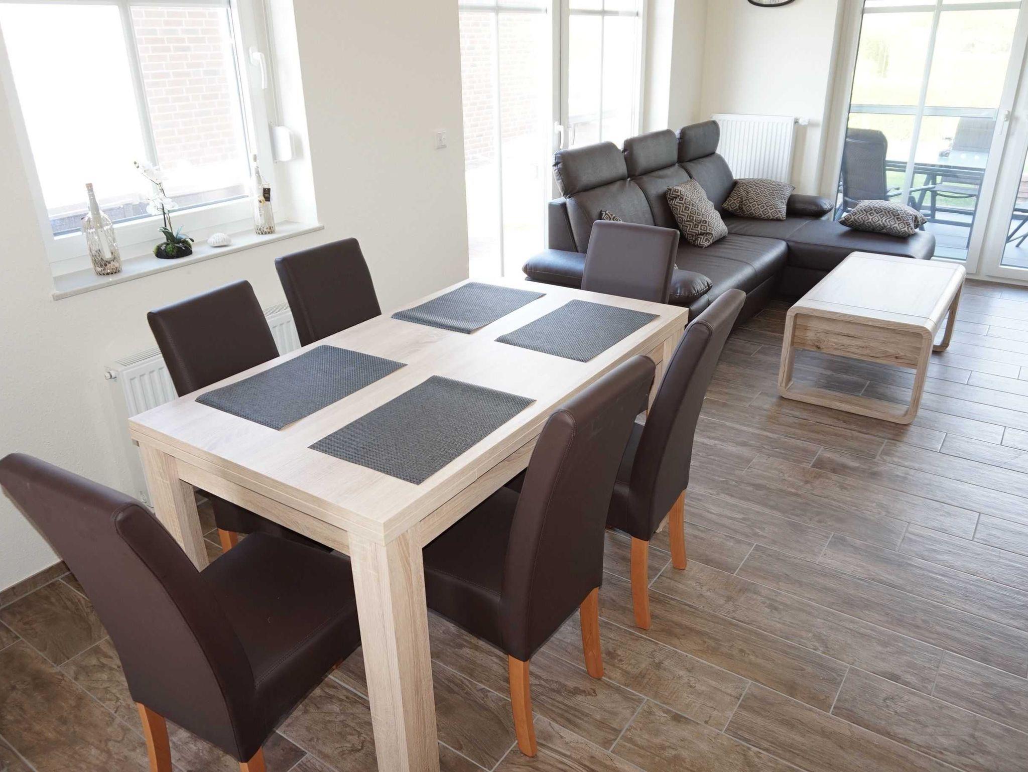 - Wohnzimmer mit Couchbereich, Esszimmer, Küchenzeile