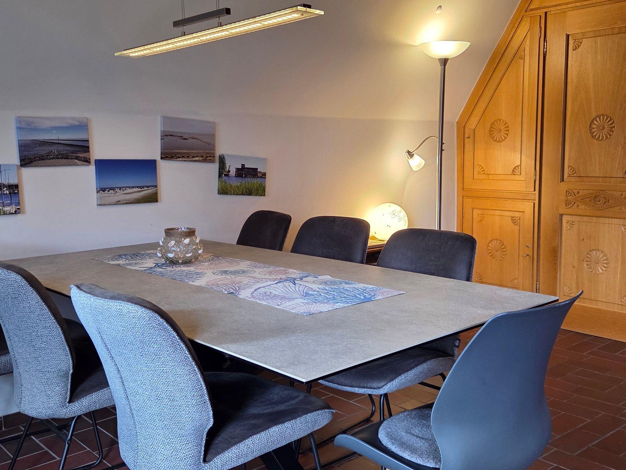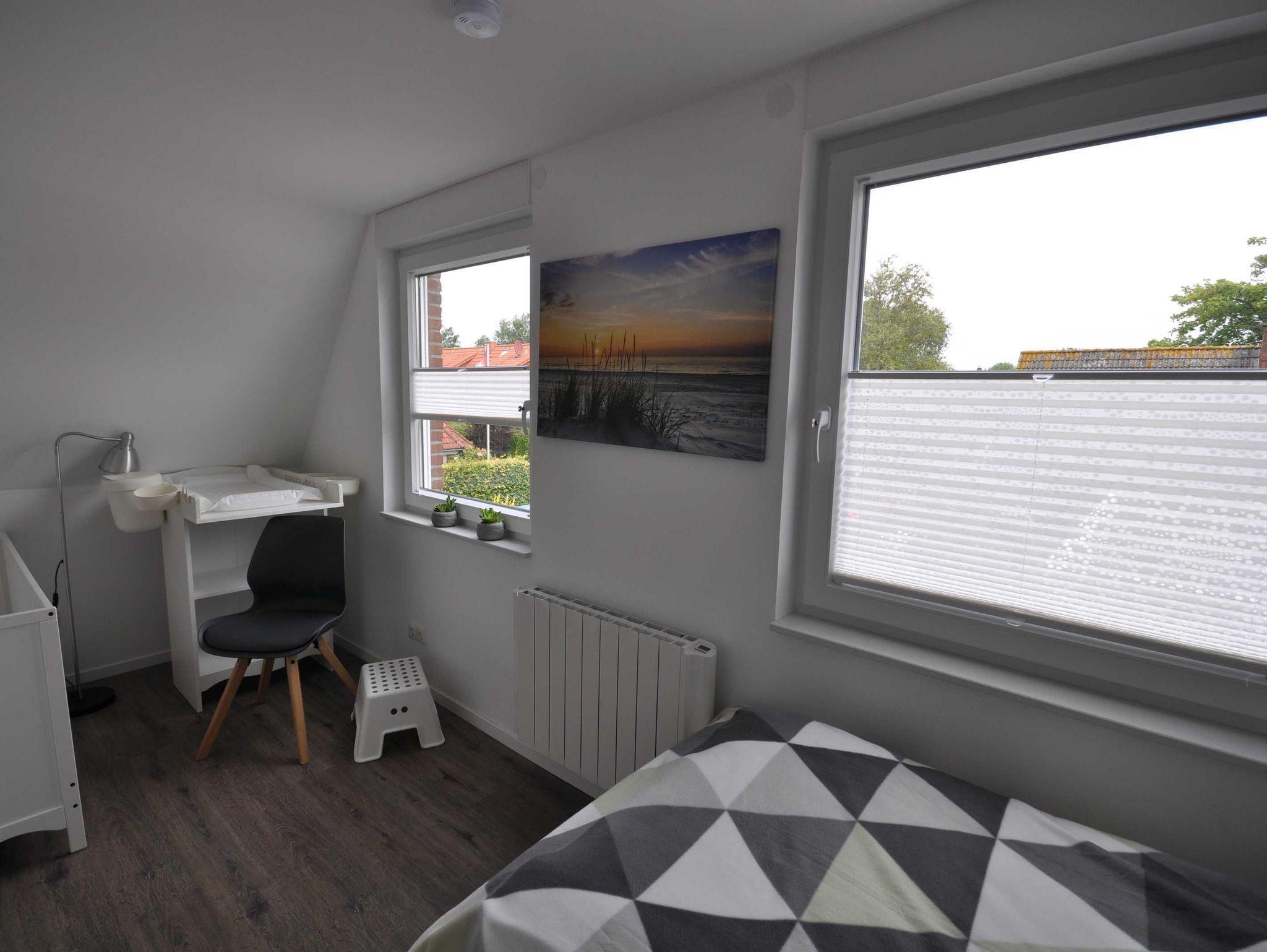 Das Fereinhaus verfügt im Erdgeschoss über einen großzügigen Wohn- und Essbereich, einer separaten Küche sowie über ein Schlafzimmer mit einem Doppelbett. Ebenso befindet sich hier ein geräumiges, behindertenfreundliches Badezimmer mit begehbarer Dusche und WC. Eine offene Holztreppe führt zum Obergeschoss. Hier befinden sich zwei Schlafzimmer (je ein Schlafzimmer mit zwei Einzelbetten, ein Schlafzimmer davon zusätzlich mit Wickelkommode) sowie ein WC. Ein Großteil der Fenster sind mit Rollläden ausgestattet. Auf den Böden sind Fliessen bzw. Vinyl verlegt. WLAN steht Ihnen kostenfrei zur Verfügung. Eine attraktive Ausstrahlung sorgt für entsprechende Wohnqualität. Gerne können Sie auch Ihren Vierbeiner mitbringen.