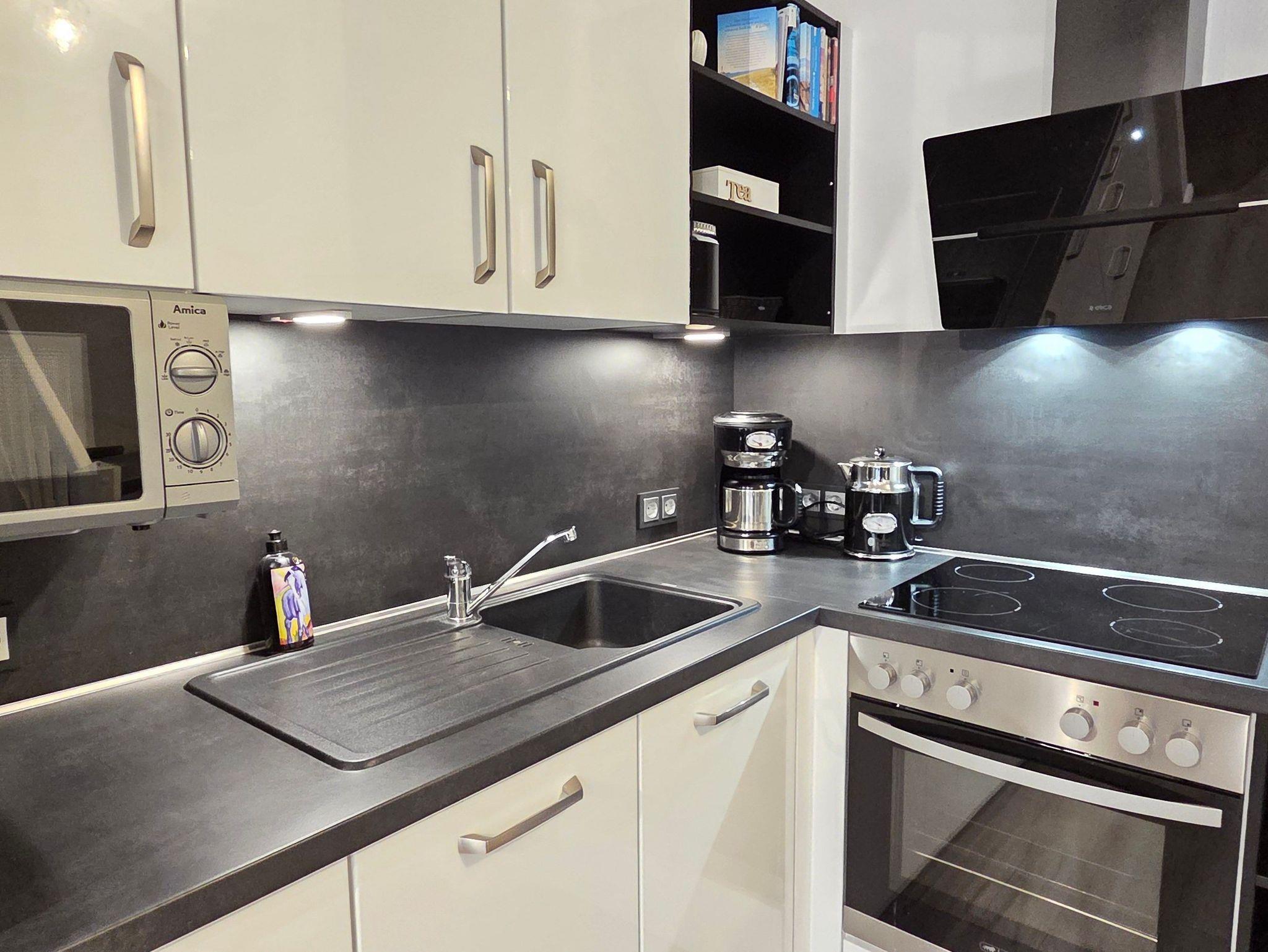 Die Galerie im Dachboden kann auch als Spielfläche für Kinder genutzt werden. Die sonnige Terrasse lädt zum Entspannen, Essen oder ein Glas Wein am Abend ein, während die voll ausgestattete offene Küche, u.a. mit Kaffeemaschine, Eierkocher, Toaster, Waffeleisen, Handmixer, Wasserkocher, Backofen, Mikrowelle, Geschirrspüler, Tiefkühlfach, keine Wünsche offenlässt.