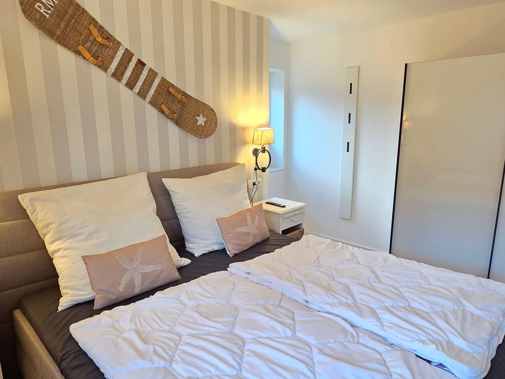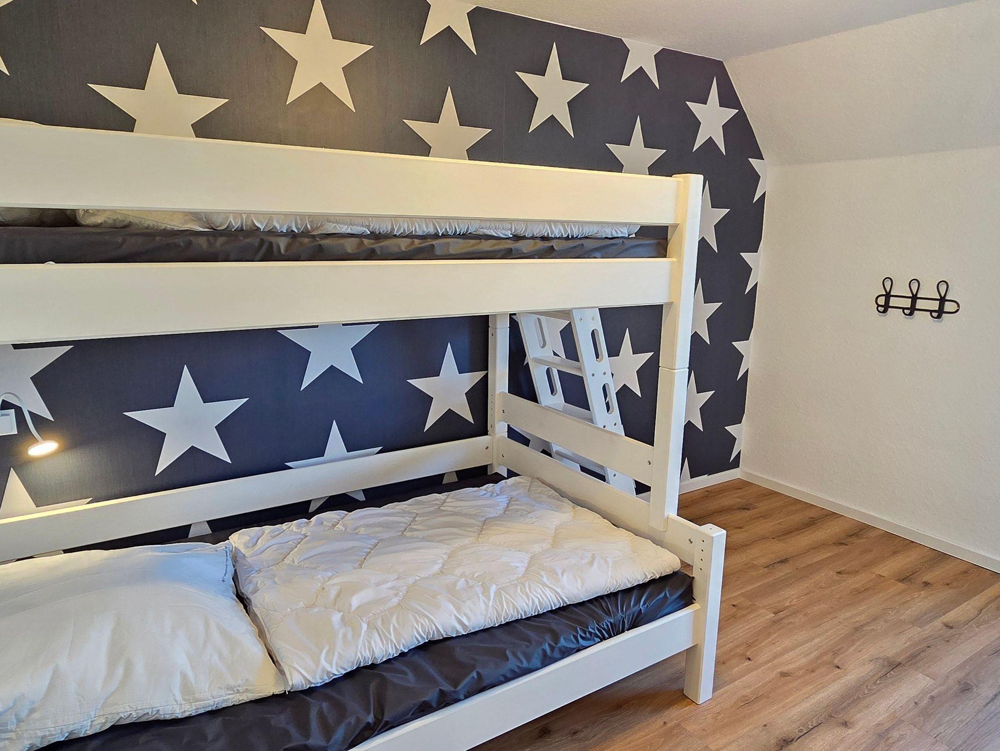 Das großzügige Ferienhaus Ankerhus bietet auf drei Ebenen Platz für bis zu 8 Personen und vereint gehobenen Komfort mit Wohlfühlatmosphäre. Vier Schlafzimmer mit Smart-TV und Verdunkelungsmöglichkeit, drei davon mit hochwertigen Boxspringbetten, eines mit Etagenbett mit extrabreiter Liegefläche unten (120cm), sorgen für einen erholsamen Schlaf. Das Erdgeschoss-Schlafzimmer mit barrierearmem Duschbad gegenüber ist besonders für Gäste mit eingeschränkter Mobilität geeignet. Ein weiteres Duschbad befindet sich im Obergeschoss.