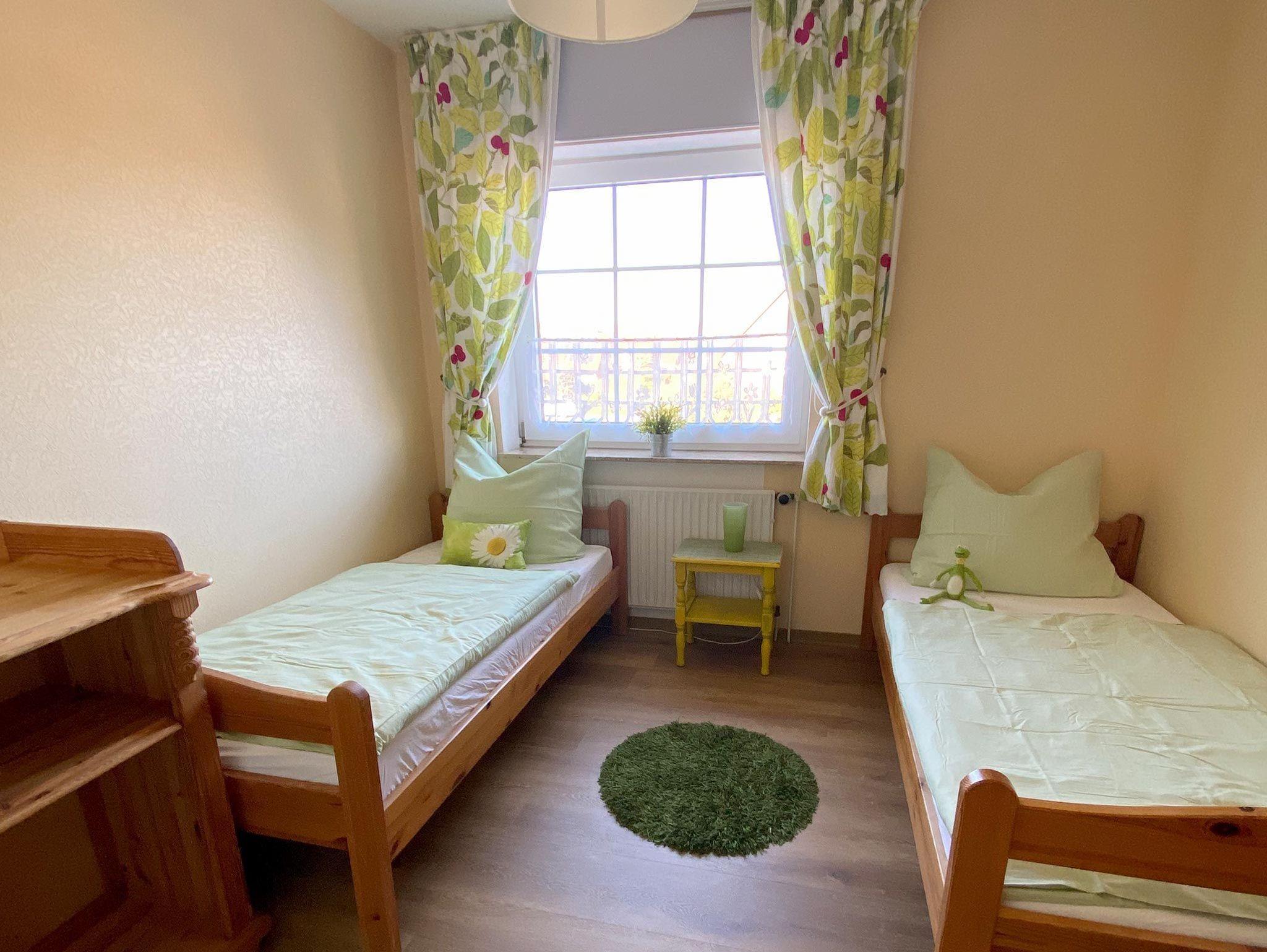 Ferienwohnung für 4 Erwachsene und ein Kleinkind. Wohn- und Esszimmer, 2 Schlafzimmer (1x Doppelbett und Kinderbett, 1x mit 2 Einzelbetten), Bad mit Dusche und WC. Komplett eingerichtete Küchenzeile mit Spülmaschine.