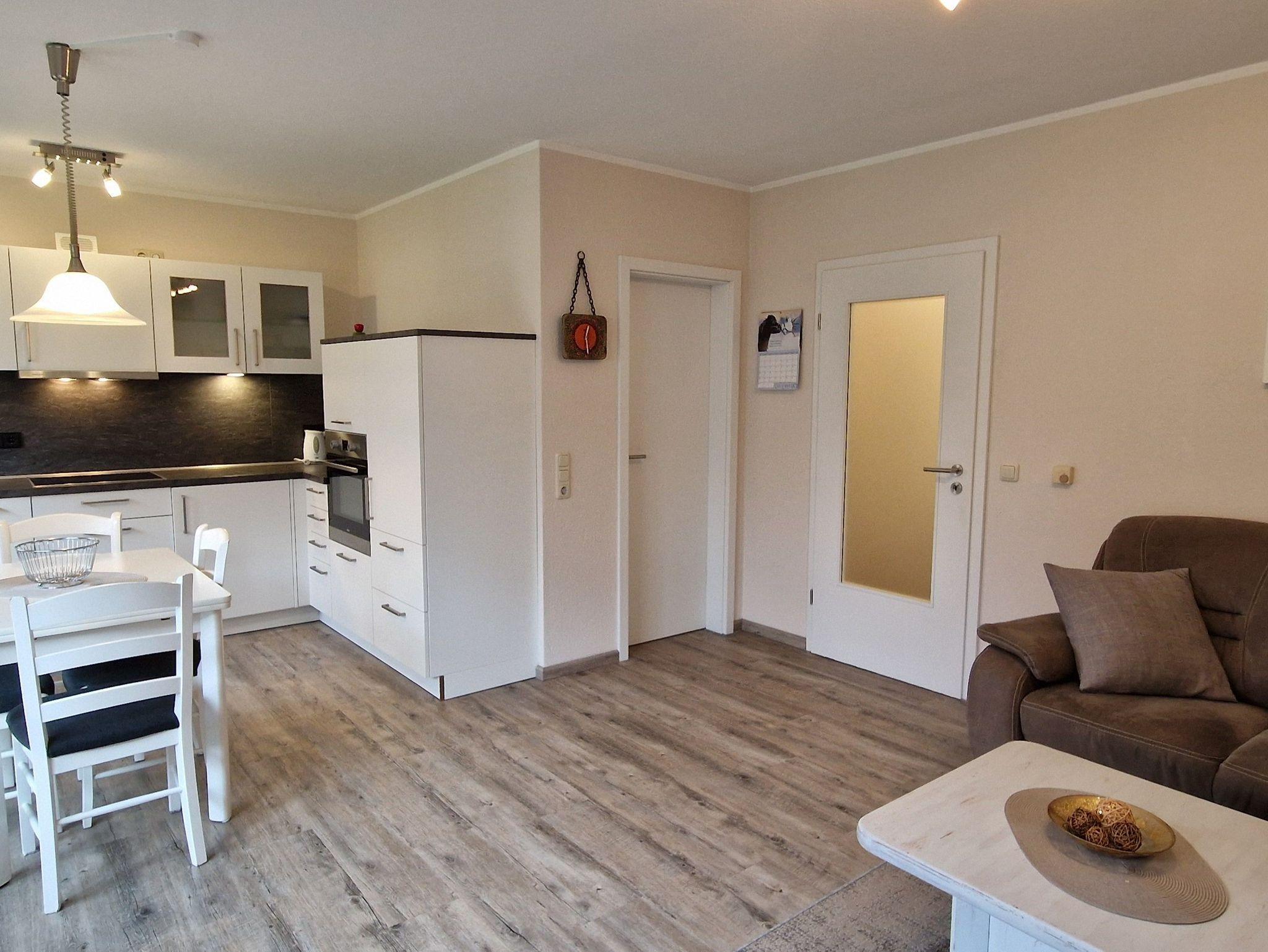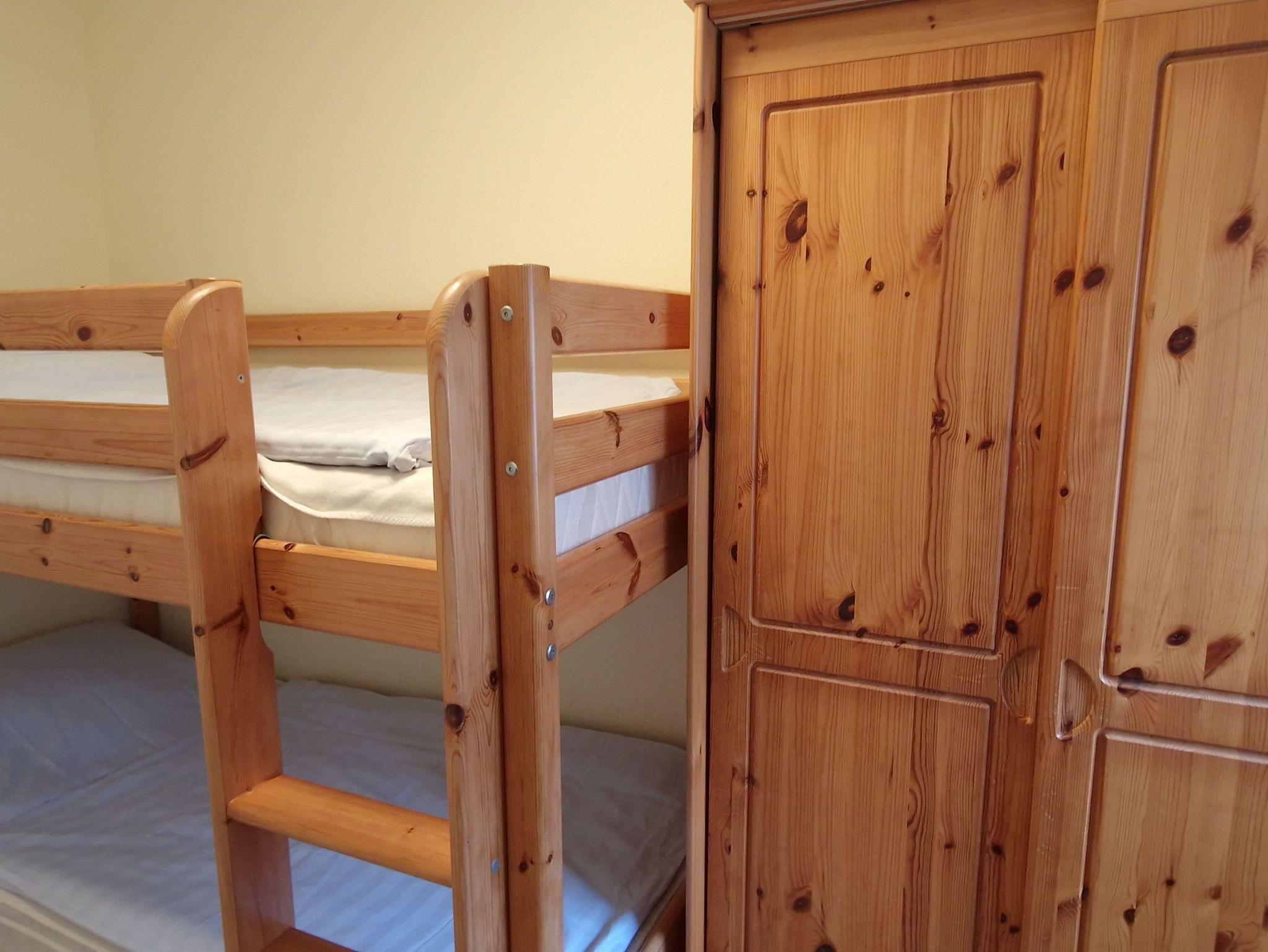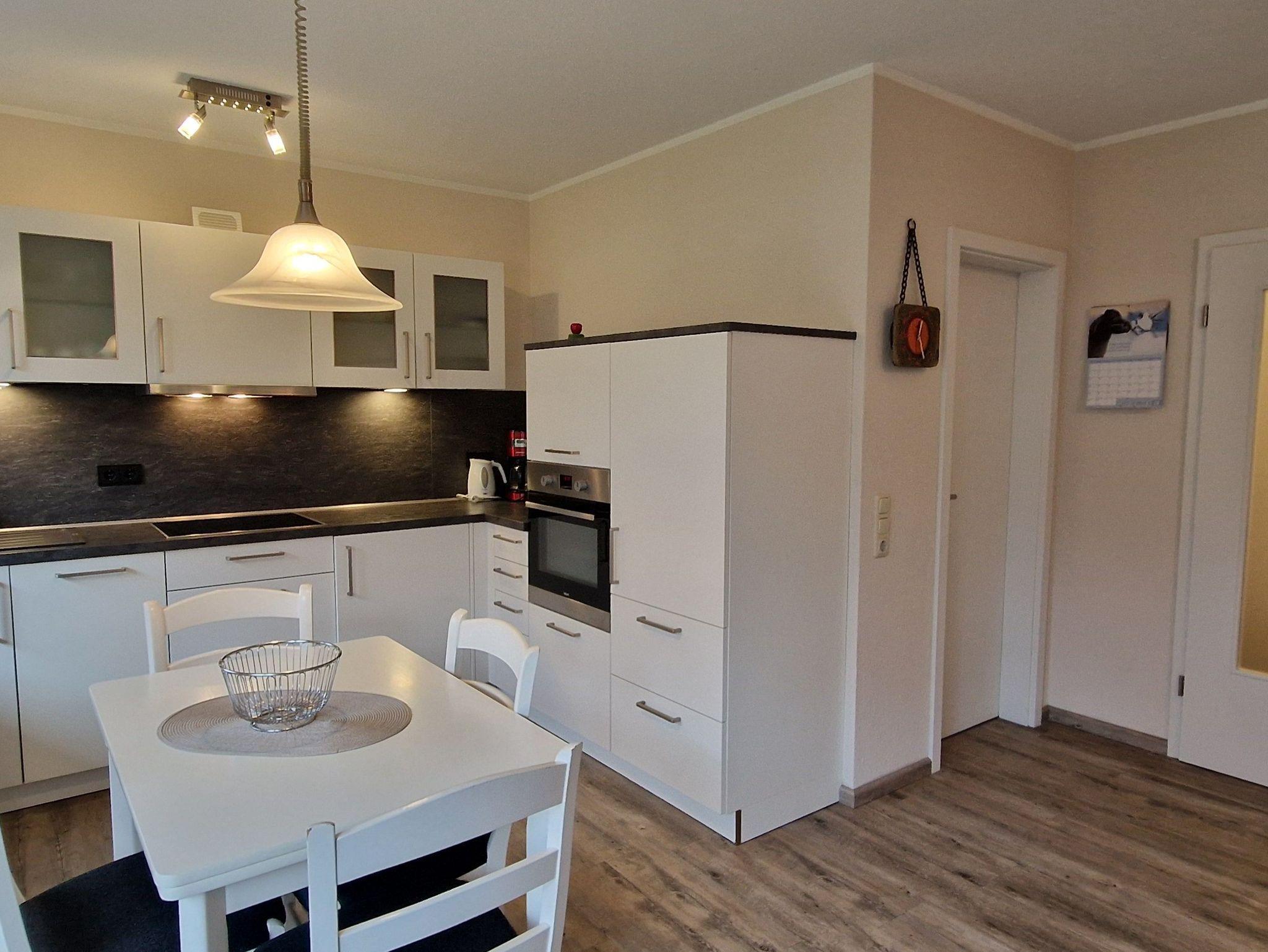 Die modernisierte Ferienwohnung bietet auf ca. 58m² Wohnfläche einen offenen Wohn- und Essbereich mit einer vollausgestatteten Küche. Darüber hinaus stehen Ihnen 2 Schlafzimmer (1 Schlafzimmer mit Doppelbett, 1 Schlafzimmer mit Etagenbett) sowie ein komfortables Badezimmer mit Dusche zur Verfügung. Die Fenster sind mit Rollläden, die Böden mit Vinyl bzw. Fliesen ausgestattet. WLAN steht Ihnen kostenfrei zur Verfügung.