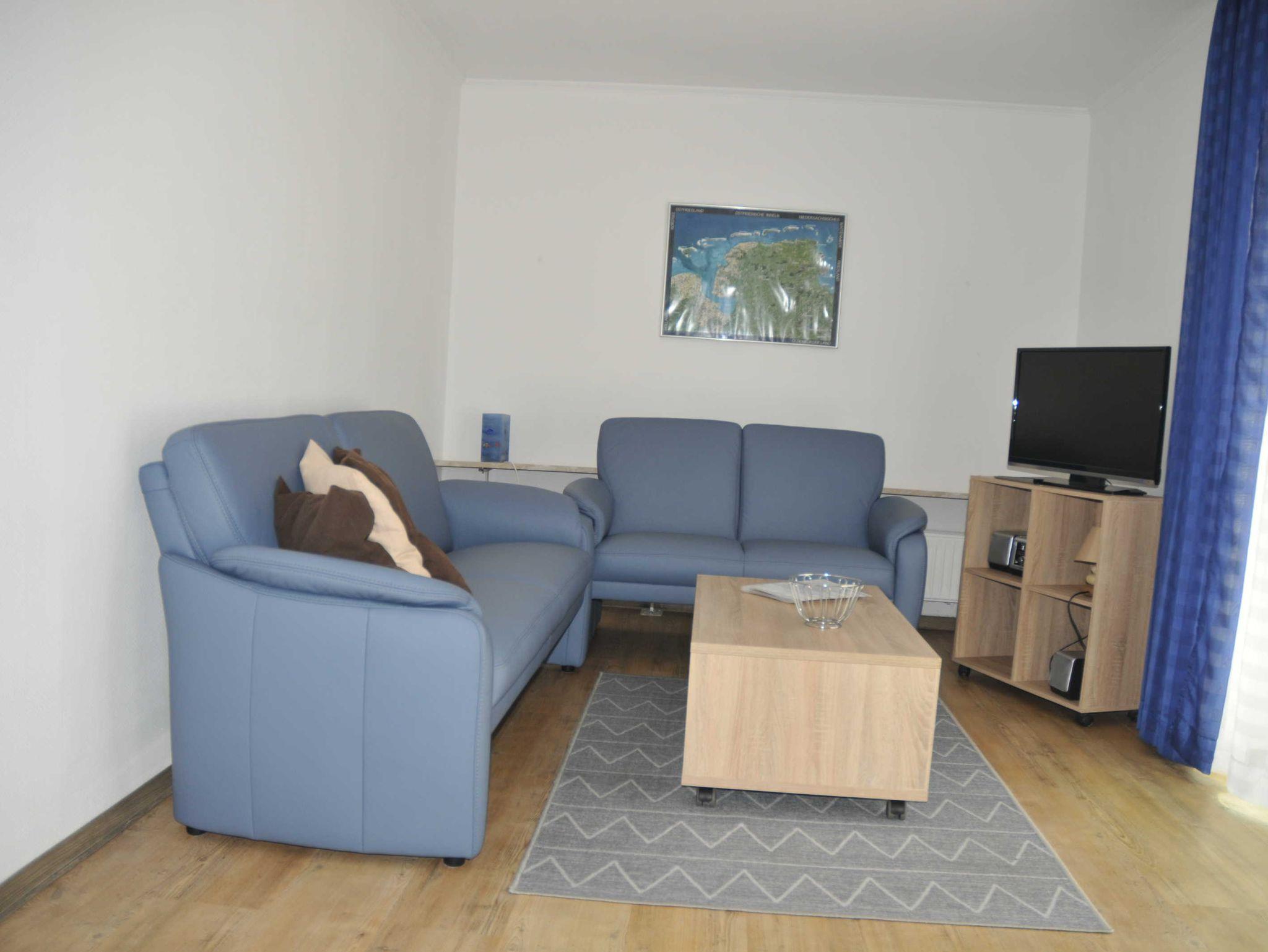 Große, gemütliche Erdgeschoss-Wohnung für 5 Personen, ca. 75 qm. Wohnzimmer mit Sat- TV, Ausgang zu einer windgeschützten, nicht einsehbaren Terrasse mit Gartenmöbeln. Ein Schlafzimmer mit Doppelbett und einem Einzelbett, ein Schlafzimmer mit Doppelbett und feststehendem Kinderbett. Große Küche mit Spülmaschine etc., Bad mit Dusche und WC, separate zweite Toilette. Am Strand wartet Ihr persönlicher Strandkorb auf Sie.