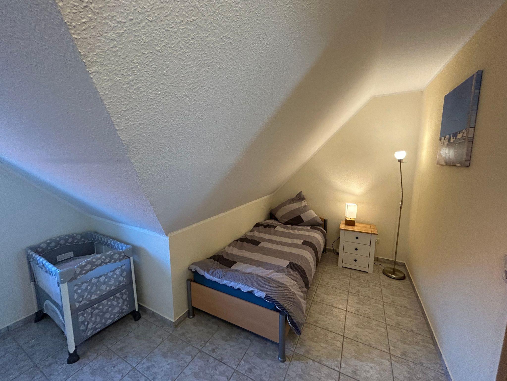 Neben einem geräumigen Wohn- und Essbereich, sowie einer vollausgestattenen Küche stehen Ihnen drei Schlafzimmer (1 Schlafzimmer mit Doppelbett und Zugang zum Balkon, 1 Schlafzimmer mit 2 Einzelbetten, 1 Schlafzimmer mit einem Einzelbett) zur Verfügung. Zudem ist ein Duschbad und ein Gäste-WC vorhanden.