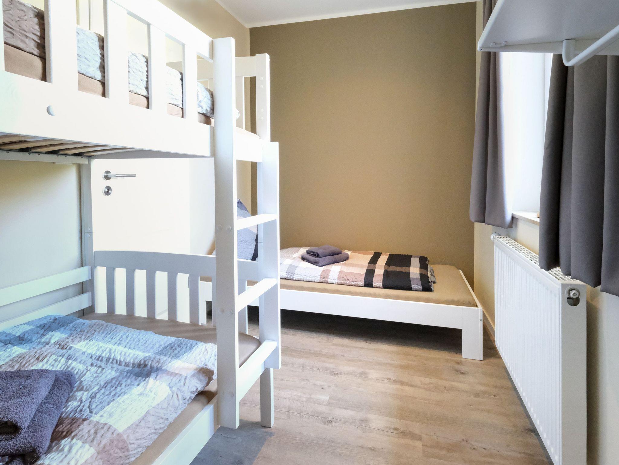 Das Elternschlafzimmer ist großzügig geschnitten und bietet Ihnen einen traumhaften Blick auf den Deich. Es ist mit einem Doppelbett (180x200) mit offenem Fußende ausgestattet. Im zweiten Schlafzimmer steht Ihnen ein Einzelbett und ein Etagenbett (je 90x200) zur Verfügung. Damit ist das Schlafzimmer für 2 Erwachsene oder 3 Kinder optimal ausgelegt. Beide Schlafzimmer verfügen über einen Wandschrank und Verdunklungsmöglichkeiten.