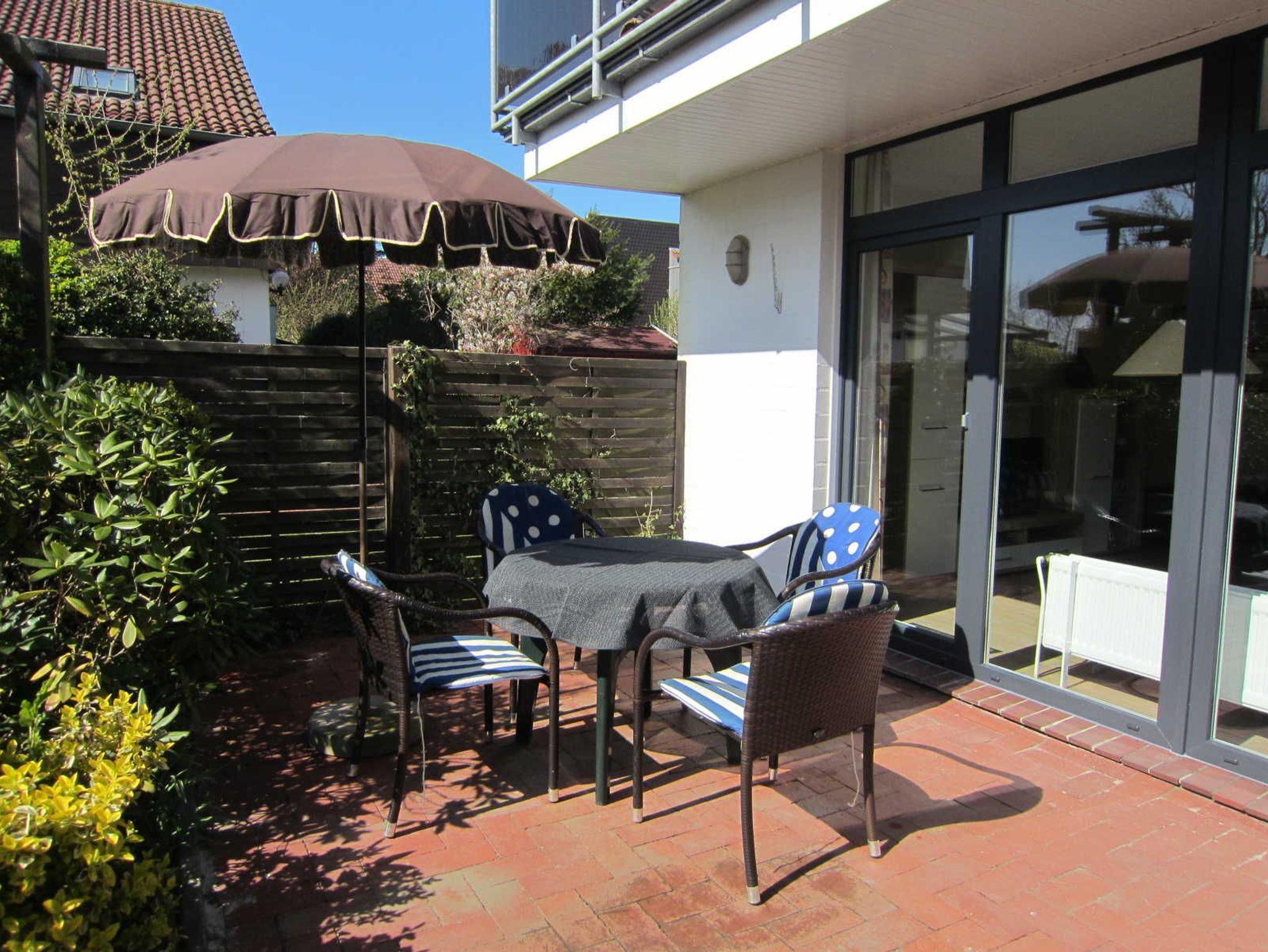 Die modern eingerichtete Wohnung ist ca. 45 qm groß, verfügt über einen separaten Schlafraum mit Doppelbett, einen Wohnraum mit Essbereich, eine Einbauküche und ein neues Duschbad. Es gibt eine schöne Terrasse in Süd-West-Lage und SAT-TV.
