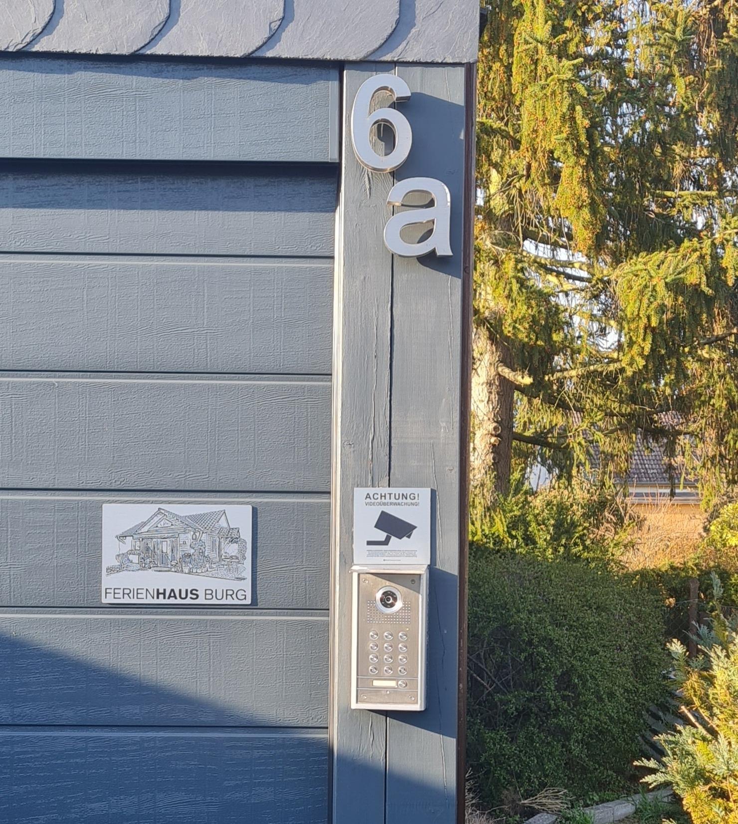 Der Wald in der Nähe lädt zum Spaziergang ein. Parkplätze befinden sich direkt vor dem Grundstück an der Straße. Motorräder können auf dem Grundstück geparkt werden. Der Zugang zum Ferienhaus ist ausschließlich durch das graue