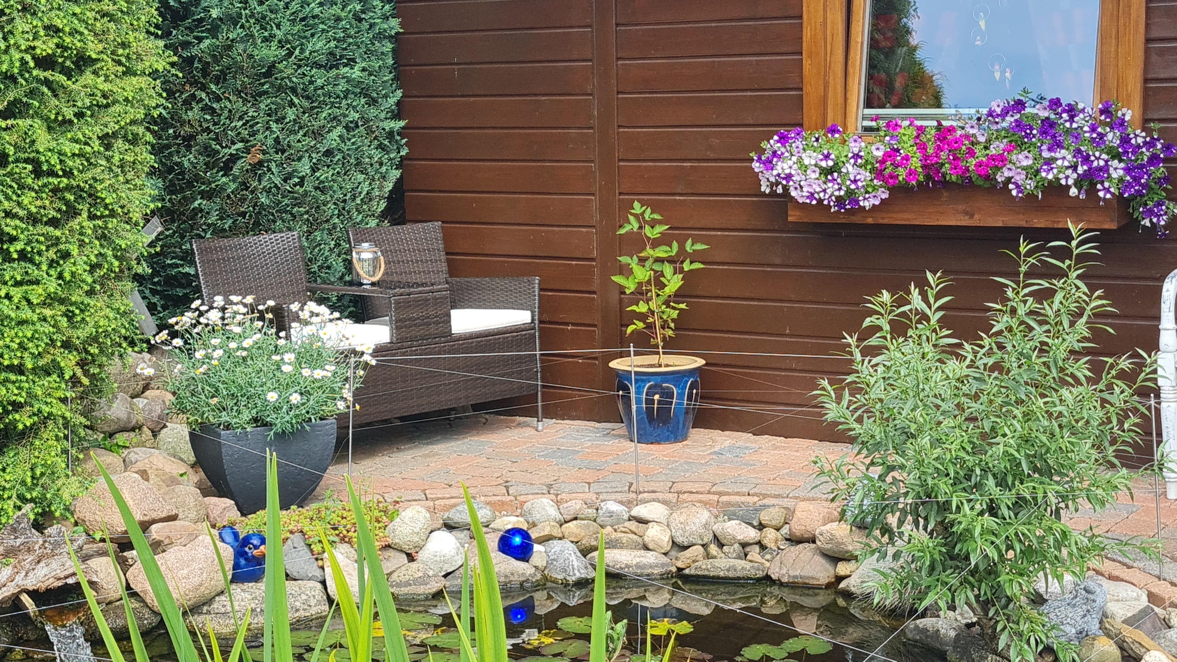 Verweilen Sie auf ihrer Terrasse, oder nutzen Sie die Möglichkeit entspannt am Teich zu sitzen