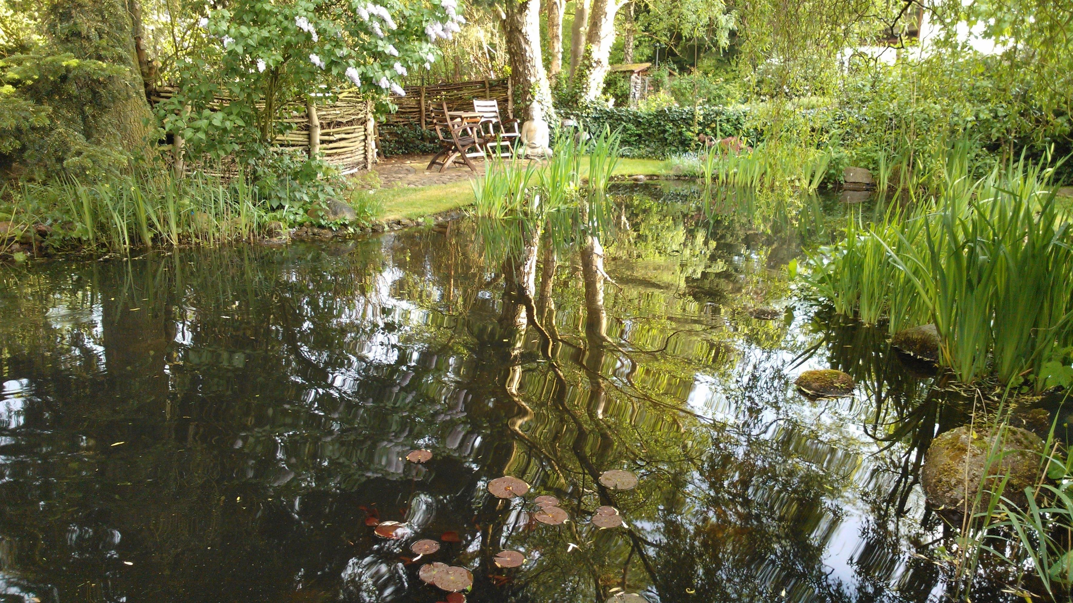 Unser Grundstück hat die unterschiedlichsten Sitzecken. Im Schatten der riesigen Kastanie im Innenhof, vor unserem "Privatzoo" können sie Hühnern, Enten und Kaninchen beim Leben zuschauen, Im Garten finden sie viel Sonne, auf dem Steg des Schwimmteiches ist die Wasserwelt zu bewundern und dann hat jedes Studio auch noch eine eigene kleine Terrasse.