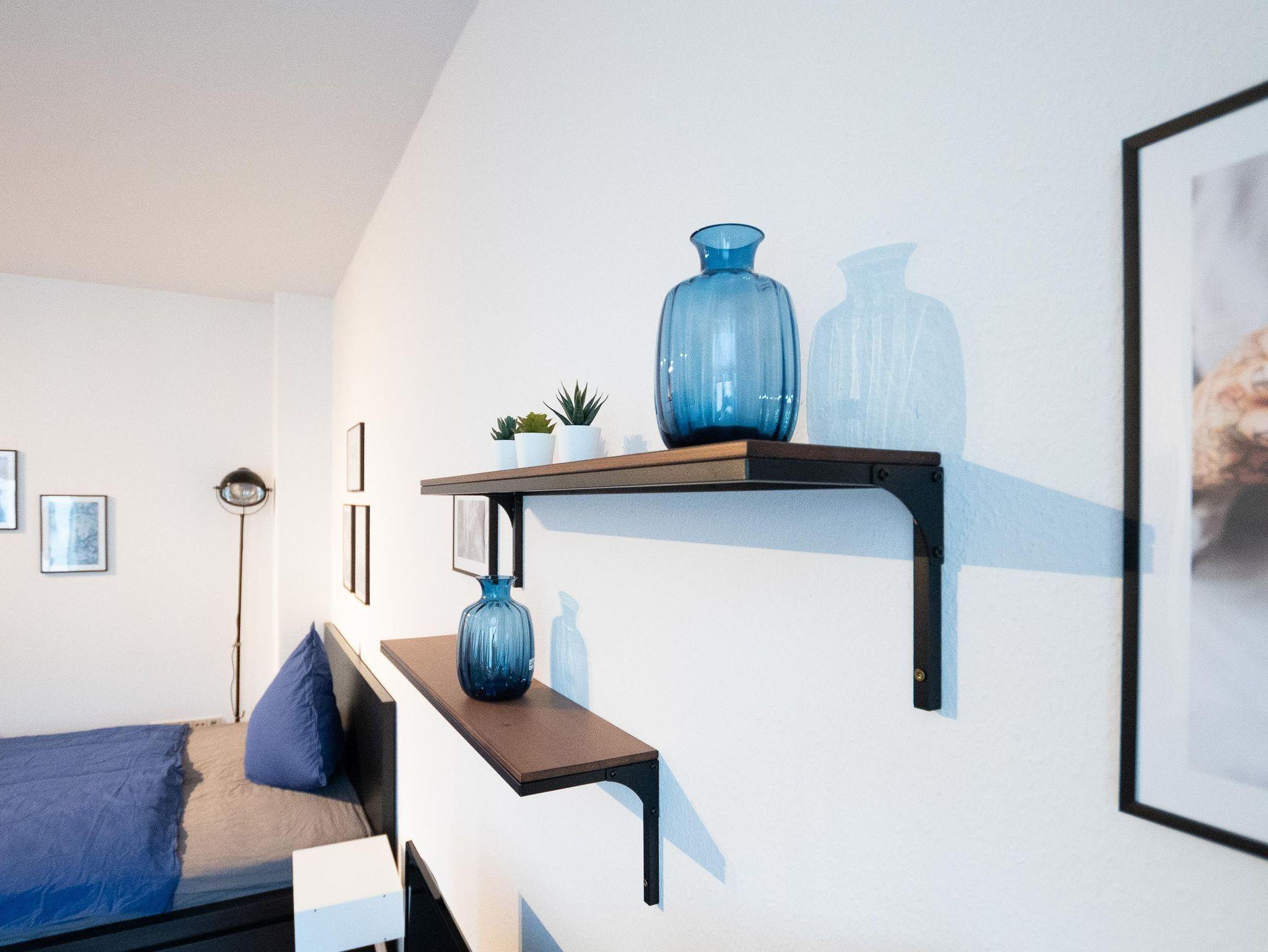 Die Ausstattung des Apartments umfasst ein gemütlichen Wohnzimmer mit Schlafbereich einen, Flachbild-TV, sowie einen Internetzugang via WLAN. Die offene Wohnküche ist mit einer Kaffeemaschine (Filter), einer Mikrowelle und einer Spülmaschine ausgestattet. Für längere Aufenthalte befinden sich auch ein Trockner und eine Waschmaschine in der Ferienunterkunft.