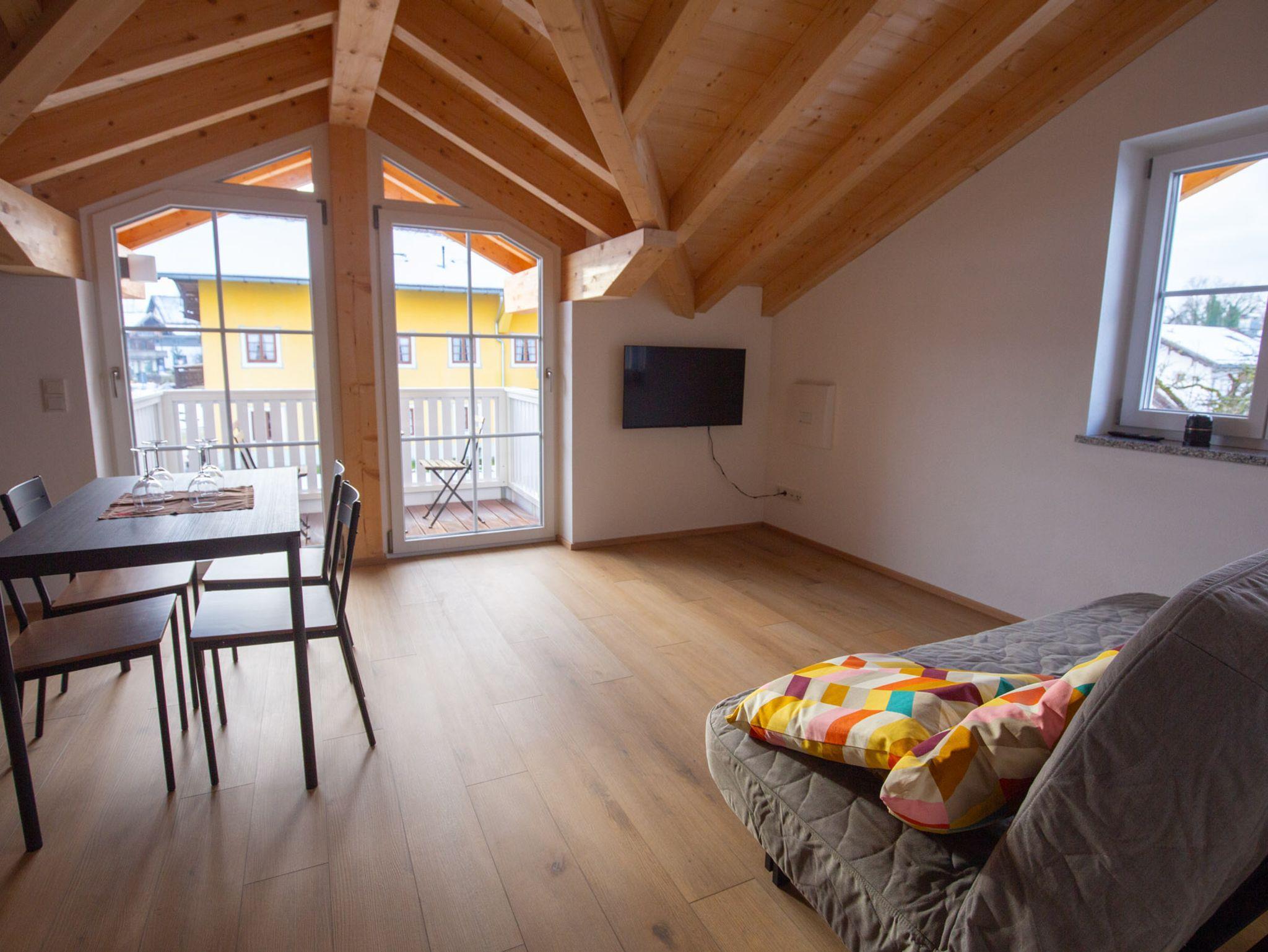 Die stilvoll eingerichtete Ferienwohnung liegt in einem im Jahr 2023 errichteten Neubau. Sie verfügt über ein Schlafzimmer mit Doppelbett, ein helles Tageslichtbad mit bodengleicher Dusche sowie einer großräumigen Wohnküche mit Ausziehcouch*, Flachbild-TV und gut ausgestatteter Küchenzeile inkl. Geschirrspüler, Backofen, Filterkaffeemaschine und Wasserkocher. Die Wohnküche bietet Zugang zu einem privaten möblierten Südbalkon.