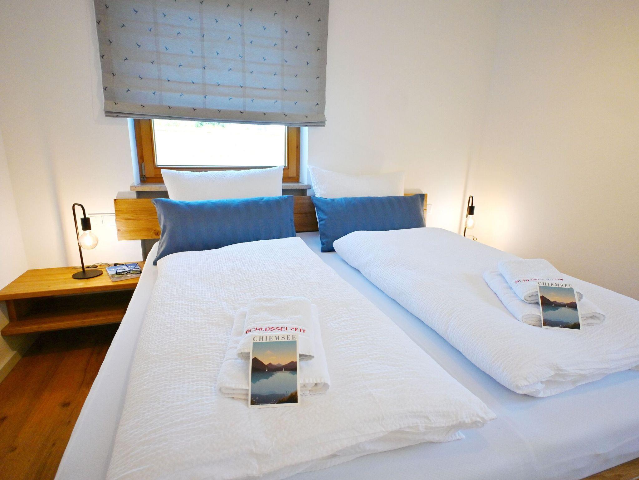 Genießen Sie entspannte Tage in einer stilvollen, hochwertig ausgestatteten Ferienwohnung mit dezentem Seeblick. Die Wohnung vereint traditionelle Gemütlichkeit mit moderner Technik und liegt nur wenige Gehminuten vom Chiemsee entfernt.