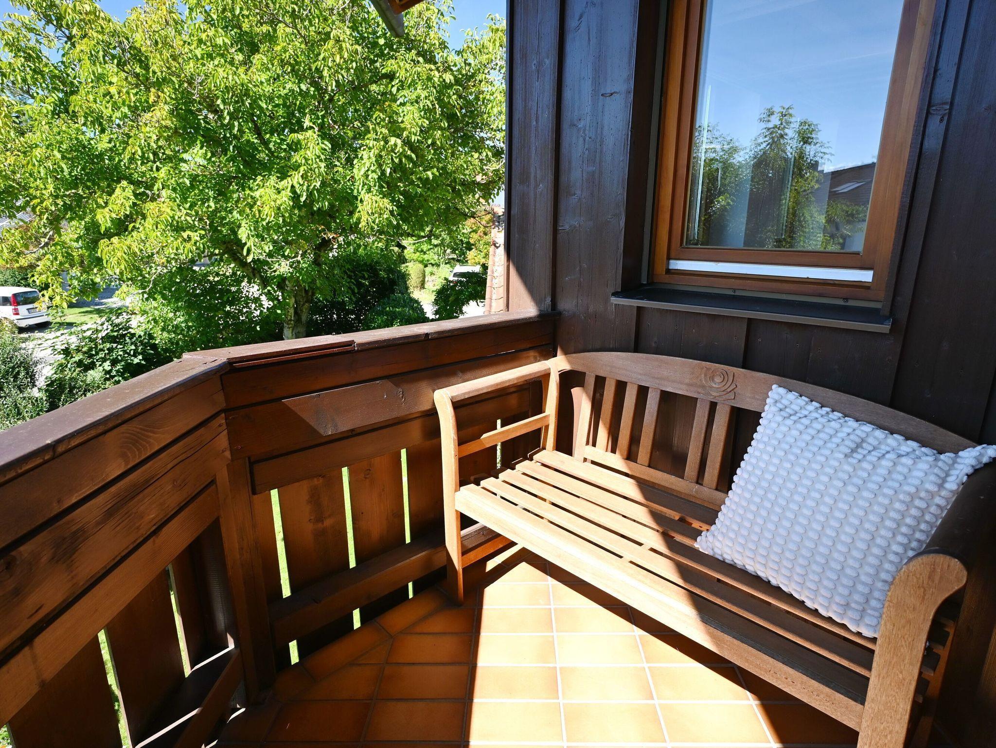 Balkon mit Sitzgelegenheit und leichtem Seeblick