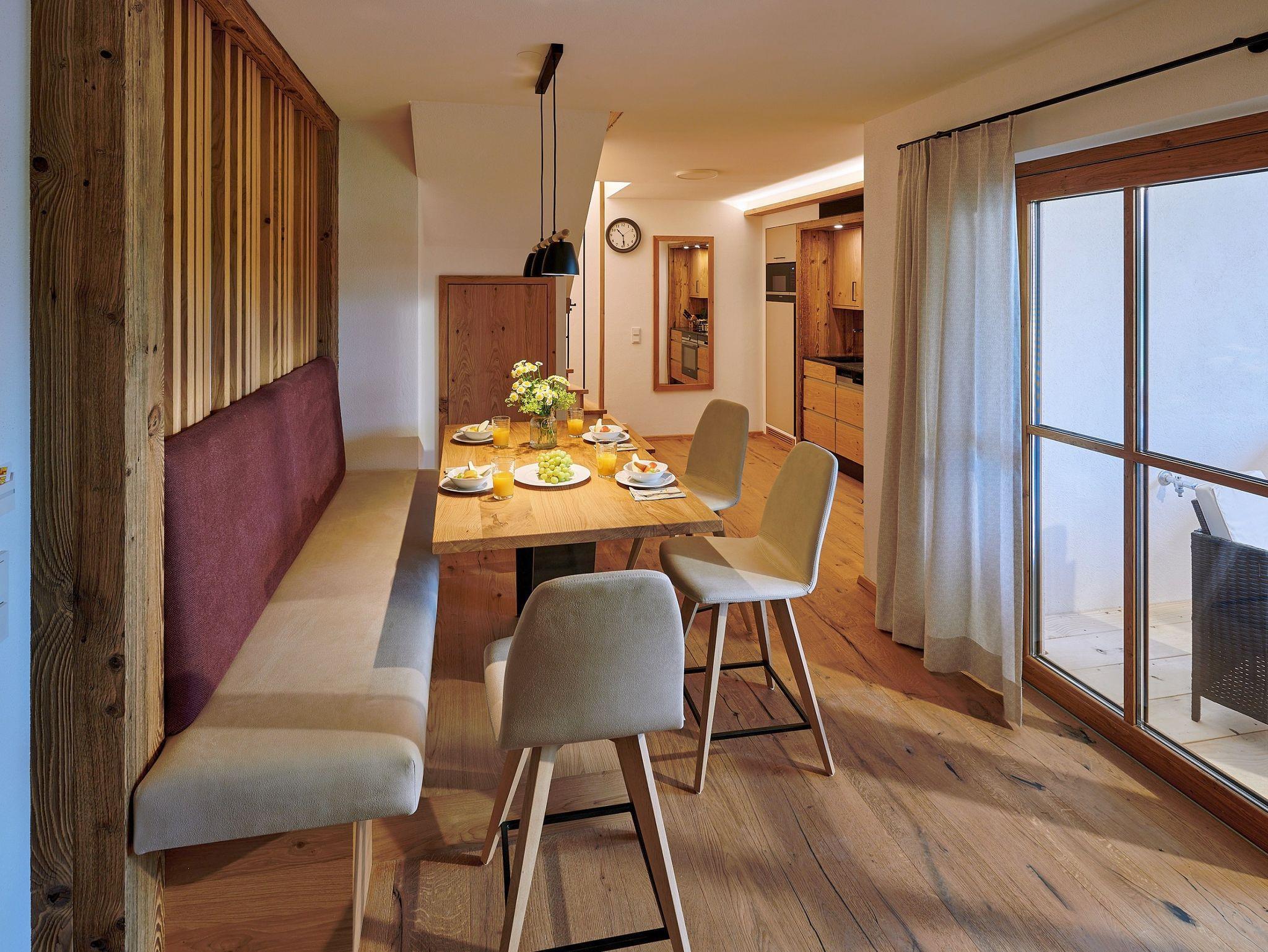 Ausreichend Platz finden Familien mit bis zu drei Kindern in der luxuriösen 5-Sterne-Ferienwohnung Hirschauer Bucht, die sich über zwei Etagen erstreckt. Harmonisch und liebevoll ausgestattet bis ins Detail besticht die Wohnung mit ihrem urig-rustikalen Flair. Zahlreiche durchdachte Lichtelemente und die Dachfenster im Obergeschoss sorgen für viel Licht und Wohlbefinden. Den luxuriösen Charakter rundet das aufwendig gestaltete Wellness-Badezimmer ab. Auf dem großen Ost-Balkon mit freiem Blick in die Landschaft stellt sich sofort echtes Urlaubsfeeling ein.