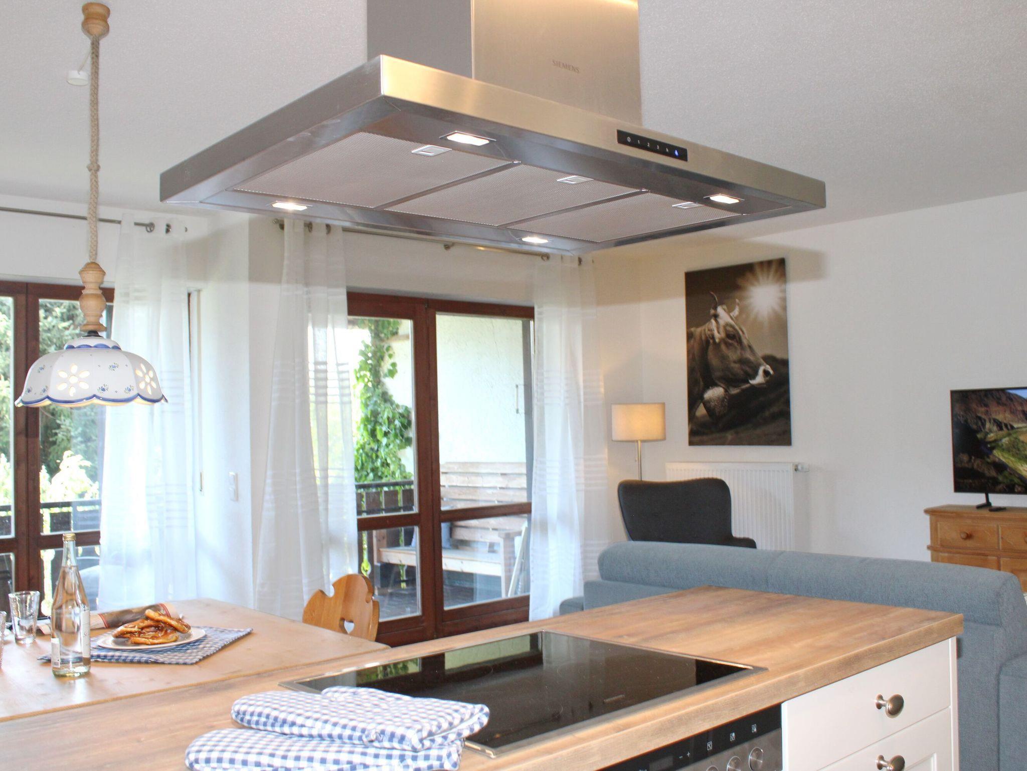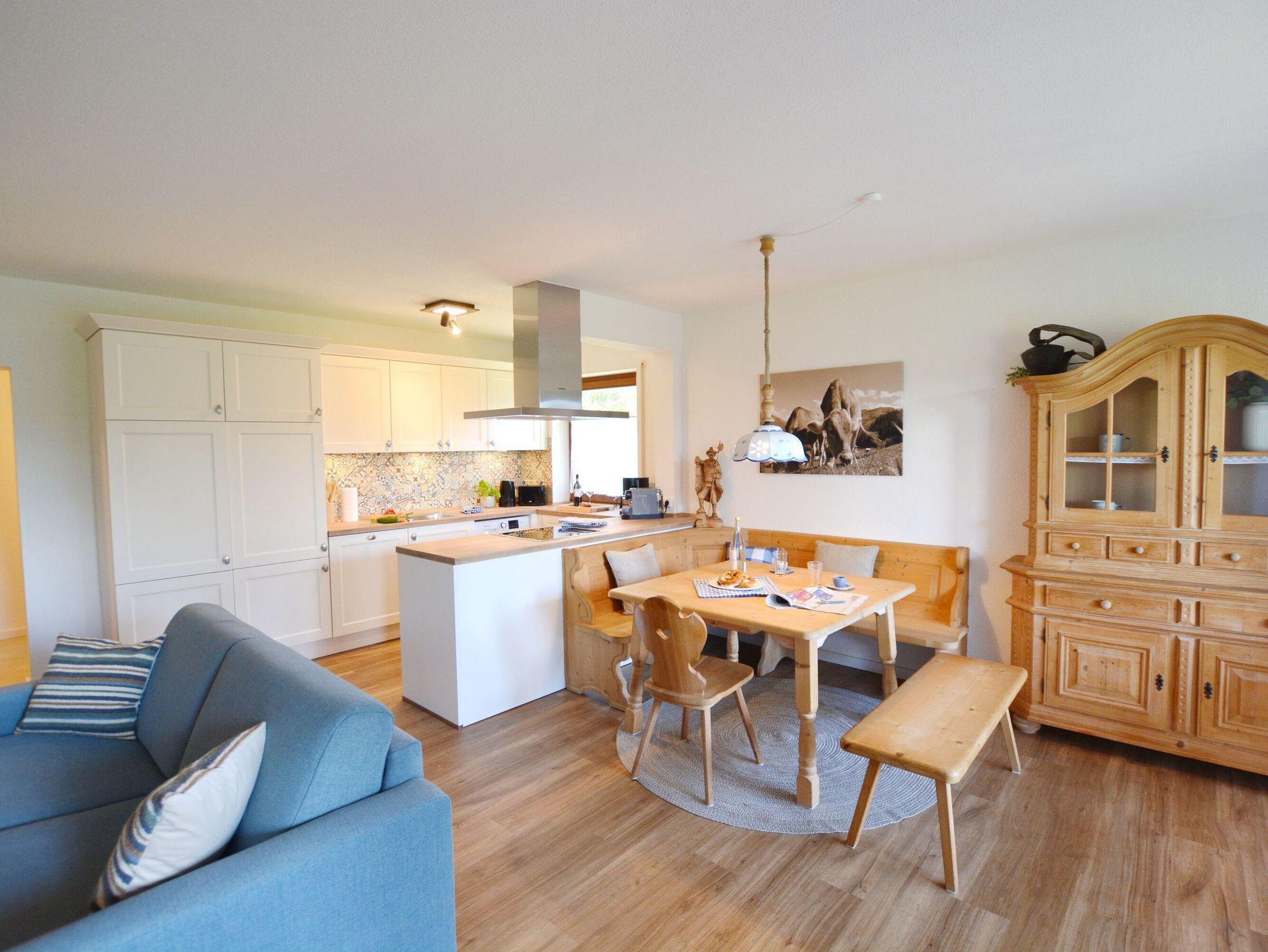 See [&] Bergliebe in Chieming bietet für 4 Personen Platz auf 59 m². Das Domizil wurde kürzlich renoviert und verfügt über charmante bayerische Details. Ob im Wohn- Essbereich mit offener Küche oder im Schlafzimmer, der bayerische Faden ist überall erkennbar. Besonders ansprechend ist die moderne offene Küche, die sich harmonisch in das Gesamtbild der Wohnung einfügt. Die Wohnung befindet sich im 1. Obergeschoss und bietet ein gemütliches Schlafzimmer sowie ein modernes Badezimmer mit Dusche und Badewanne. Als weitere Schlafgelegenheit steht das Schlafsofa mit echter Matratze im Wohnbereich zur Verfügung. Über den privaten großen Balkon gelangen Sie durch Stufen in den Garten, welcher von allen im Haus genutzt werden kann. Hier können Sie Ihre Urlaubszeit einfach nur genießen.