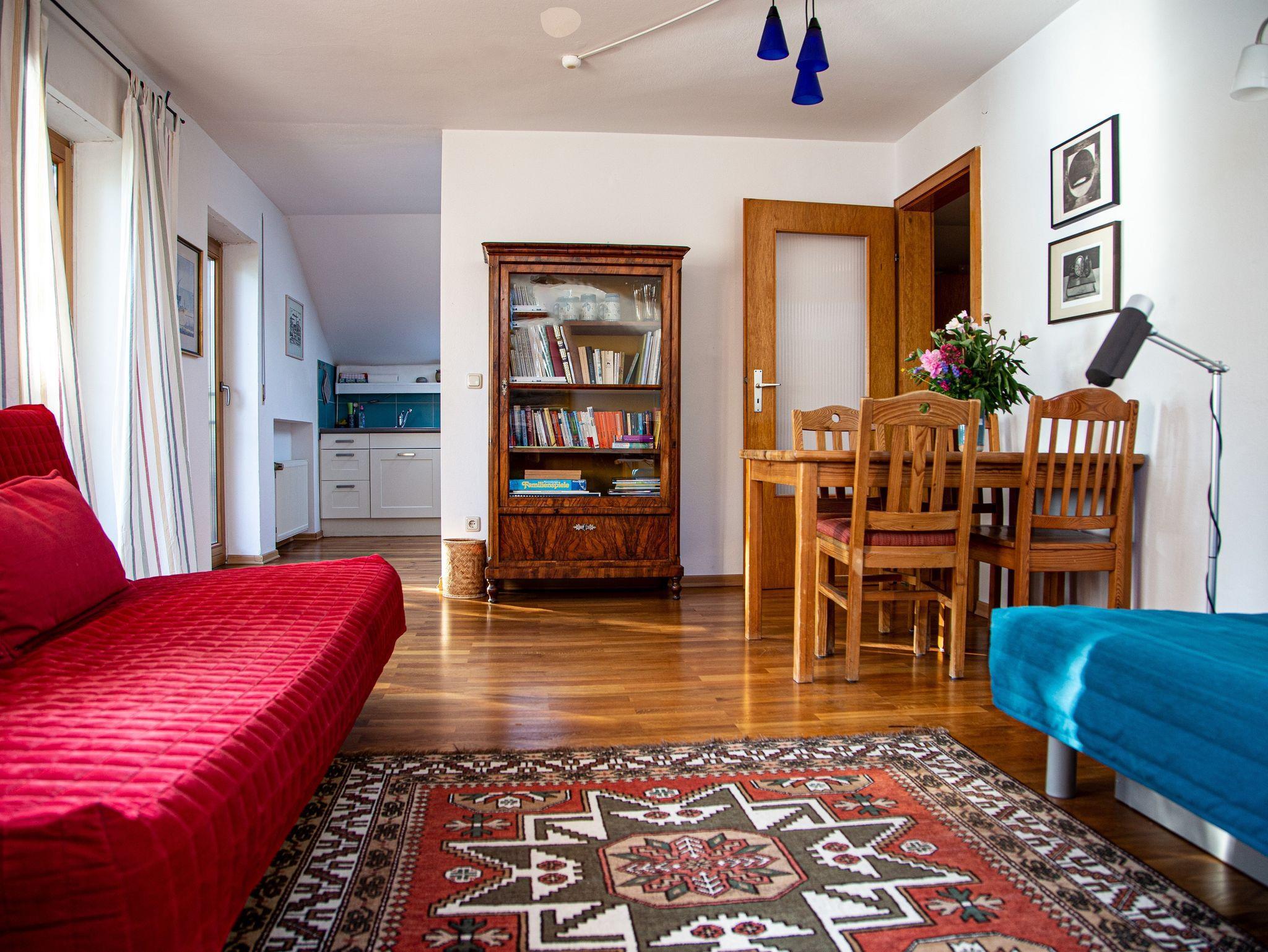 Direkt am See gelegen mit freiem Zugang zum Strandbad können Sie jeden Tag den Blick vom großen Südwest Balkon auf den Chiemsee und die Alpen genießen. Die 90m² Wohnung hat einen separaten Eingang. Wohnzimmer und Küche sind mit einem offenen Durchgang verbunden und in den 2 separaten Schlafzimmern finden sich einmal ein Doppelbett und einmal zwei Einzelbetten. Kinderbett und Hochstuhl können wir gerne auf Anfrage zur Verfügung stellen.