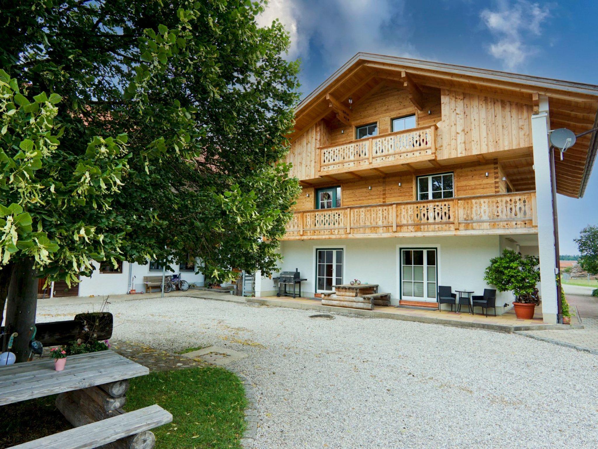 Unser renoviertes Bauernhaus mit Hof befindet sich in absoluter Alleinlage mitten von grünen Wiesen, fernab von Straßenverkehr mit viel Platz. Sie können die Ruhe der Natur genießen, während die Kinder sich am hauseigenen Spielplatz vergnügen. Ob Trampolin Sandkasten, Schaukel, großer Fuhrpark, Kicker oder Tischtennisplatte laden bei uns zum Toben und Entdecken ein. Ihren Kindern wird nicht langweilig werden, währen sie sich auf Terasse, Balkon oder einer Liege im Garten vom Alltagsstress erholen. Unsere Alpakas, Hasen, Meerschweinchen und Hühner freuen sich schon auf ausgiebige Streicheleinheiten und das ein oder andere Leckerchen!Wir haben Alpakas. Gerne machen wir mit Ihnen eine Wanderung durch die Natur, in der man die Ruhe der Alpakas und der schönen Natur erfahren kann. Wer etwas Abwechslung braucht kann fährt zum 3km entfernten Chiemsee Strand zum Baden und Sonnen oder fährt mit der Chiemseeschifffahrt auf die Inseln im Bayerischen Meer. Auch hier warten tolle Sehenswürdigkeiten darauf entdeckt zu werden. Radfahren, Wandern, Freizeitparks, durch Altstadtgassen schlendern oder wilde Schlauchbootfahrten erleben / Erholung und Erlebnisse finden Sie in unserer Umgebung genug!