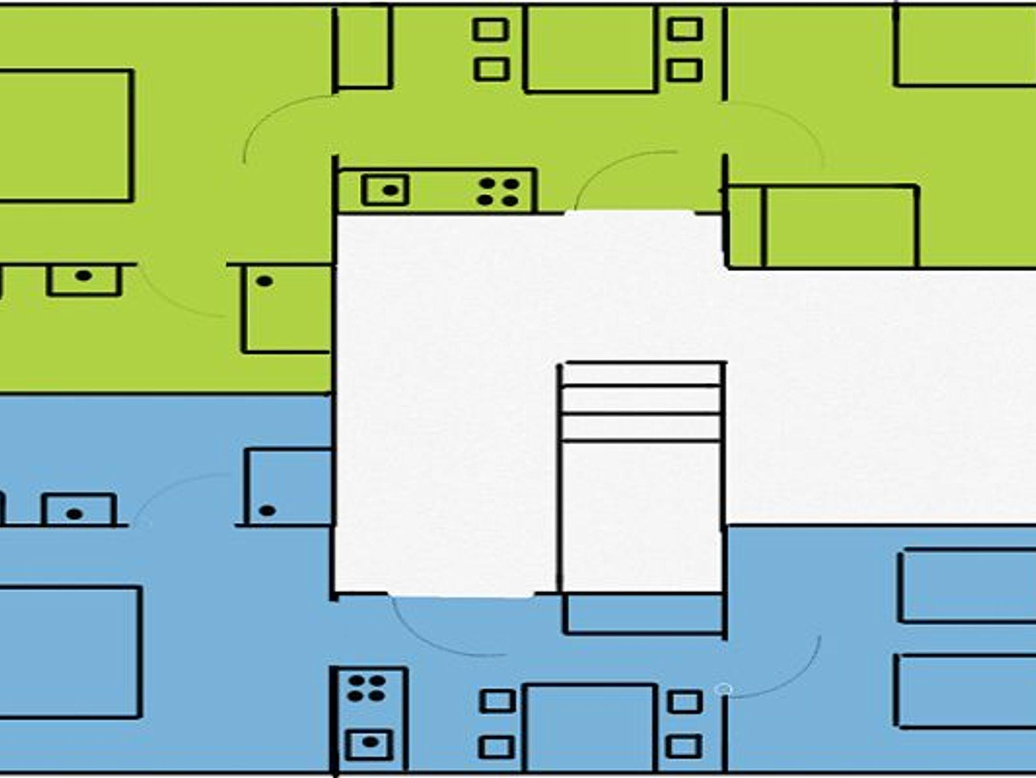 Beide Wohnungen haben jeweils zwei Schlafzimmer, eine Küche und ein Duschbad. Die Wohnungen sind gleich groß und haben jeweils 50m² an Wohnfläche. Die Wohnungen sind geräumig und hell.