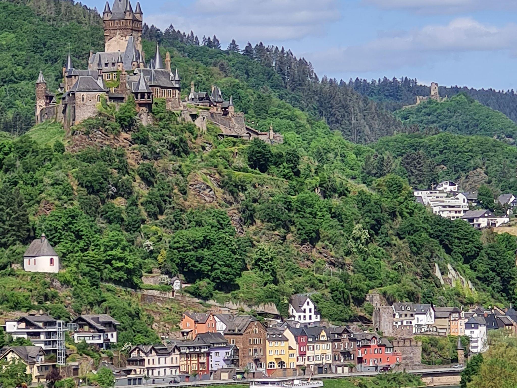 12 komfortable ***Ferienwohnungen, Wohn-Essraum mit komplett ausgestatteten Küchenzeilen (mit Spülmaschine), 1 , 2 oder 3 separate Schlafzimmer. Ruhige, idyllische Lage mit herrlichem Panoramablick auf Cochem und die Mosellandschaft, aber trotzdem stadtnah und optimaler Ausgangspunkt für Wanderungen im nahe gelegenen Wald. Freizeitraum mit Tischkicker, Billard und Tischtennis sowie eine Sauna.