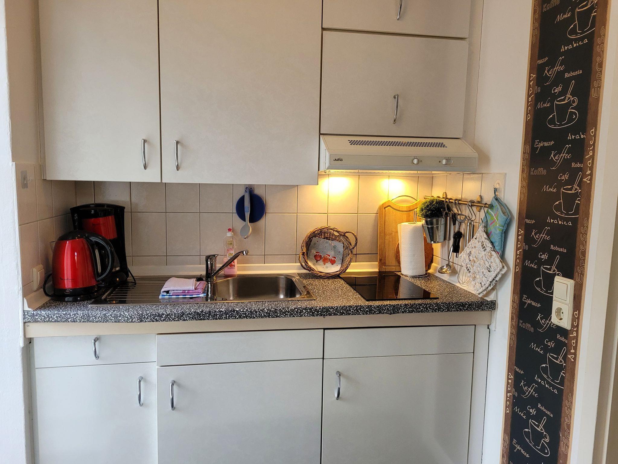 Das Wohn-/Schlafzimmer ist geschmackvoll eingerichtet. Eine Küche mit Kochmöglichkeit und ein Kühlschrank gehören ebenfalls zur Ausstattung. Das Bad ist mit Dusche, WC und einem Fön ausgestattet. Desweiteren ist auch ein Flachbildfernseher in dem schönen Appartement vorhanden.