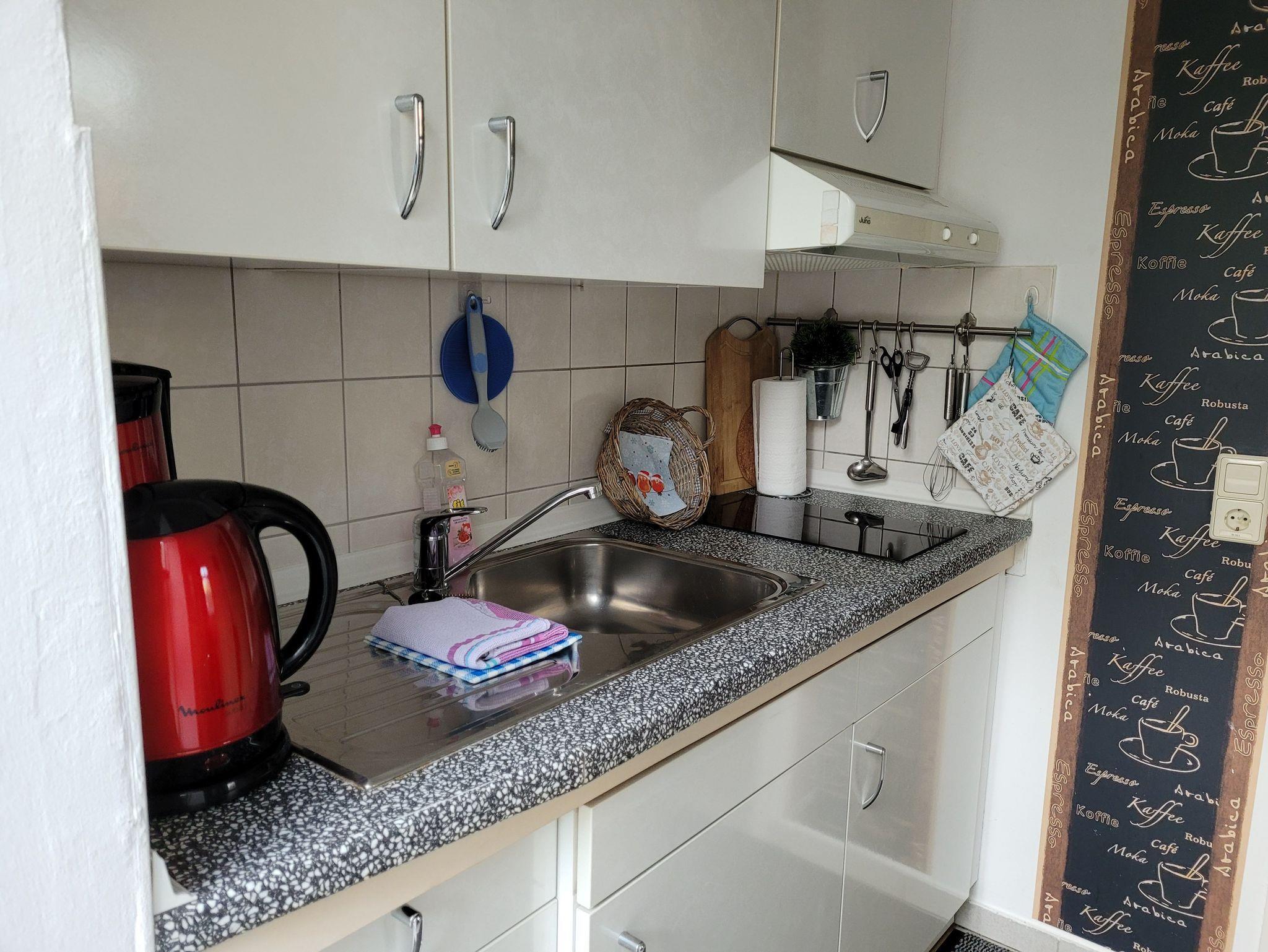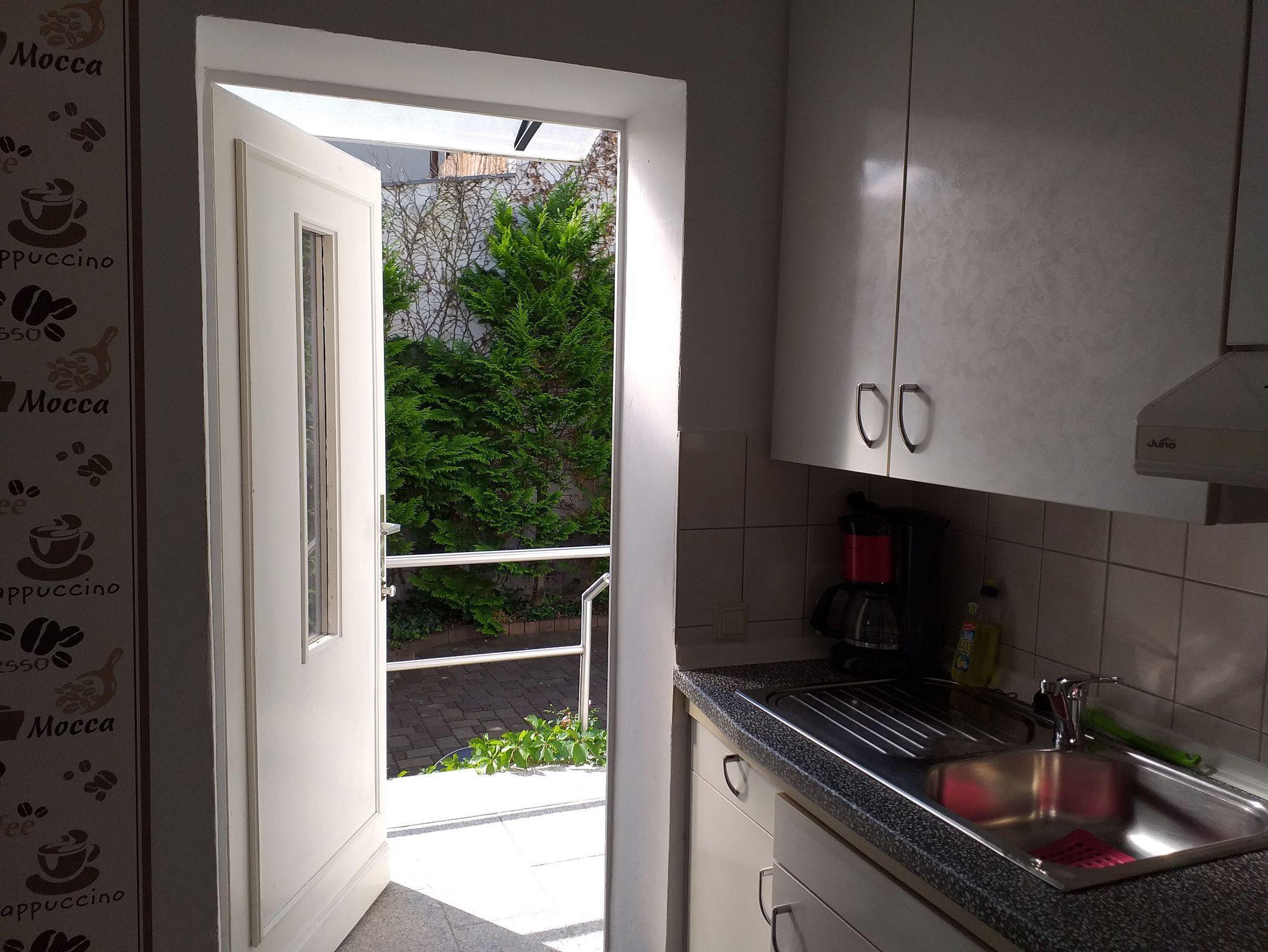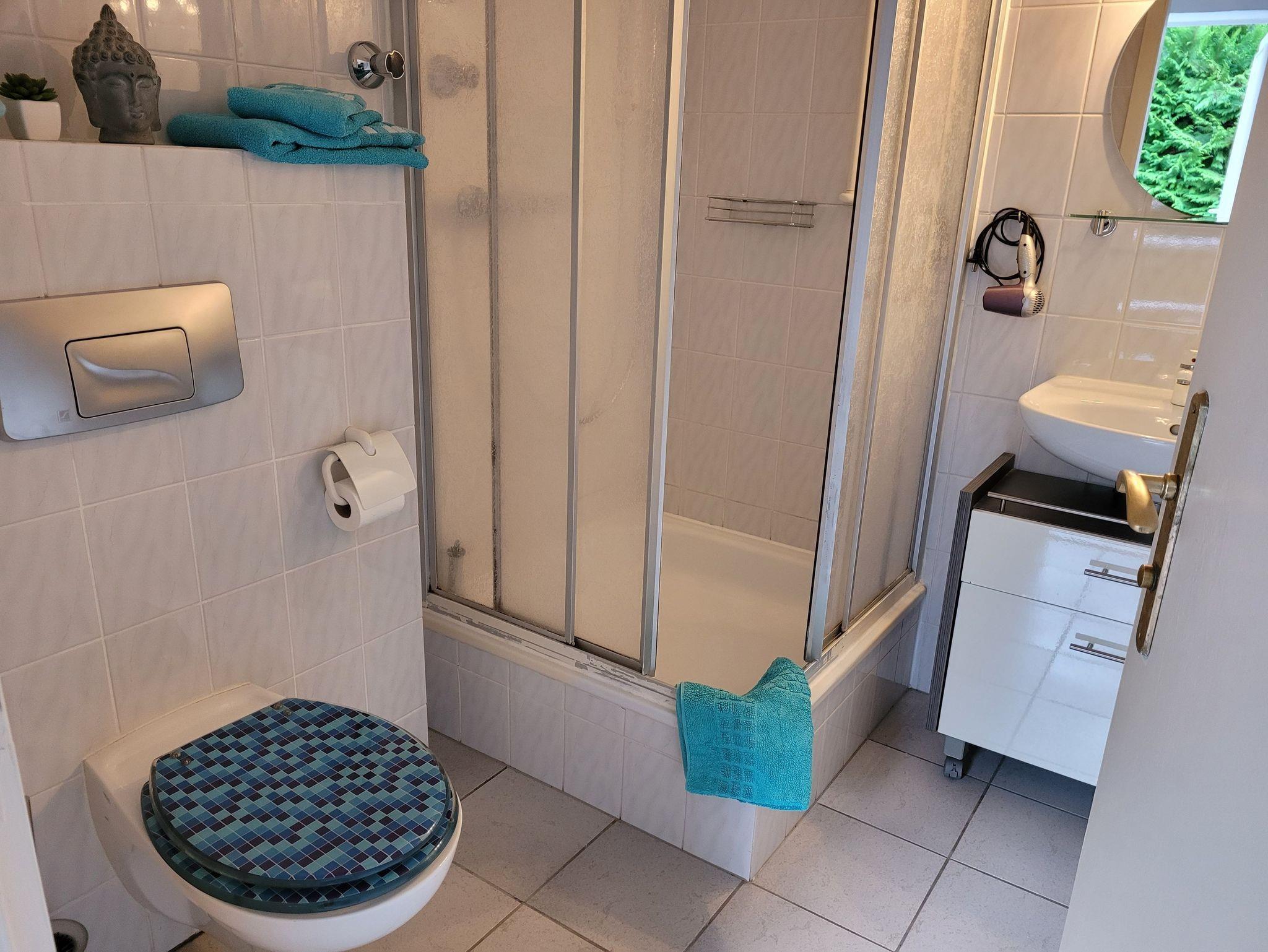 Kleine Ferienwohnung mit separatem Eingang im Hof, als Doppelzimmer oder Einzelzimmer, mit WC und Dusche im Bad.