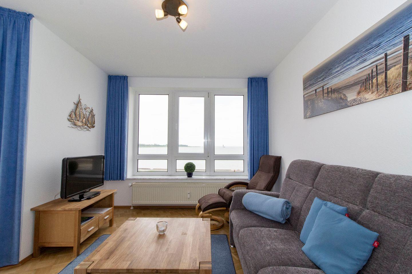Maritime Urlaubsstimmung pur – damit punktet diese 65 m² große Ferienwohnung in der 3. Etage eines modernen Hauses in direkter Lage an der Nordsee in Cuxhaven. Das Highlight der elegant eingerichteten FeWo ist der wunderschöne Ausblick auf den Weltschifffahrtsweg Elbe. Durch die großen Fenster sowie den großzügigen Balkon kann diese Aussicht jederzeit genossen werden. Mit Platz für bis zu 2 Personen eignet sich das zu Hause auf Zeit für Paare oder Singles, inklusive kostenlosem W-Lan Zugang.