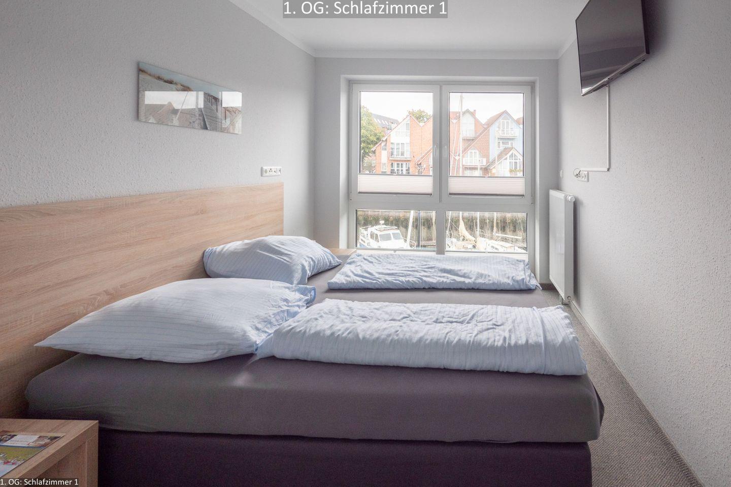 Haus "Marina", Typ 1, Nr. 22-C, 2 bis 6 Pers., EG - 2. Etage, Lage am Yachthafen, ca. 102 qm Wohnfläche auf 3 Etagen, im Erdgeschoß offene Küche mit Backofen, 4-Platten-Ceranfeld und Geschirrspüler, Wohnzimmer mit Flachbild-TV, Zugang vom WZ auf die Terrasse, Gäste-WC, 1. OG: 2 sep. Schlafzimmer jeweils mit Doppelbett, 2mal sep. Bad mit Dusche und WC, Waschmaschine im Abstellraum, 2. OG: Schlafzimmer mit Doppelbett und Dachterrasse, 2. Flachbild-TV, Nichtraucher, Haustiere sind nicht erlaubt, Außenstellplatz vor dem Haus, 2.ter Stellplatz in der Nähe, Abstellraum für Fahrräder geeignet vor dem Haus.