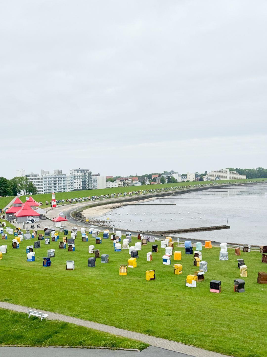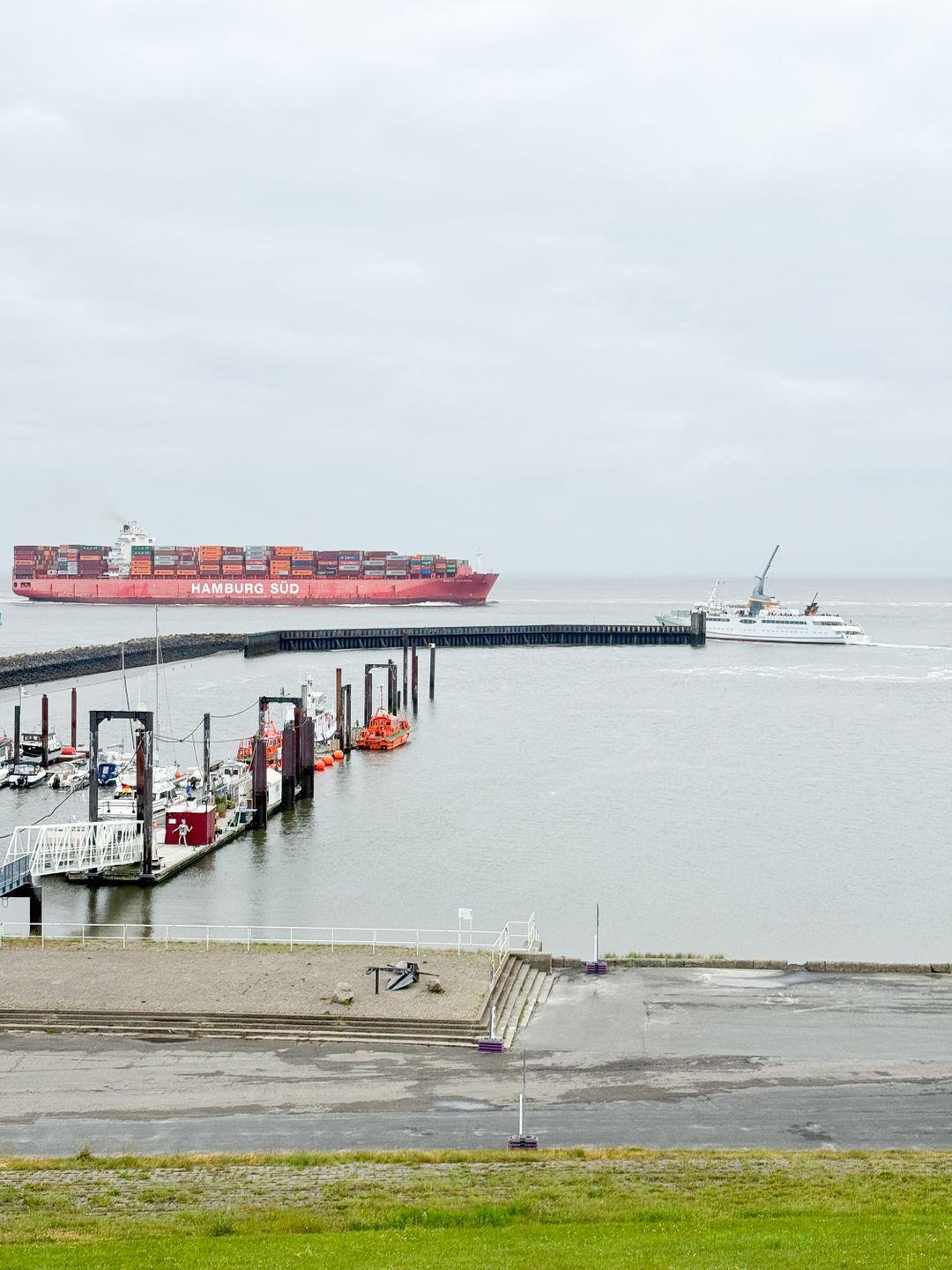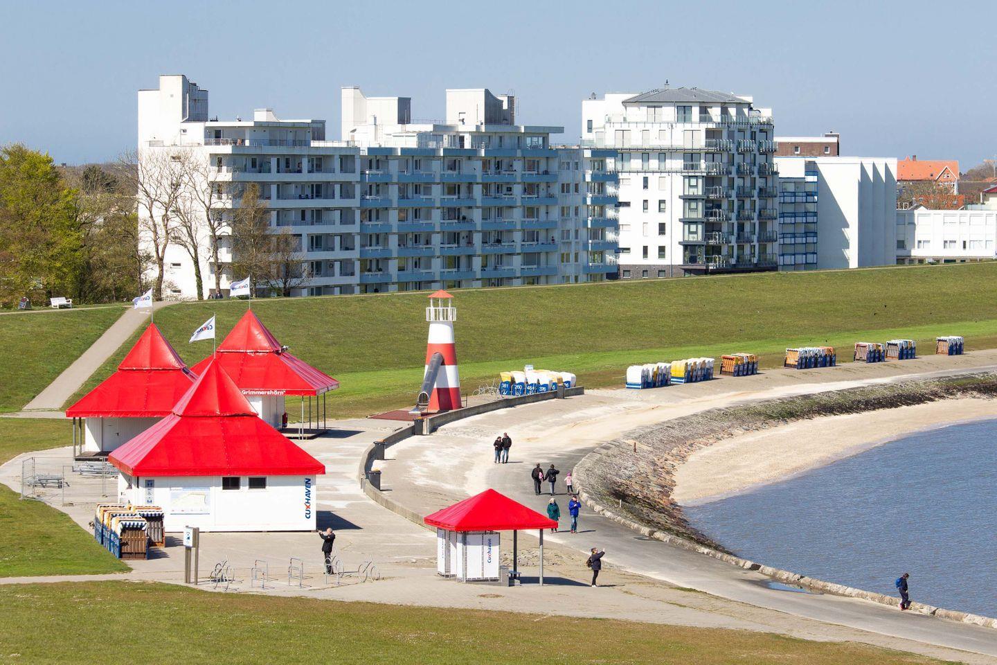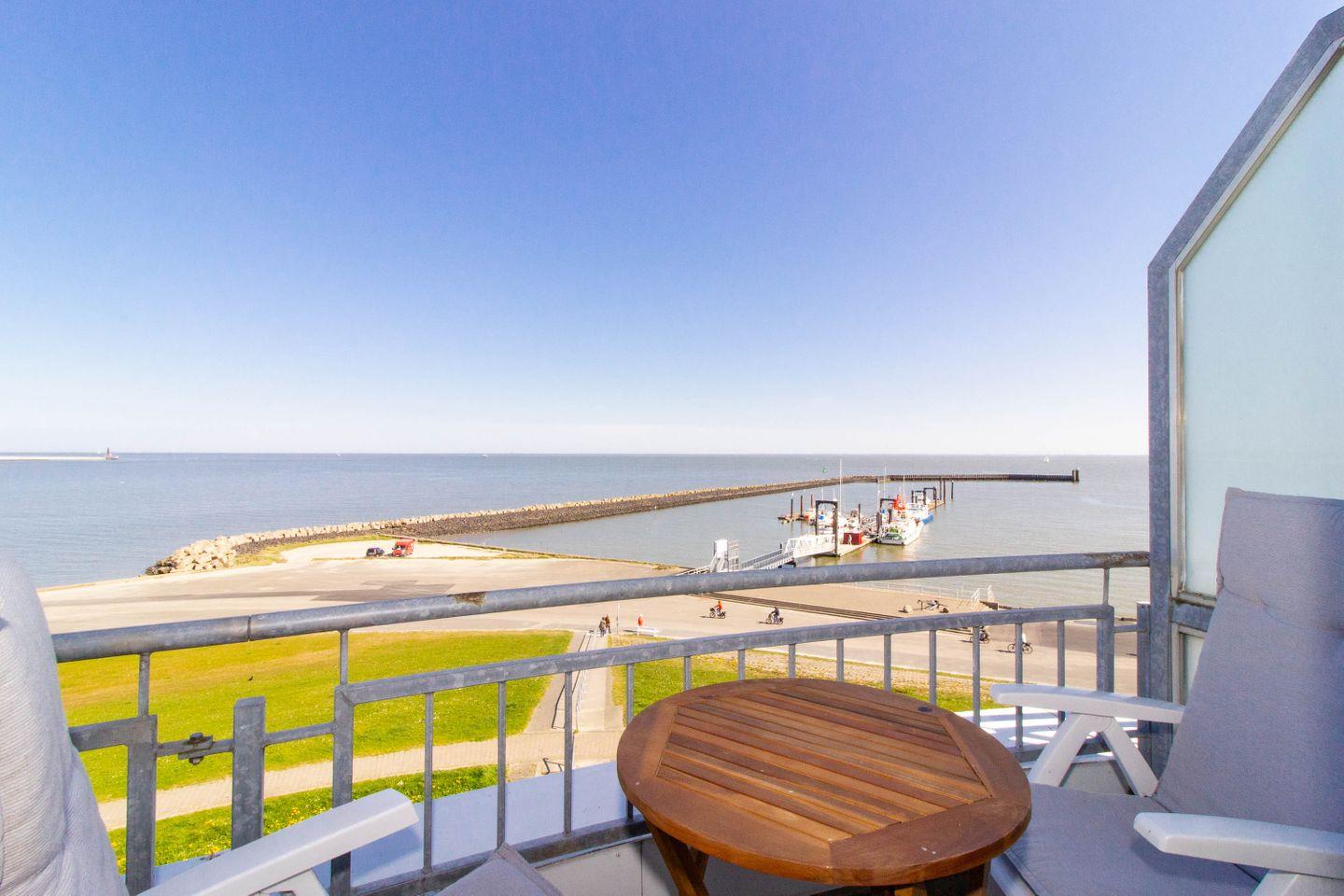 Mit Blick auf das Meer aus der 3. Etage starten unsere Gäste in dieser Ferienwohnung in jeden Urlaubstag. Die FeWo in Cuxhaven punktet mit eleganter, schlichter Einrichtung, zentraler Lage und Wohlfühlambiente. Auf ca. 76 m² finden bis zu 2 Urlaubsgäste Platz, optimal für Paare oder Singles. Das Haus ‚Seeterrassen’ befindet sich direkt an der Nordsee. Von hier aus blicken Sie auf zahlreiche Schiffe und eine grüne Wiese voller Strandkörbe. Das ist Urlaub in Cuxhaven.