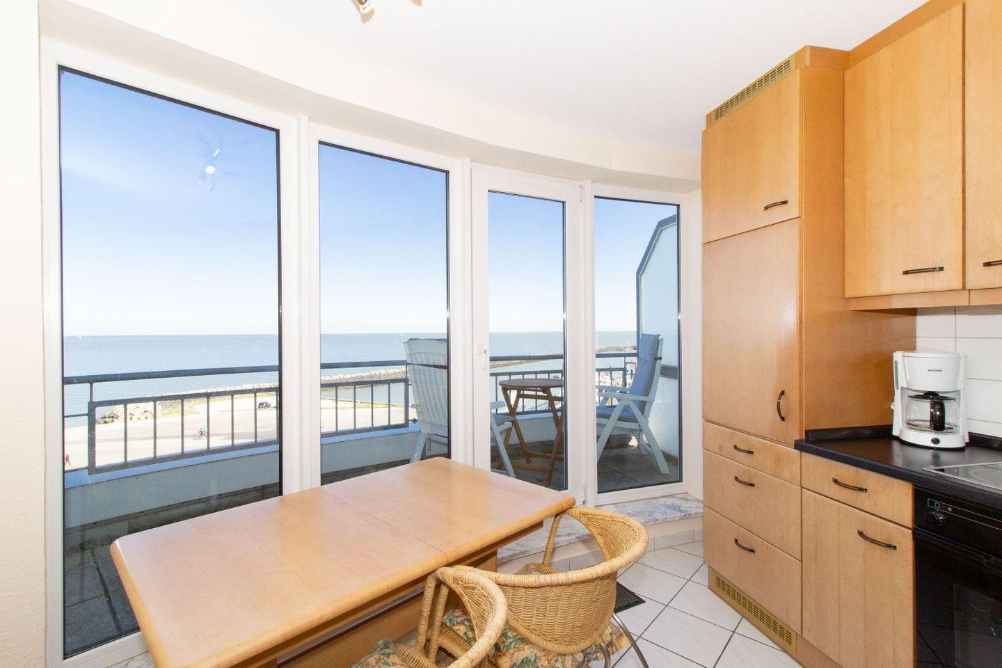 Haus "Seeterrassen", Typ B, Whg. Nr. 34, Eingang 38, bis 2 Personen, 3. Etage, ca. 76 m², direkte Seesicht auf den Weltschifffahrtsweg, Wohnbereich, sep. Schlafzimmer mit Doppelbett, Dusche/WC, sep. Küche mit Geschirrspüler, 4-Platten-Ceranfeld und Backofen, Kabel-TV, WLAN mit eigenem Router, Balkon, eigener Außenstellplatz, Haustiere sind nicht erlaubt, Nichtraucherwohnung.