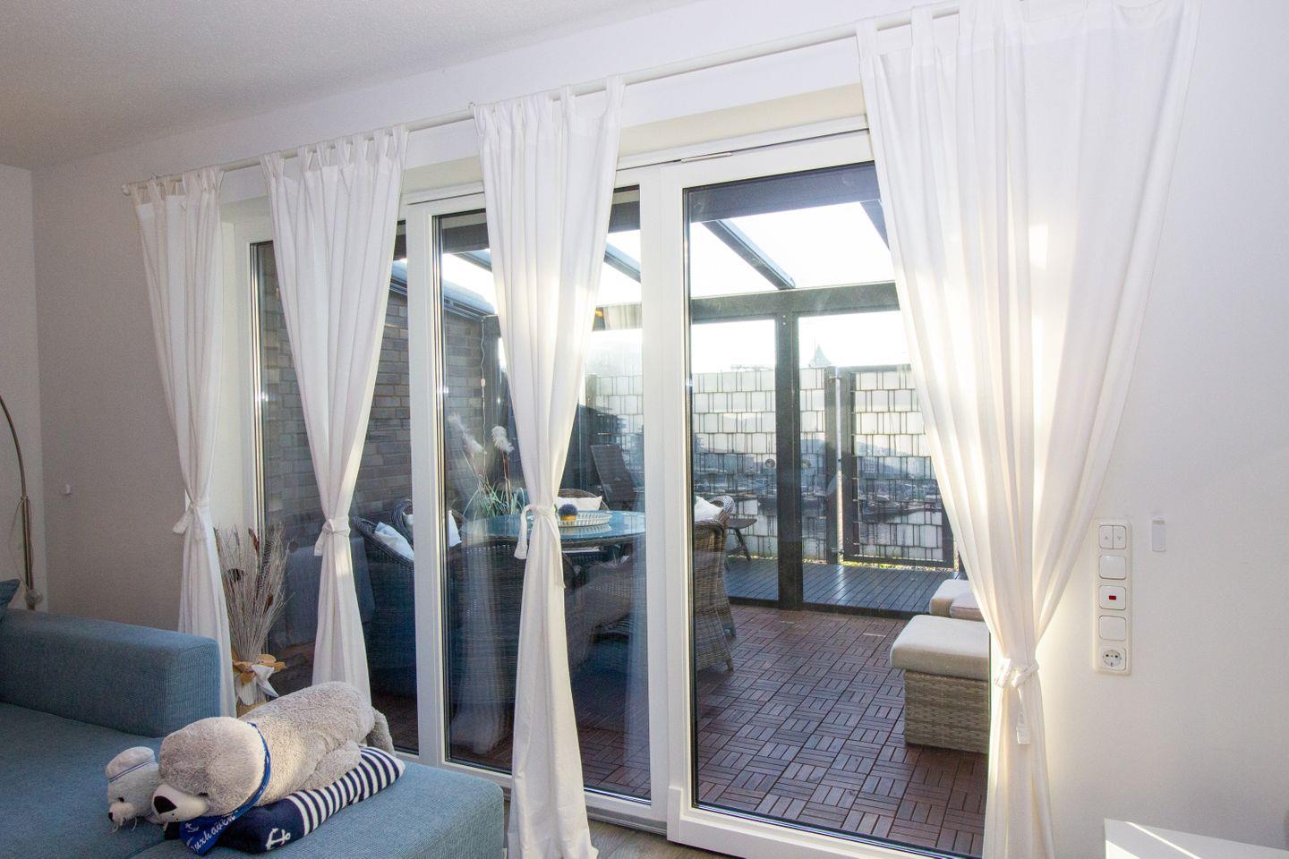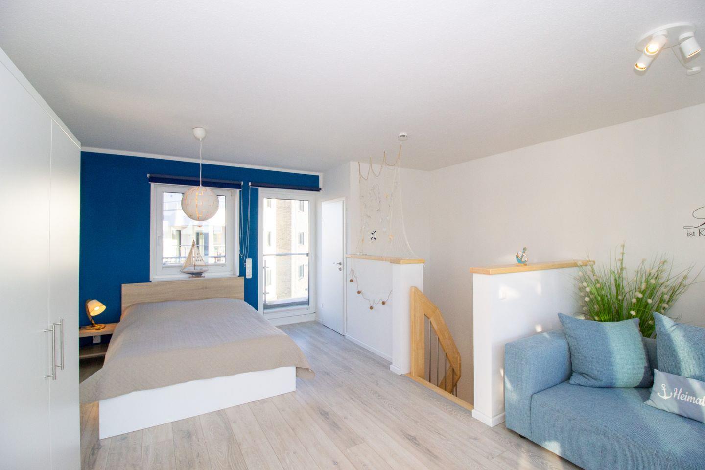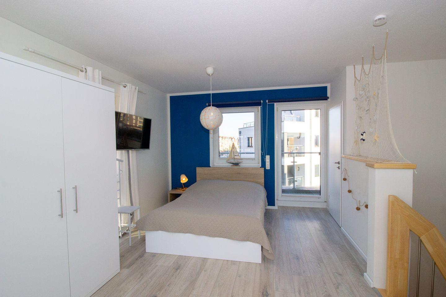 Haus "Marina", Nr. 16, 2 bis 6 Personen, EG - 2. Etage, Lage im Yachthafen, ca. 121 qm Wohnfläche auf 3 Etagen. EG: Gäste WC, offene Küche mit Backofen, 4-Platten-Ceranfeld, Mikrowelle, Geschirrspüler und Kühlschrank mit Gefrierfach, Wohn- und Essbereich mit Ecksofa, Flachbild-TV, Playstation, Blue-ray-Player und W-lan, Wintergarten mit Sonnenschutz, Terrassenmöblen für bis zu 6 Personen und Strandkorb, Terrasse (süd) mit Liegestühlen und Sichtschutz. 1.OG: 1 Schlafzimmer mit Doppelbett (2x 0,90 m x 2,00 m), Flachbild-TV, 1 Schlafzimmer mit Hochbett (1x 1,40m x 2,00m & 1x 0,80m x 2,00m), Flachbild-TV, 1 großes Badezimmer mit Dusche, Badewanne, WC und Föhn. 2. OG: Empore mit französischem Bett (1x 1,40m x 2,00m), Sofa, Flachbild-TV, Balkon (Nord), verglaste Loggia (Süd) mit Kicker und Liegestühlen. Abstellraum mit Waschtrockner, Nichtraucher, max. 2 Haustiere sind erlaubt, Außenstellplatz vor dem Haus mit Ladestation für PKW, 2.ter Stellplatz in der Nähe, Abstellraum für Fahrräder geeignet vor dem Haus mit Ladestation für E-Bikes.