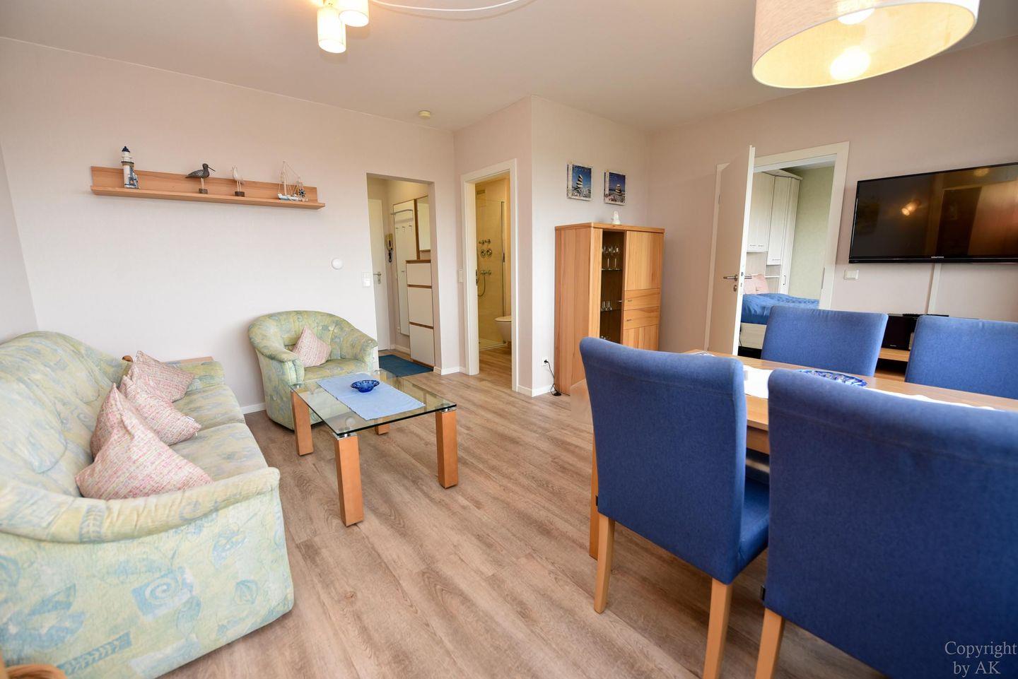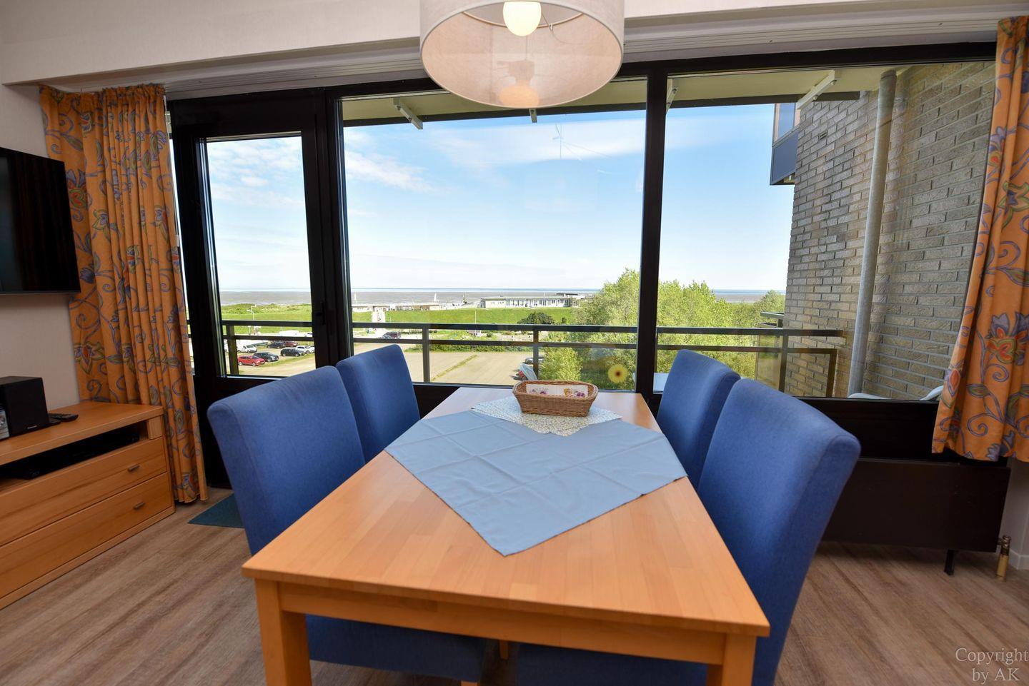 2 Zimmer-Appartement im 4. OG mit Panorama Seesicht auf den Weltschifffahrtweg und eigenem Strandkorb (01.05.-30.09.) am nur wenige Minuten entfernten Strand von Döse. Die Wohnung verfügt über einen komplett ausgestatteten großen Balkon zur Seeseite. Der Wohn-/ Essbereich ist mit Vinyl-Belag ausgelegt und mit einem Schlafsofa, einem Sessel sowie einem Esstisch mit 4 Stühlen ausgestattet. Es gibt Kabel TV sowie einen DVD-Spieler und eine Stereoanlage. Im Schlafzimmer befindet sich ein Doppelbett. Das Appartement hat eine kleine Küchenzeile und ein WC/Duschbad. Der kostenlose Tiefgaragenstellplatz hat eine Einstellhöhe von 1,49 m. Der Eigentümer stellt seinen Gästen aber auch einen Parkausweis für den städtischen Parkplatz vor dem Haus zur Verfügung. ( 01.01.- 31.12.)