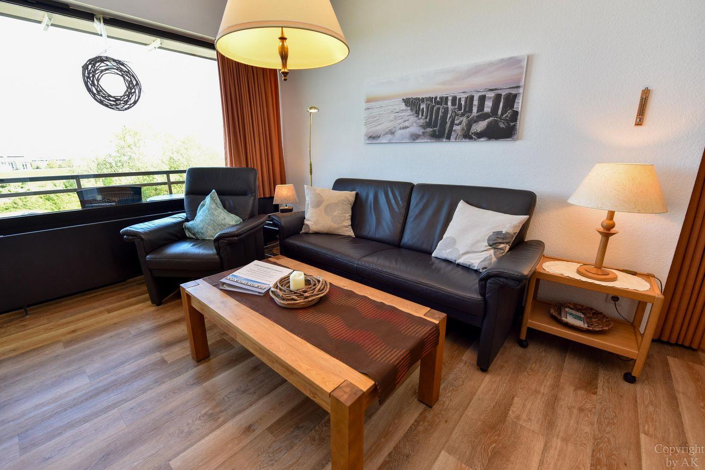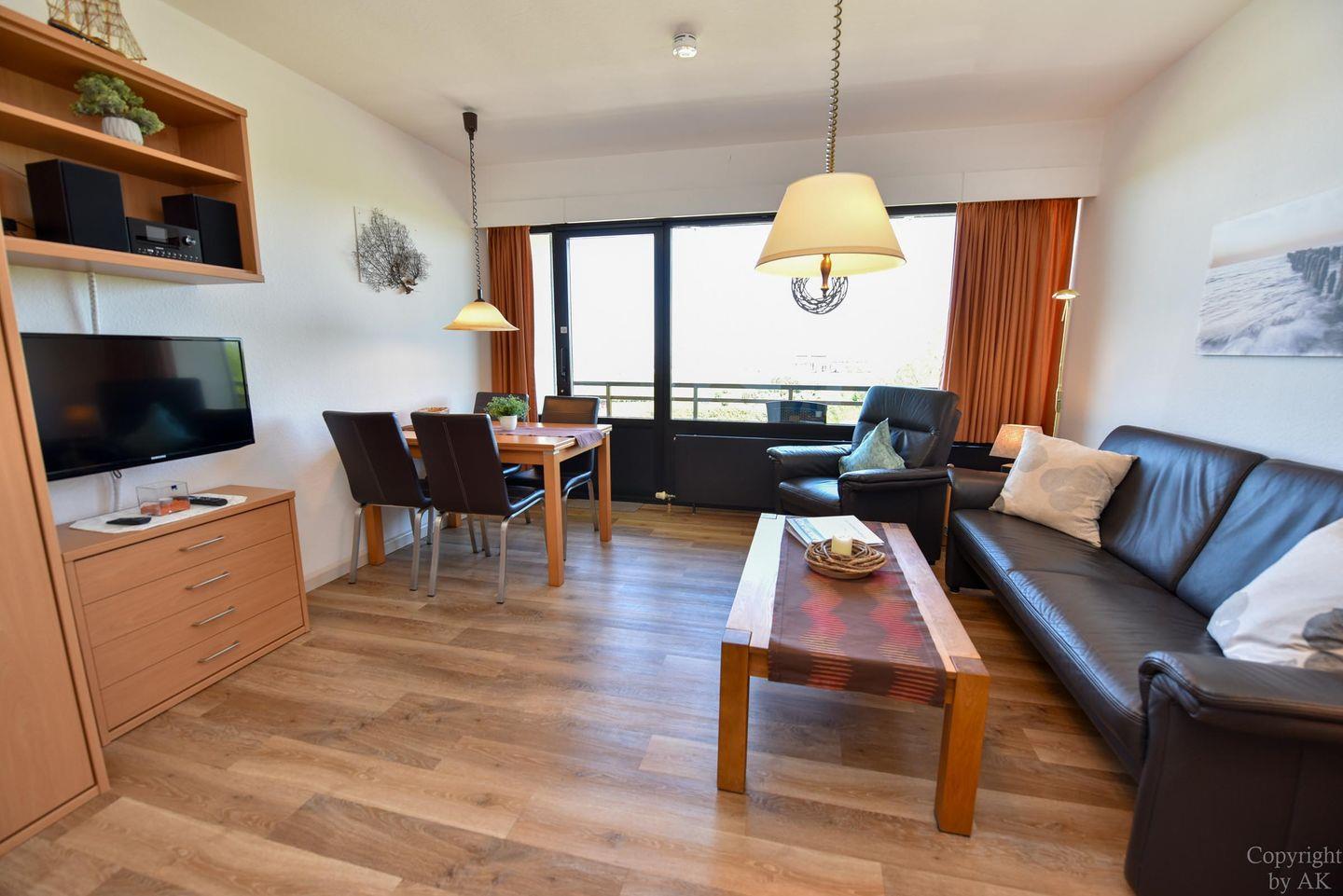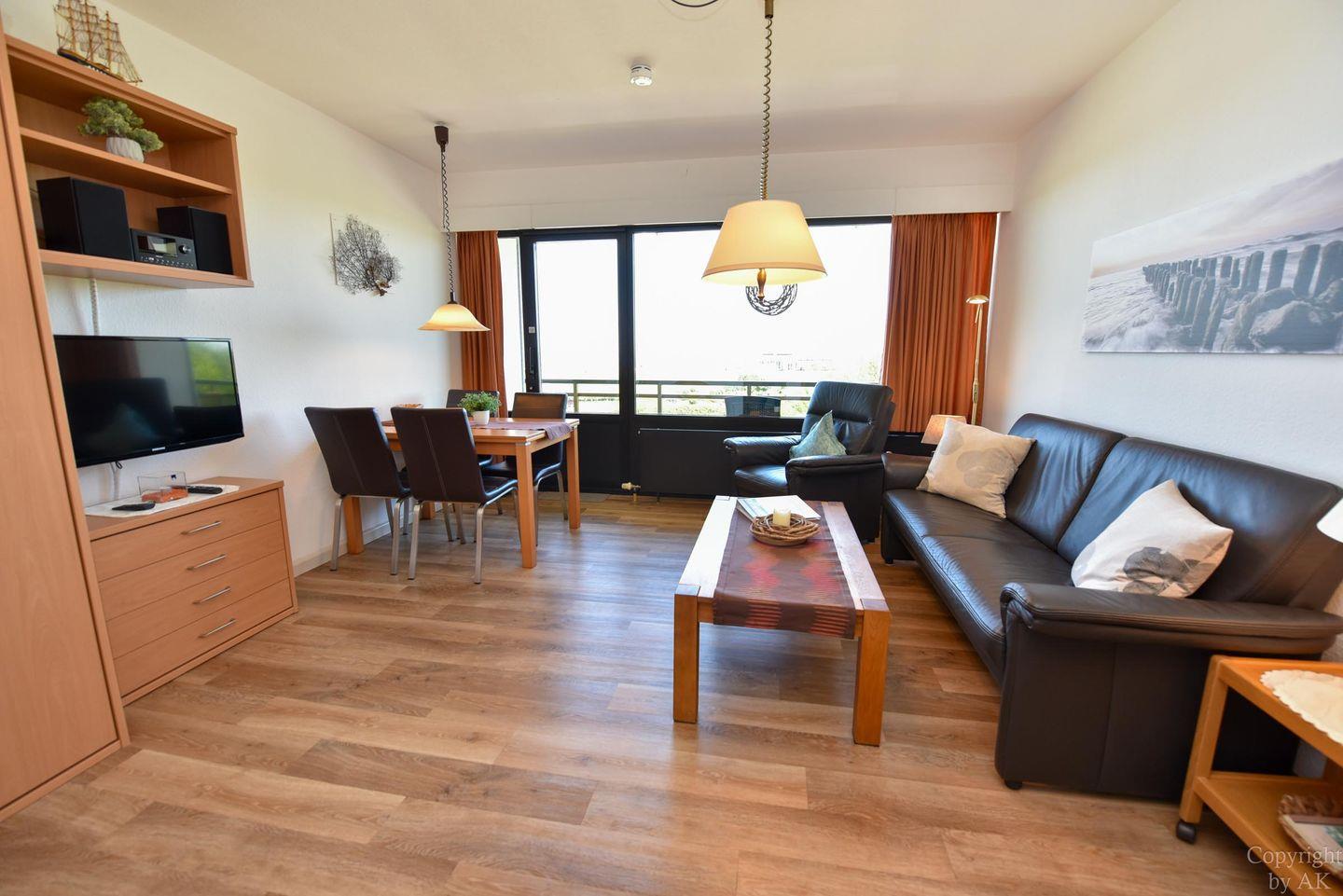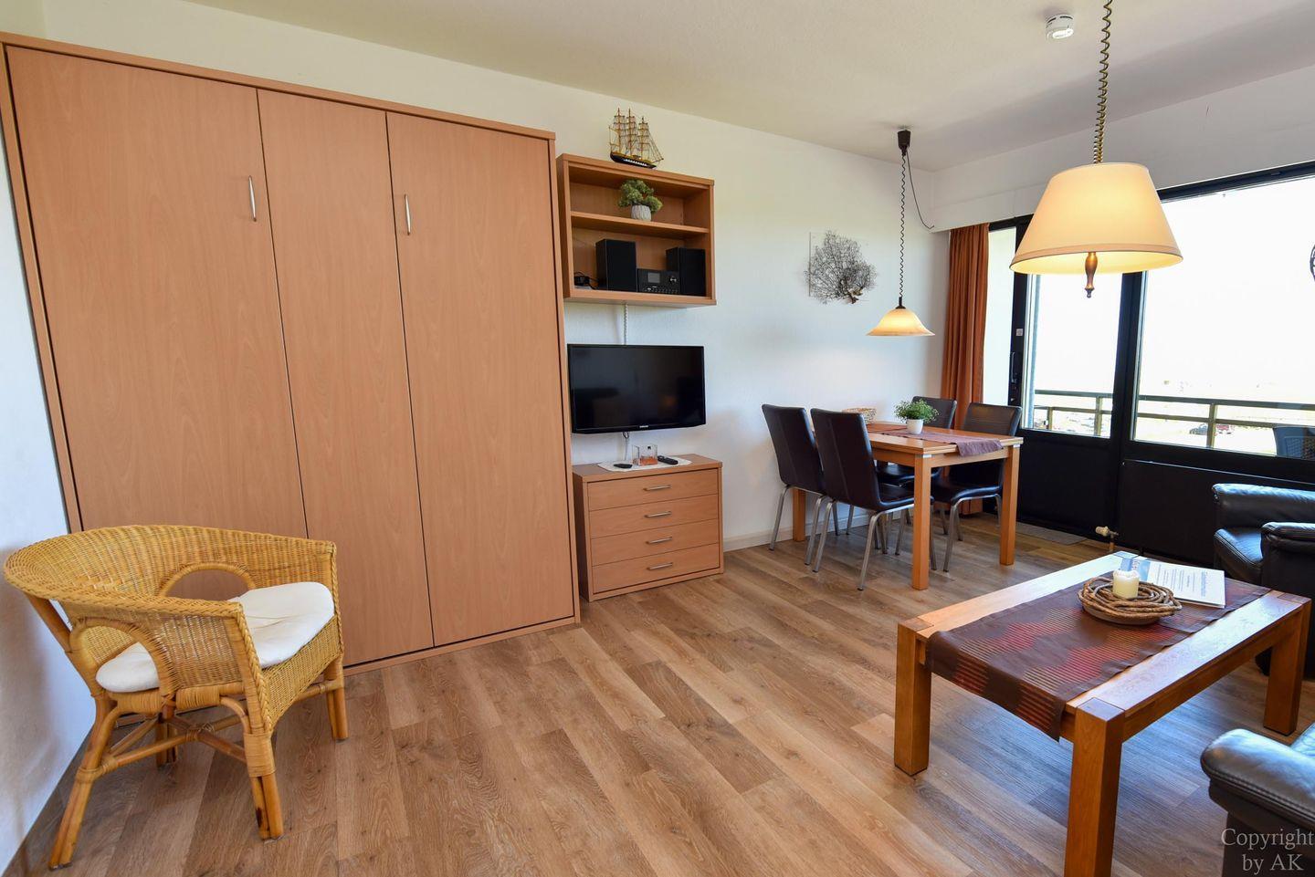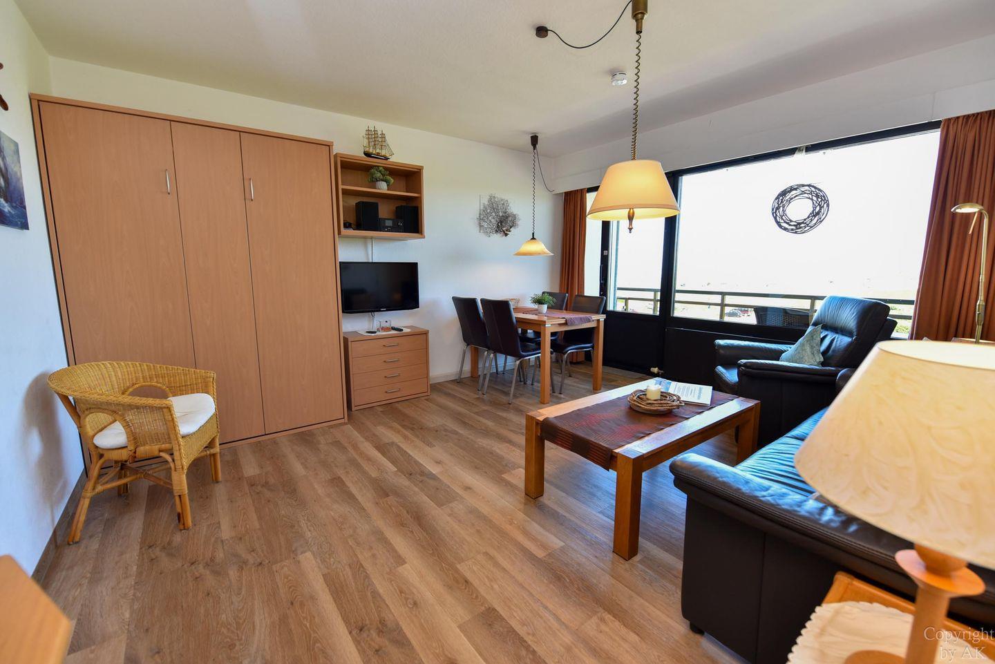 Schönes 2 Zimmer-Appartement mit toller Seesicht und großem Balkon im 3 OG, zu welchem auch ein eigener Strandkorb (01.05.-30.09) am Sandstrand gehört. In dem gemütlichem und mit Vinylboden ausgestattetem Appartement befindet sich im Wohn- und Essbereich u.a. ein Schrankbett (1,40x2,00m). In dem mit dem Wohnzimmer verbundenen und durch einen Vorhang getrennten Schlafraum finden Sie ein Ehebett. Vervollständigt wird dieses Appartement durch das WC/Duschbad (walk-in). Der kostenlose Tiefgaragenstellplatz hat eine Einstellhöhe von 195 cm.