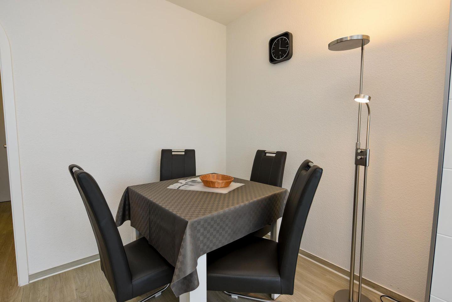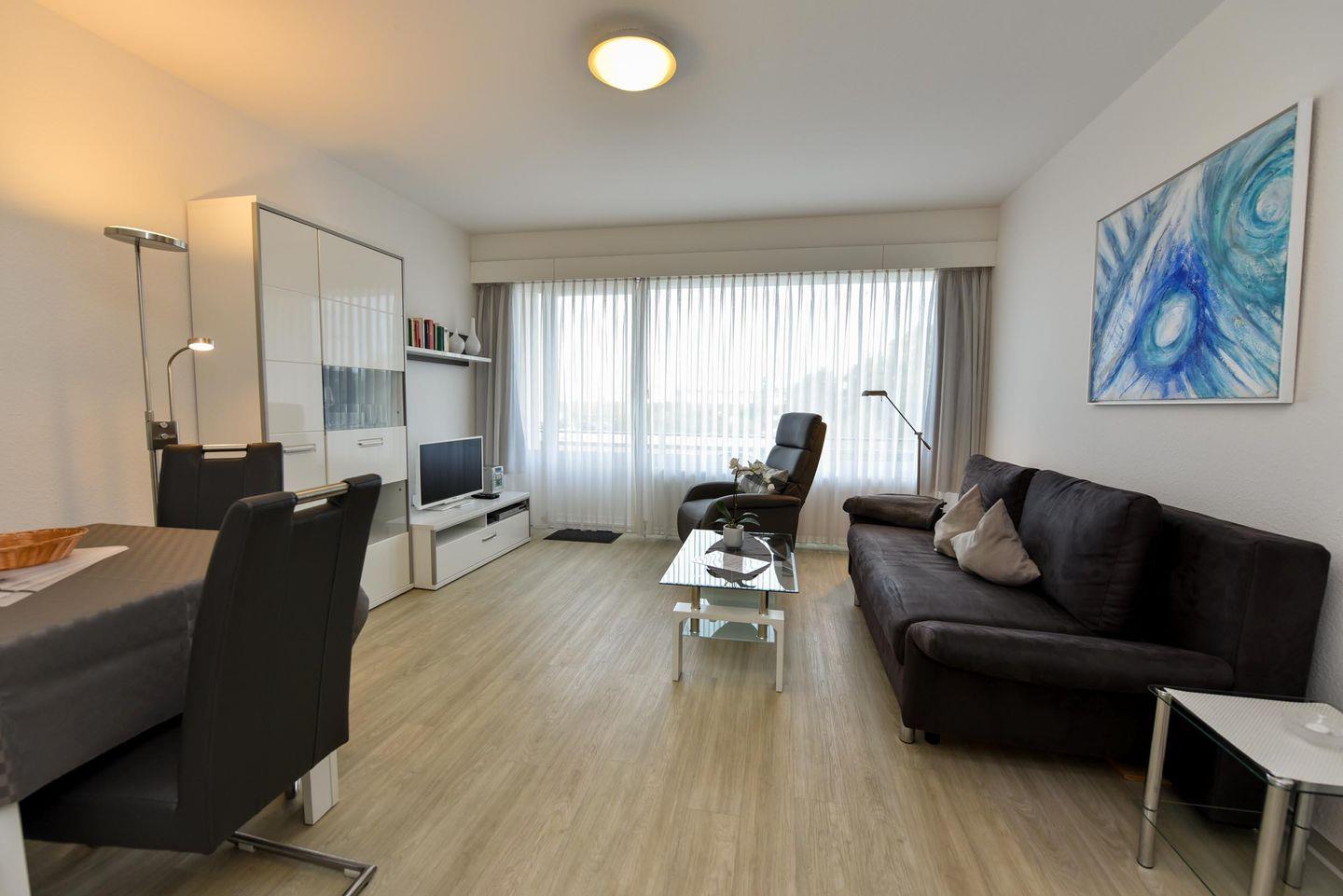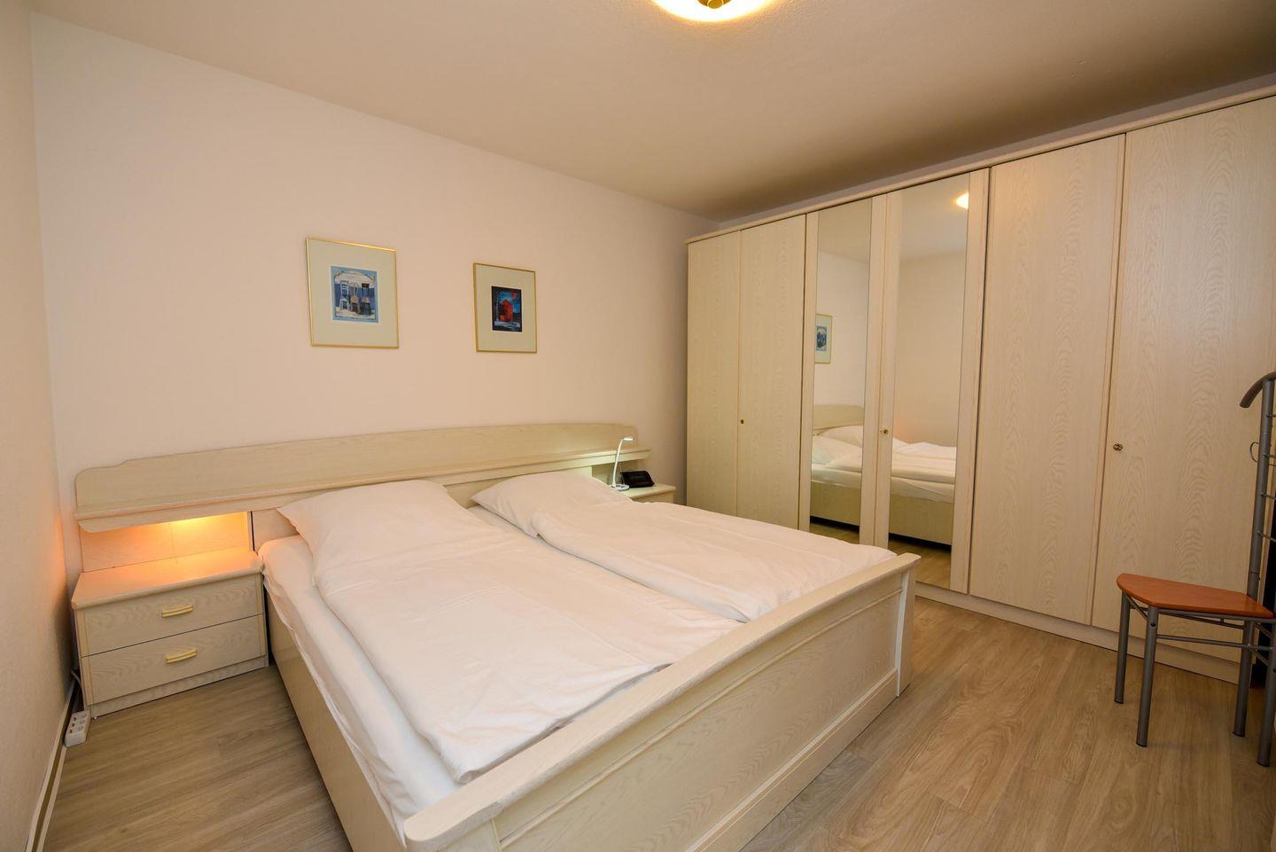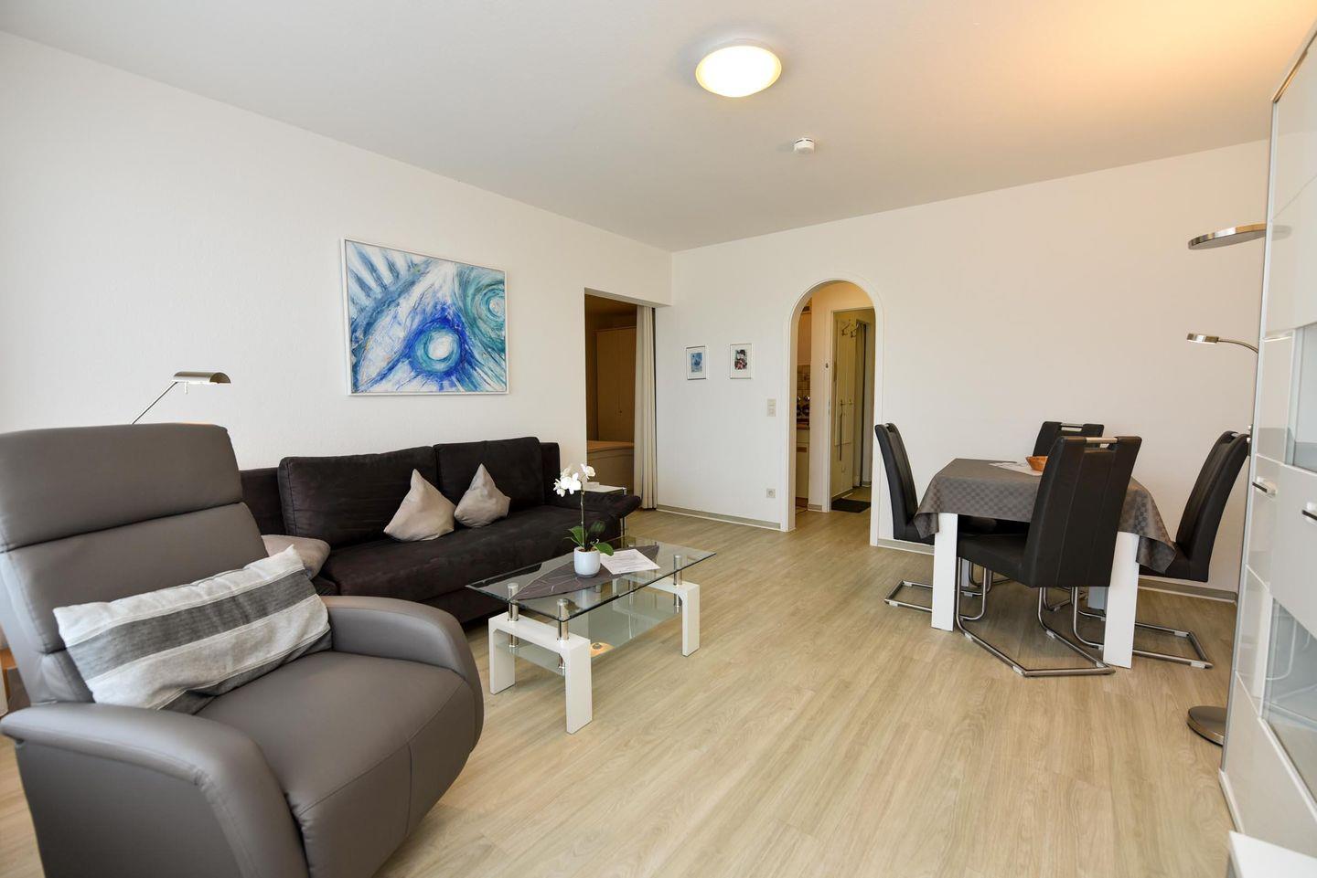 Renoviertes allergikerfreundliches mit Vinylboden ausgelegtes 2-Zimmer Appartement im 1. OG mit großem Balkon und Teilseesicht, inkl. eigenem Strandkorb (01.05.-30.09.) am Sandstrand. Der Wohnraum ist u.a. mit einem Schlafsofa und einem gemütlichen Relax-Sessel ausgestattet. Im Schlafraum, welcher zum Wohnraum offen ist, befindet sich ein Ehebett und ein geräumiger Kleiderschrank. In der gut ausgestatteten Kochnische können Sie sich kleine Mahlzeiten zaubern. Das Appartement verfügt außerdem über einen Fernseher, einen DVD Player sowie eine Stereoanlage. Das helle Duschbad mit WC verfügt zudem über zwei Waschbecken. Der kostenlose Tiefgaragenstellplatz hat eine Einstellhöhe von 195 cm.