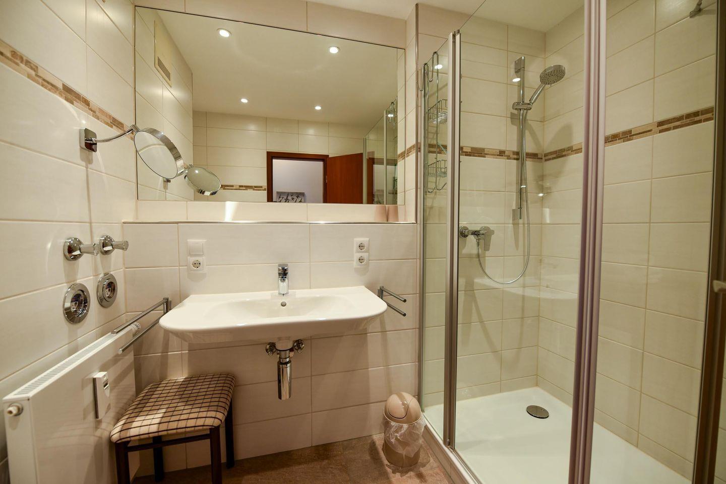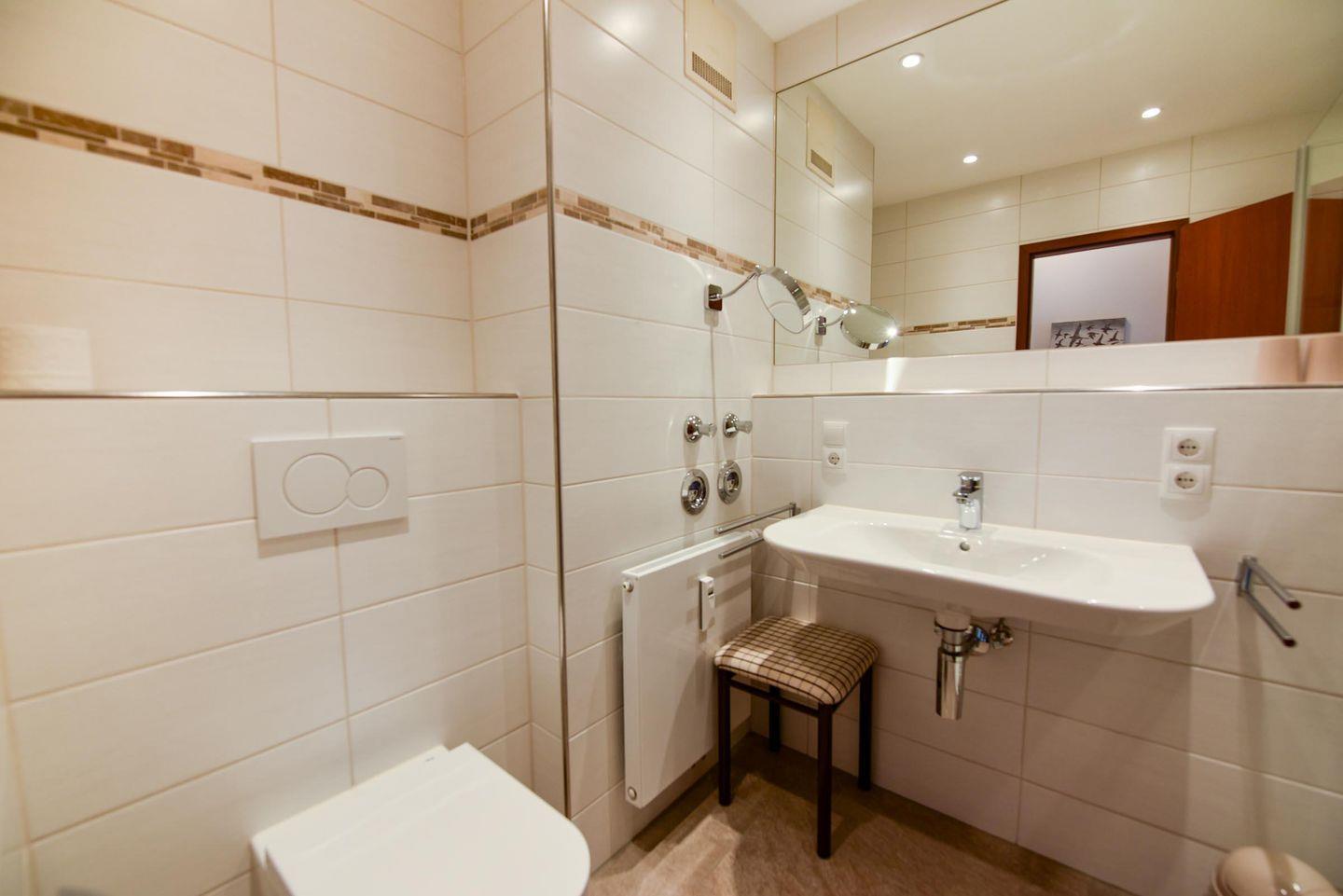 1-Zimmer Appartement im 1. OG mit Südbalkon. Schönes Appartement mit neuem Bad und neuer Küche. Der Wohn-/Schlafraum ist mit Wineo PURLINE Bioboden ausgelegt und verfügt über ein Schrankbett mit einer 150cm x 200cm Matratze, sowie einem 120cm x 200cm Schlafsofa, einem Couchtisch und einem Esstisch mit vier Stühlen. Es gibt Kabel-TV und W-LAN. Die separate Küchennische ist u.a. mit einem Kühlschrank mit Gefrierfach ausgestattet. Das Bad hat eine Dusche und ein großes Waschbecken. Außerdem sind ein Kosmetikspiegel und ein Föhn vorhanden Der dazugehörige Tiefgaragenstellplatz hat eine Einstellhöhe bis 190cm.
