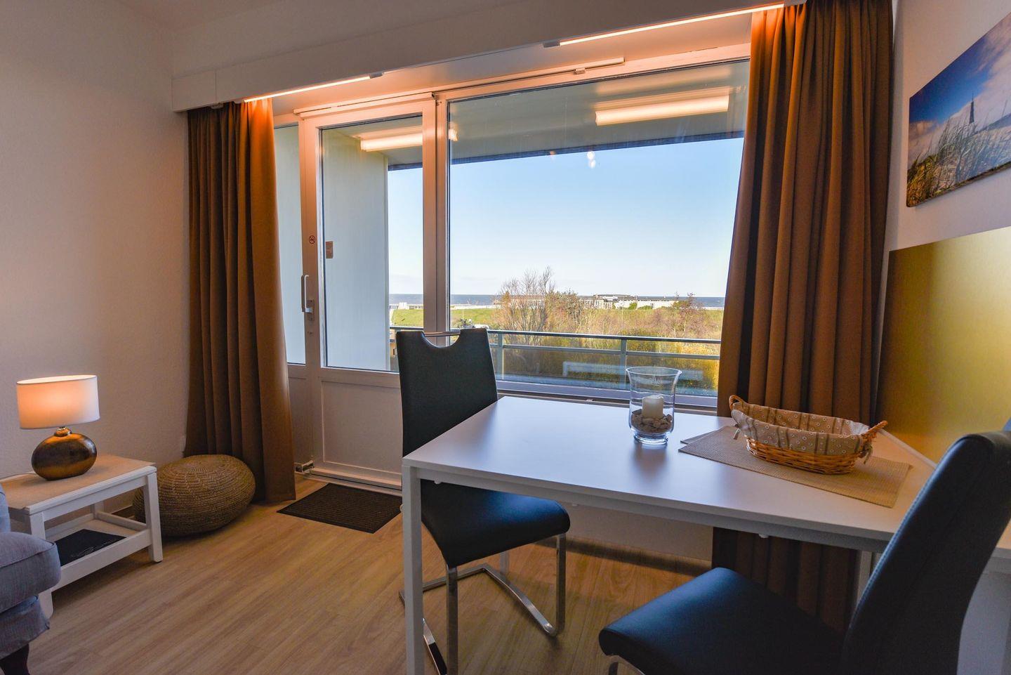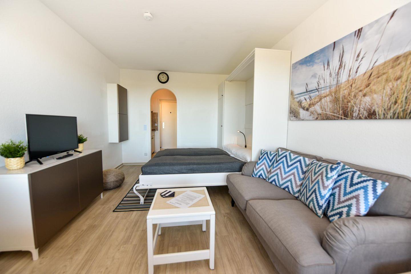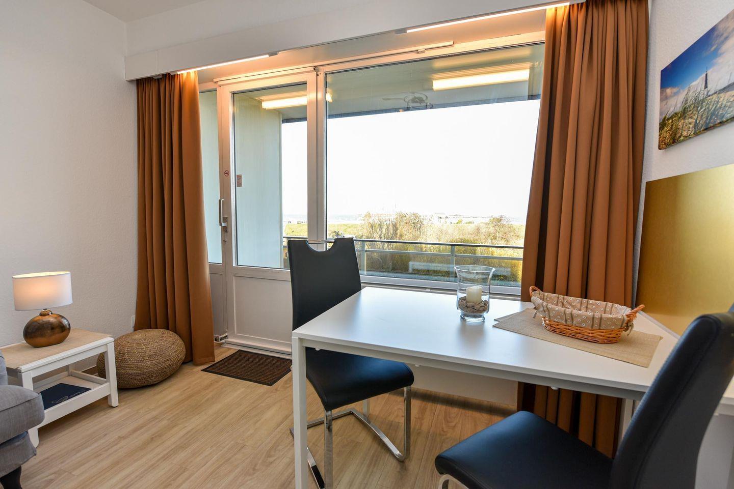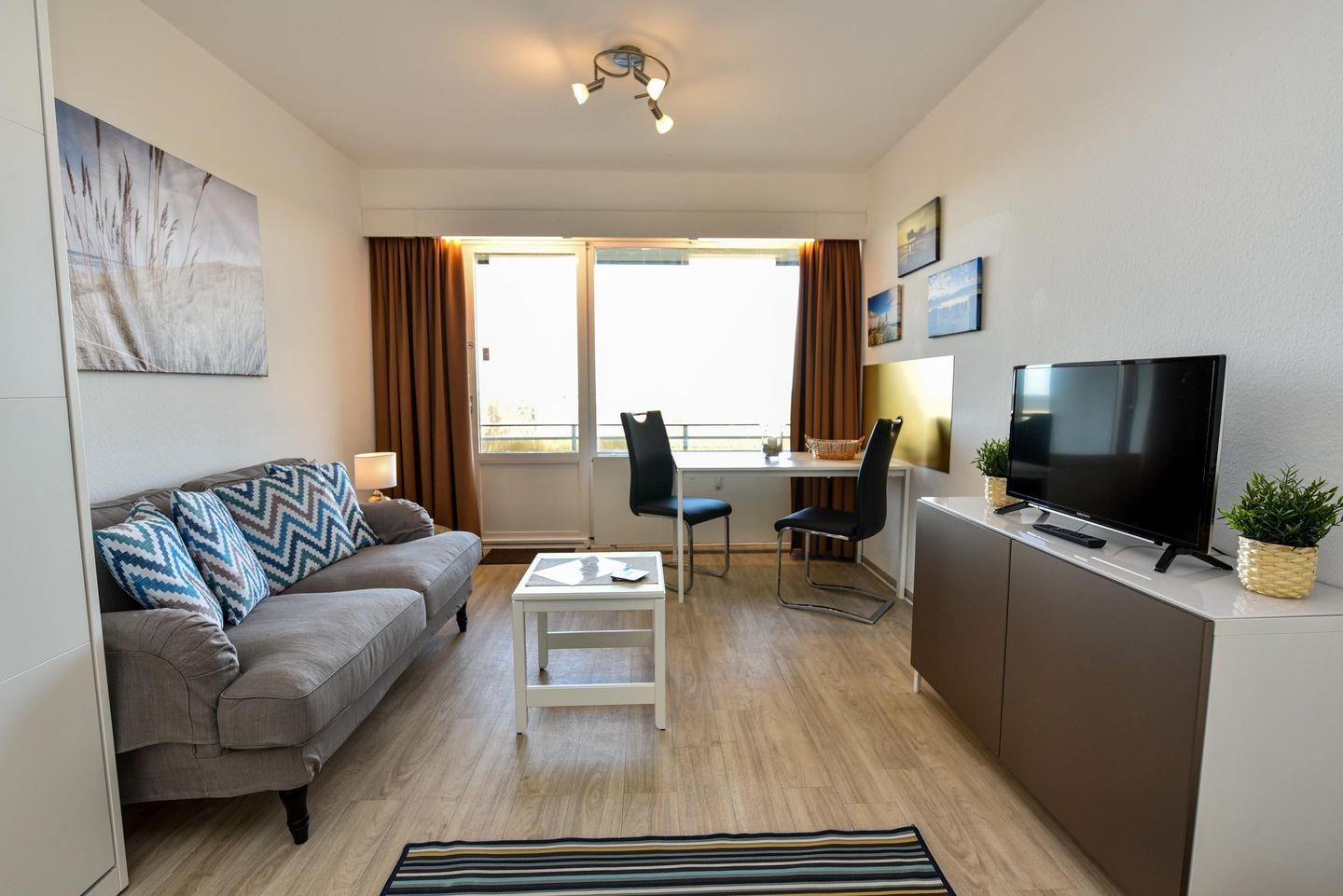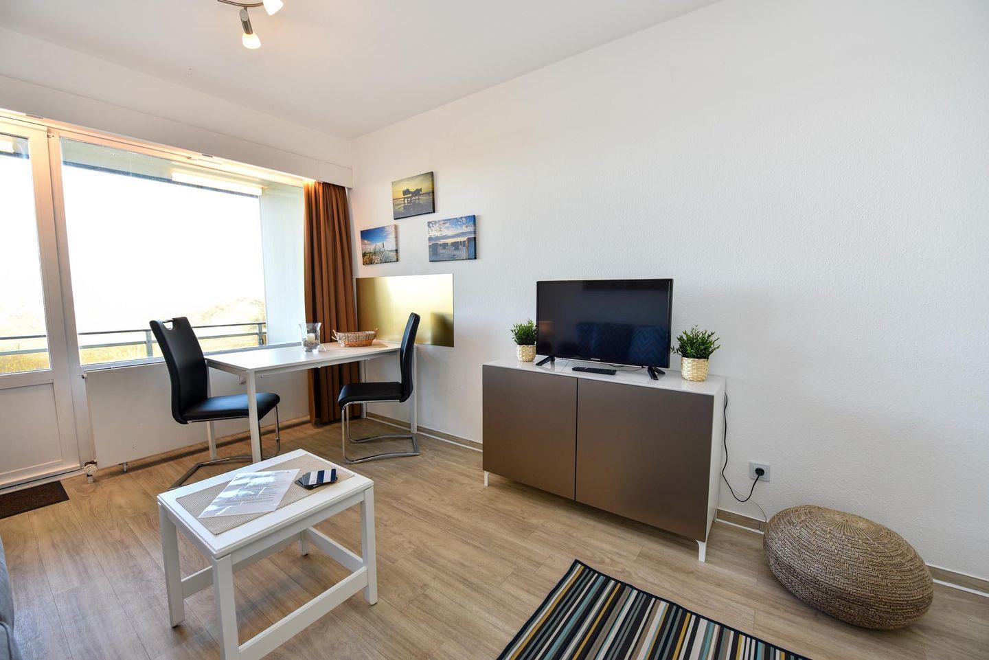 Tolles 1-Zimmer-Apartment im 3. Obergeschoss des beliebten Hauses "Jan am Strand". Dieses Apartment bietet einen beeindruckenden Blick auf den Weltschifffahrtsweg und einen eigenen Balkon, ideal für einen erholsamen Urlaub für zwei Personen. Der gemütliche Wohnbereich ist mit einem praktischen Schrankbett, einem bequemen Sofa und einem Esstisch für zwei Personen ausgestattet. Die separate Küchennische ist bestens ausgestattet und ermöglicht Ihnen die Zubereitung von Mahlzeiten in Ihrem Apartment. Das Duschbad mit WC rundet das komfortable Angebot ab. Ein Tiefgaragenstellplatz mit einer Einstellhöhe von 149 cm steht Ihnen ebenfalls zur Verfügung. Genießen Sie die erstklassige Lage und den direkten Blick auf die vorbeifahrenden Schiffe, während Sie auf Ihrem Balkon entspannen. Buchen Sie jetzt und sichern Sie sich Ihren perfekten Urlaub im Haus "Jan am Strand"!