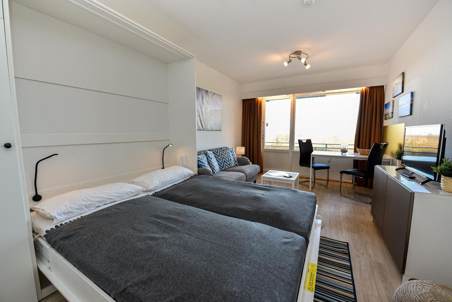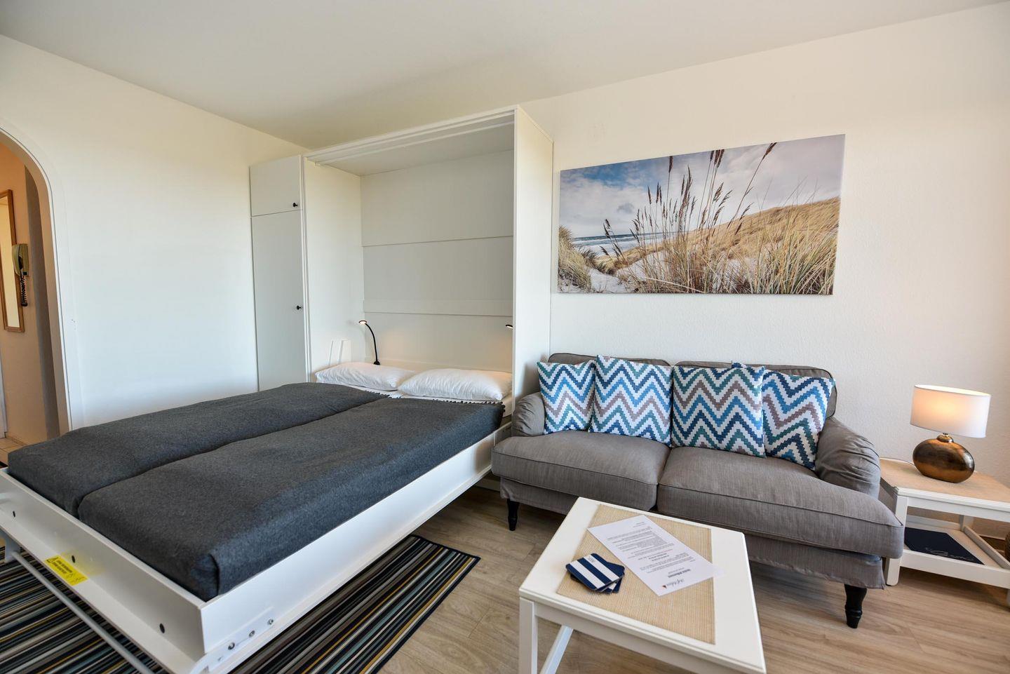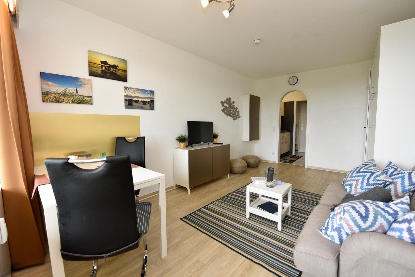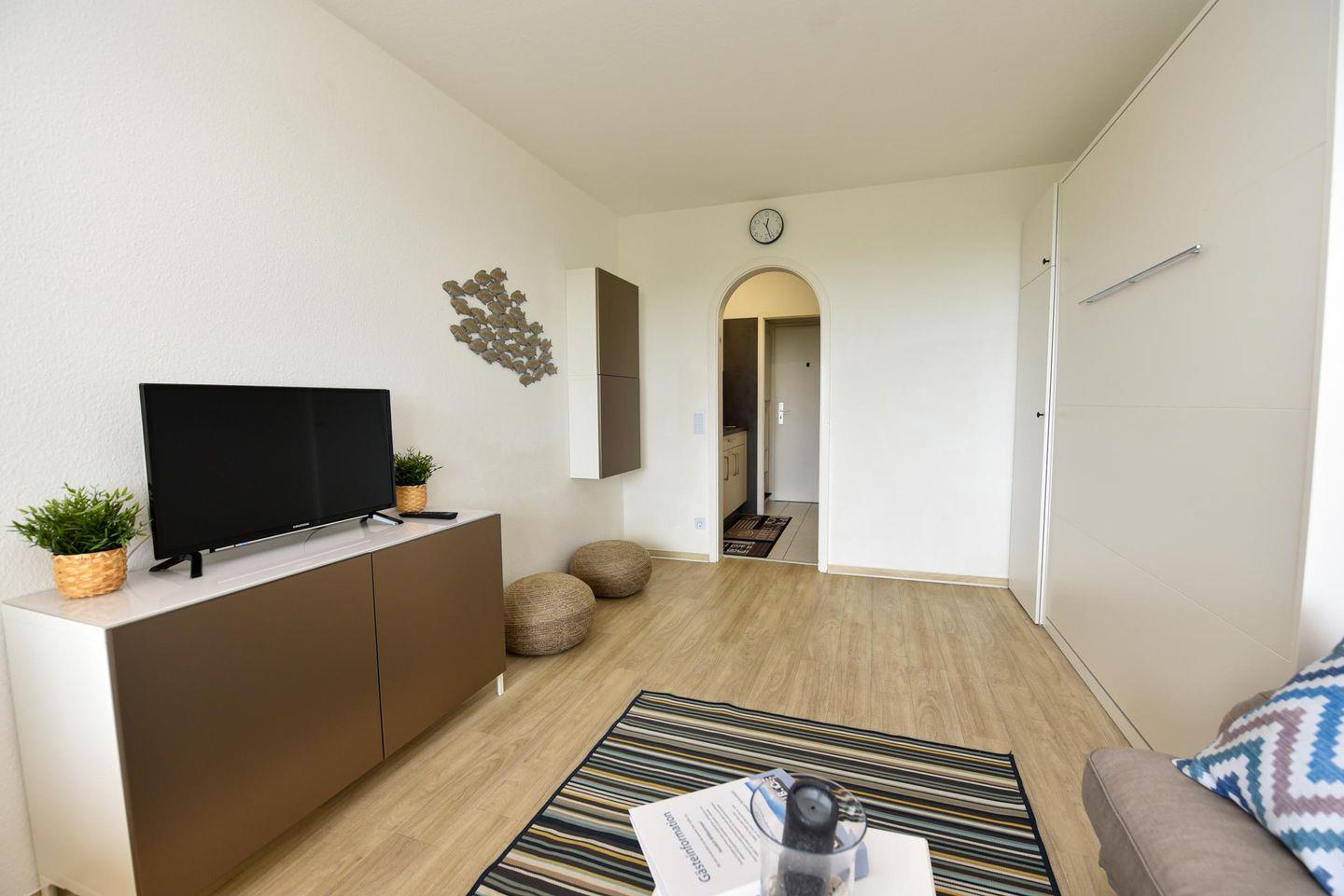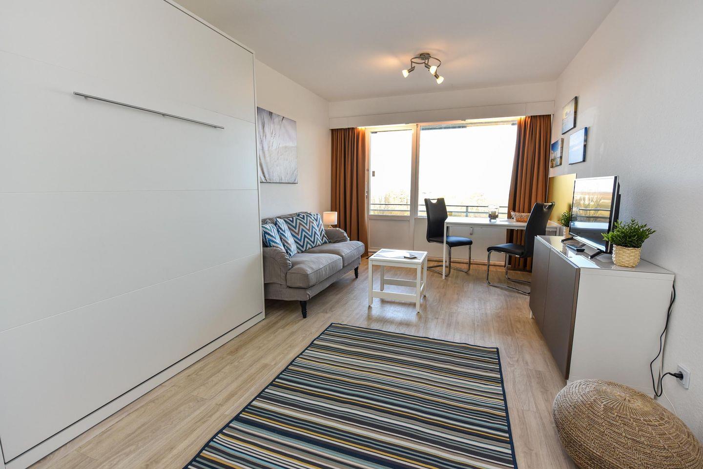 Tolles 1-Zimmer-Apartment im 3. Obergeschoss des beliebten Hauses "Jan am Strand". Dieses Apartment bietet einen beeindruckenden Blick auf den Weltschifffahrtsweg und einen eigenen Balkon, ideal für einen erholsamen Urlaub für zwei Personen. Der gemütliche Wohnbereich ist mit einem praktischen Schrankbett, einem bequemen Sofa und einem Esstisch für zwei Personen ausgestattet. Die separate Küchennische ist bestens ausgestattet und ermöglicht Ihnen die Zubereitung von Mahlzeiten in Ihrem Apartment. Das Duschbad mit WC rundet das komfortable Angebot ab. Ein Tiefgaragenstellplatz mit einer Einstellhöhe von 149 cm steht Ihnen ebenfalls zur Verfügung. Genießen Sie die erstklassige Lage und den direkten Blick auf die vorbeifahrenden Schiffe, während Sie auf Ihrem Balkon entspannen. Buchen Sie jetzt und sichern Sie sich Ihren perfekten Urlaub im Haus "Jan am Strand"!