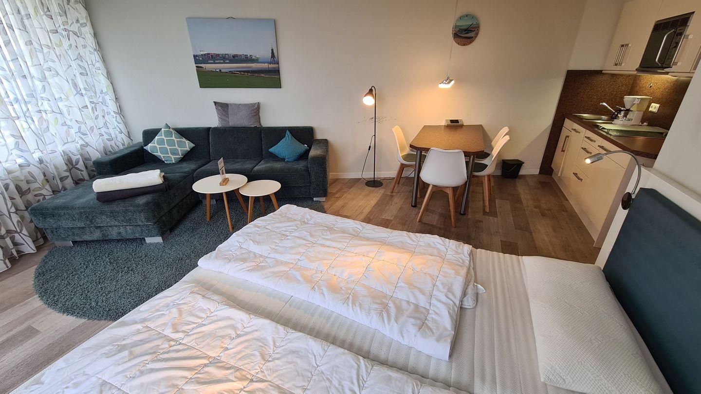 Der Wohnbereich und das Schlafzimmer sind für Sie modern gestaltet und bieten einen atemberaubenden Blick auf das Meer. Der Blick reicht von der Insel Neuwerk über den Strand und die Nordsee bis hin zur Elbmündung, in der Sie täglich schon vom Frühstückstisch aus über 100 Schiffe vom Kümo bis zum Containerriesen beobachten können. Auf dem Balkon können Sie nicht nur die Schiffe sehen, sondern auch die salzige Nordseeluft spüren. Für Freizeitaktivitäten haben Sie in diesem Urlaubsdomizil eine optimale Ausgangslage.