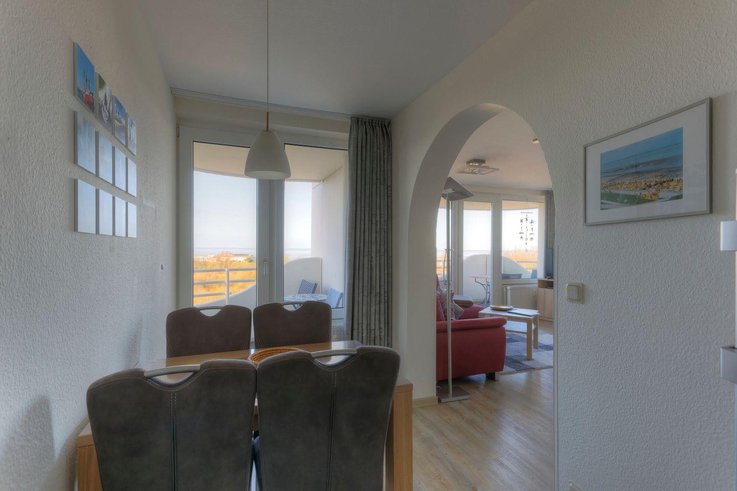 Der Balkon besticht mit einem Panoramablick in Richtung Weltnaturerbe Wattenmeer und Nordsee sowie auf den Weltschifffahrtsweg. Hier können Sie Ihren Urlaub jederzeit an der frischen Nordseeluft genießen.